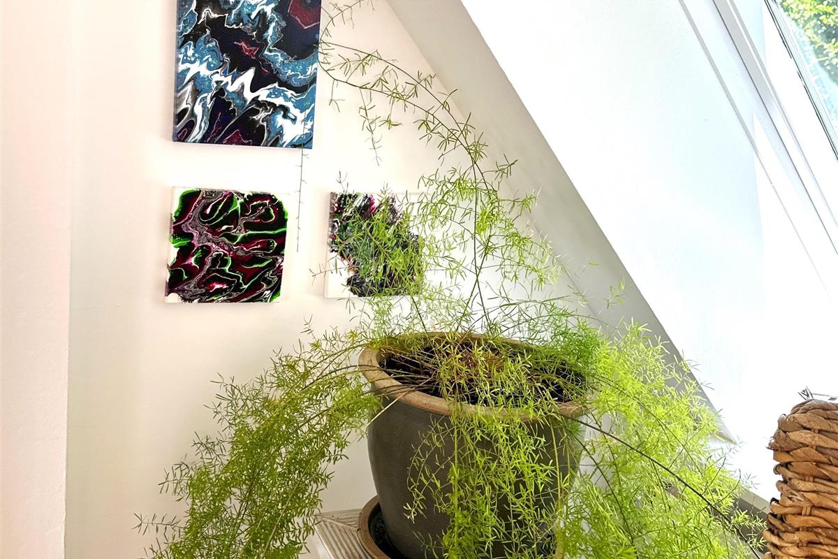 is a large garden, shared with the neighbouring flat. There is plenty of space for playing, ball games and enjoying time outdoors. The covered terrace with garden furniture and barbecue is perfect for relaxed meals, long summer evenings and quiet moments enjoying the view of the surroundings.