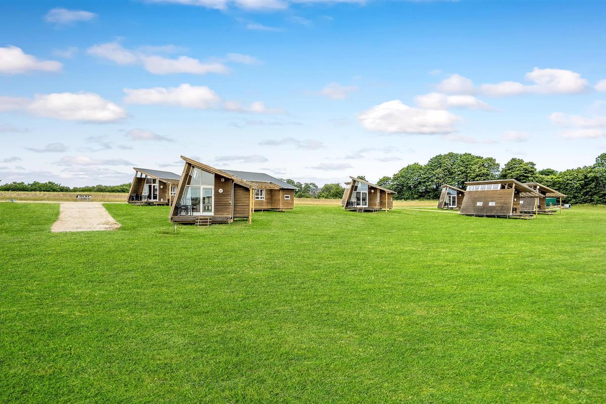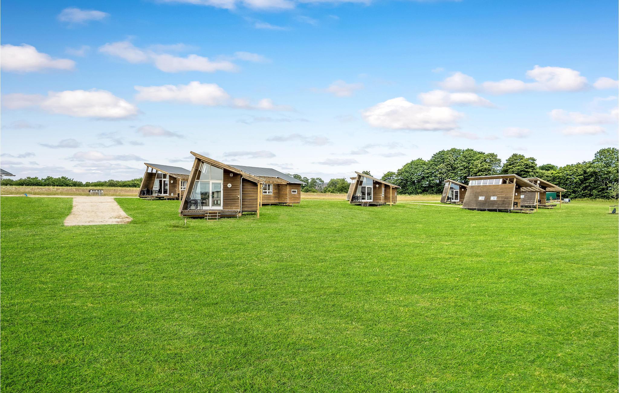 Comfortabele kampeervakantie in modern houten huis in de buurt van culturele ervaringen en stedelijke sfeer, ideaal voor jonge gezinnen.