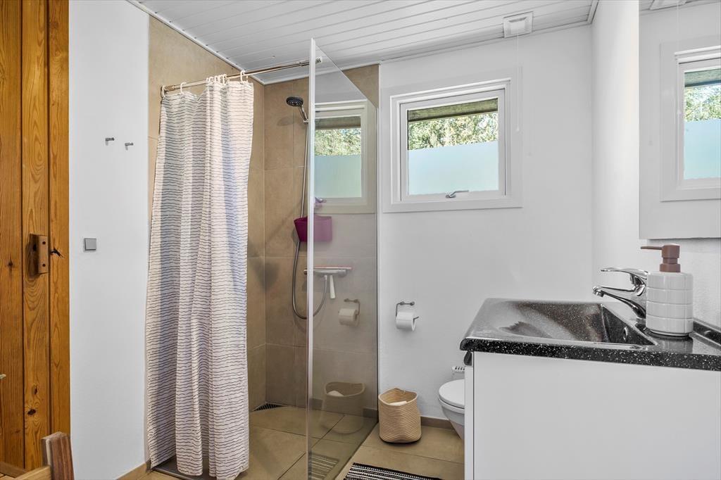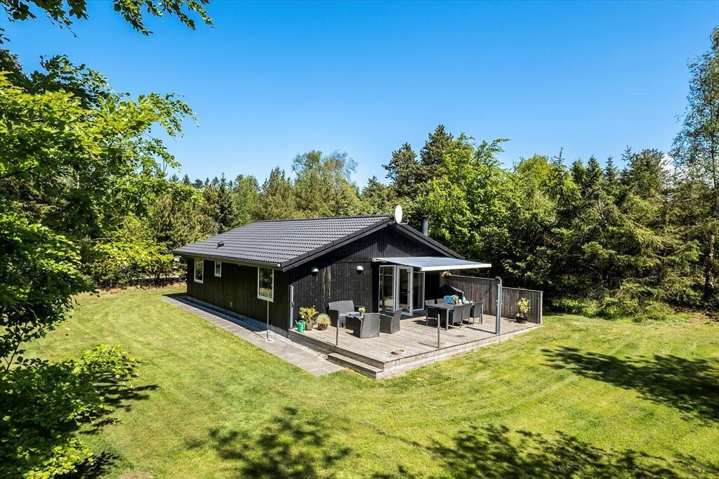 Der Pilevej ist eine kleine Sackgasse, die an die Dünenbepflanzung, Kollerup Plantage, grenzt. So sind Sie schnell auf den Waldwegen und können auf den markierten Pfaden wandern, oder selbst auf Entdeckungsreise gehen – beispielsweise zum Aussichtspunkt Toppen, von wo aus Sie weit übers Land schauen können, bis hin nach Bulbjerg und Svinklovene. Ist der Hund mit dabei, kann er sich ohne Leine im Hundewald bewegen. Und wenn Sie gerne mit dem Mountainbike unterwegs sind, finden Sie markierte MTB-Routen in Kollerup und Svinkløv Plantage. Das Ferienhaus liegt übrigens nur wenige Kilometer von der Jammerbucht entfernt, so dass man einfach nach Kollerup Strand oder einen der umliegenden Strände fahren kann, um in der Nordsee zu baden. Wenn es Zeit für die Einkäufe ist, liegt das Städtchen Fjerritslev nicht weit entfernt.