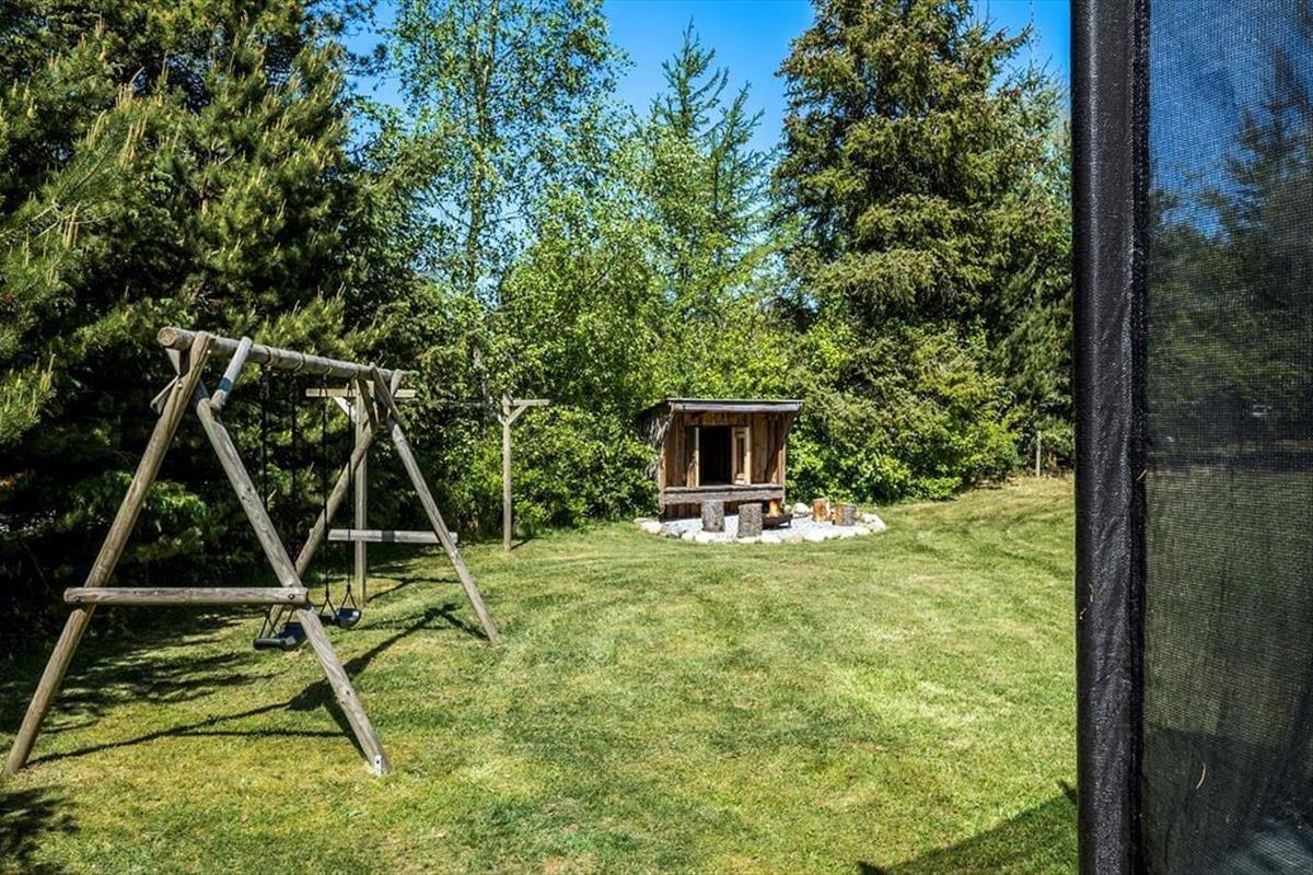 Das Grundstück ist, wie erwähnt, komplett umzäunt, was vorteilhaft ist, wenn Sie mit einem Hund anreisen, aber auch, wenn entdeckungslustige Kleinkinder mit dabei sind. Die große Rasenfläche bietet reichlich Platz zum Toben. Für die Kinder sorgen zudem eine Schaukel und ein Trampolin für Spaß. Das gilt auch für die Erwachsenen, es sei denn, Sie ziehen es vor, sich auf der Terrasse zurück zu ziehen, in einen der komfortablen Liegestühle.