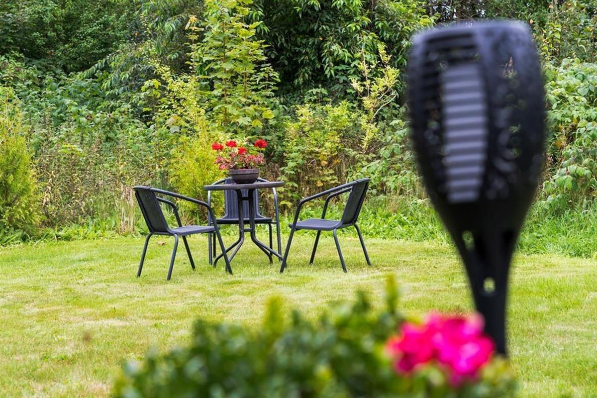 Wenn ihr Lust auf Sonnenbaden oder sommerliche Mahlzeiten habt, bietet sich die südlich ausgerichtete Terrasse an. Sie ist teilweise überdacht und von mehreren Seiten geschützt, und Gartenmöbel stehen für euch bereit, damit ihr es bequem habt. Möchtet ihr das Abendessen unter freiem Himmel zubereiten, könnt ihr den Grill nutzen – und nach einem leckeren Mahl noch Spiele spielen oder einfach gemeinsam die große Rasenfläche genießen.