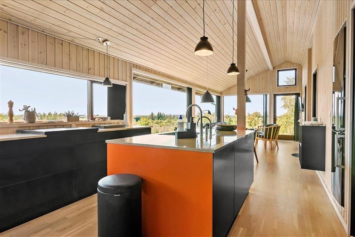 Dieses flotte, von einem Architekten entworfene Holzferienhaus hat einen ausgezeichneten Bauplan, eine stilvolle Einrichtung und ein herrliches Außen Milieu mit vielen schönen Aufenthaltsplätzen. Außerdem ist es wichtig die Lage hervorzuheben, da es auf einem grossen, hochgelegenen Grundstück in Kollerup liegt, welches bedeutet, dass das Ferienleben mit herrlicher Aussicht über Wald und Felder stattfinden wird.