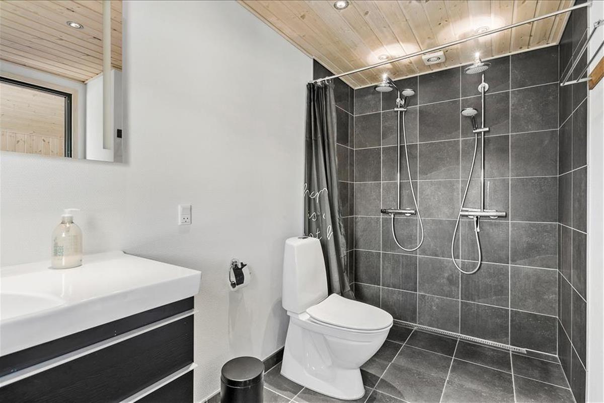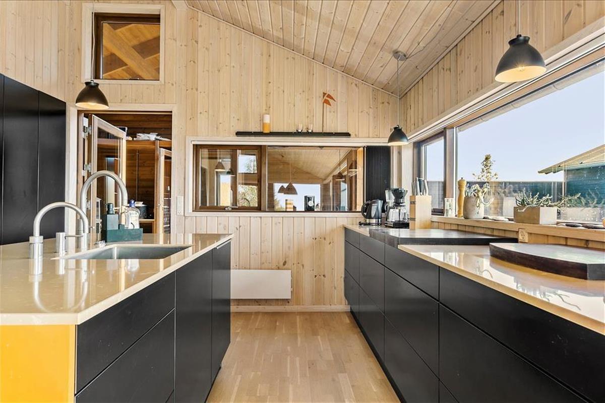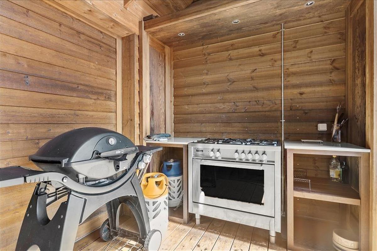 Das Ferienhaus ist ein Qualitätsbau aus dem Jahre 2013, welcher Sie in eine helle und freundliche Atmosphäre einlädt. Die Aussicht ist besonders imponierend vom Wohnraum aus, der elegant eingerichtet ist mit Sofagruppe, Esstisch, Kaminofen und einer modernen offenen Küche. Aufgrund der generösen Größe der Küche haben Sie außerordentlich viel Platz, um das Essen zuzubereiten – und darüber hinaus gibt es viele schöne Details, inklusive eines grossen Schneidebrettes, welches in der Arbeitsplatte integriert ist, sowie einen Quooker, welcher kochendes Wasser direkt aus dem Hahn liefert. Der Herd des Hauses ist in einem nicht beheizbaren Zwischengang/ Veranda platziert, welcher auch über eine Außen Küche und einen Grill verfügt. Der Zwischengang ist mit grossen Oberlichtfenstern und Schiebetüren auf beiden Seiten ausgestattet, welcher daher als perfekter Übergang zwischen dem innen- und außen Milieu dient. Der durchdachte Bauplan besteht im Übrigen aus zwei Badezimmern und drei Schlafzimmern, wobei das eine Schlafzimmer und das eine Badezimmer getrennt von den anderen auf der anderen Seite des Zwischenganges liegen.