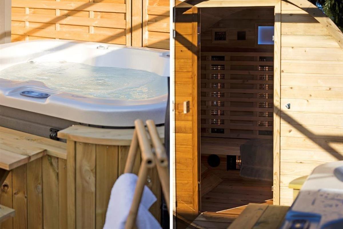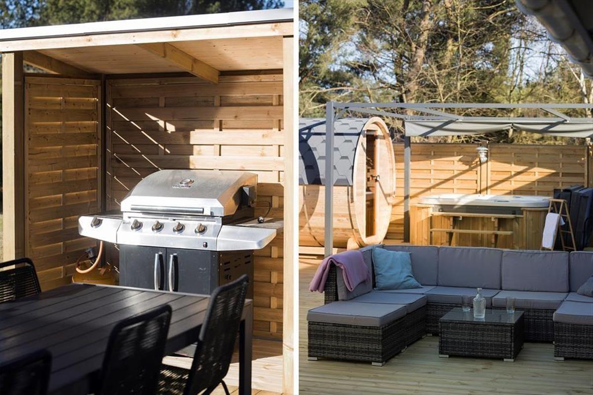 Besonders die Westterrasse wird schnell zum Lieblingsplatz aller Gäste. Hier befinden sich der Außenwhirlpool und das Saunafass – eine private Wohlfühloase mit reichlich Platz zum Entspannen. Sonnenliegen und eine gemütliche Lounge-Ecke laden zum Verweilen ein, und es gibt genügend Platz, um den großen Esstisch für ein gemeinsames Mittagessen zu decken. Das Essen könnt ihr bequem auf dem großzügigen Grill zubereiten. Die Terrasse kann komplett verschlossen werden – ein besonderer Vorteil für Familien mit kleinen Kindern oder Hundebesitzer.