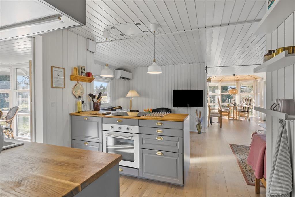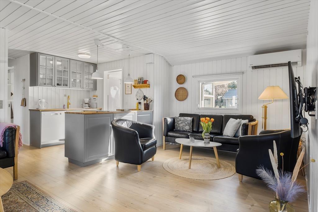 Das 80 m² große Ferienhaus wurde 2025 umfassend renoviert, sodass es nun mit einer stilvollen und einladenden Atmosphäre überzeugt. Alle Räume präsentieren sich mit weiß gestrichenen Holzwänden, gemütlichen Dekorationen und geschmackvollen Möbeln – genau so, wie ein echtes Ferienhaus sein sollte. Im Wohnbereich sorgt ein Kaminofen für wohlige Wärme, und ein großer Flachbildfernseher mit Chromecast bietet beste Unterhaltung.