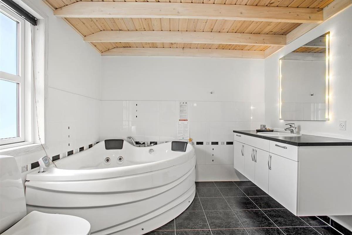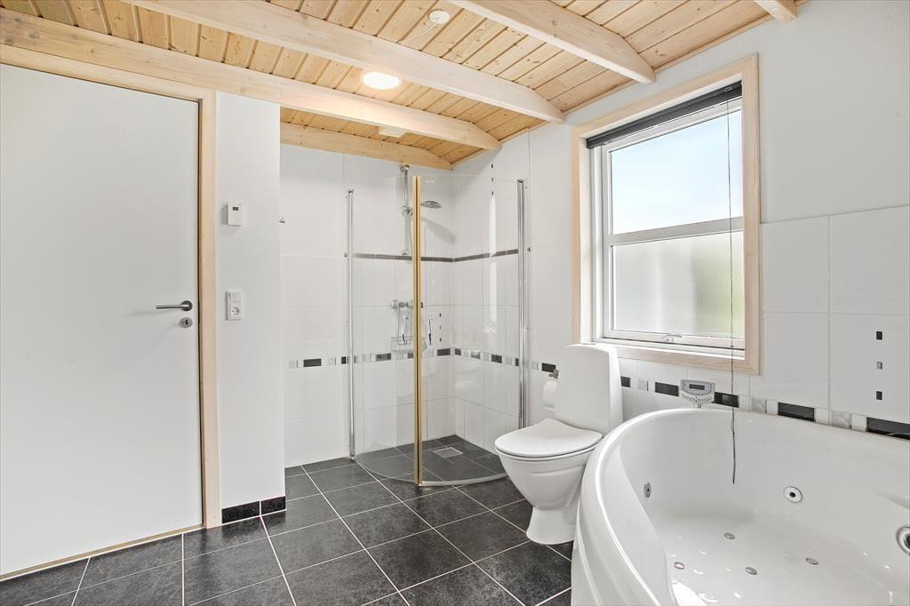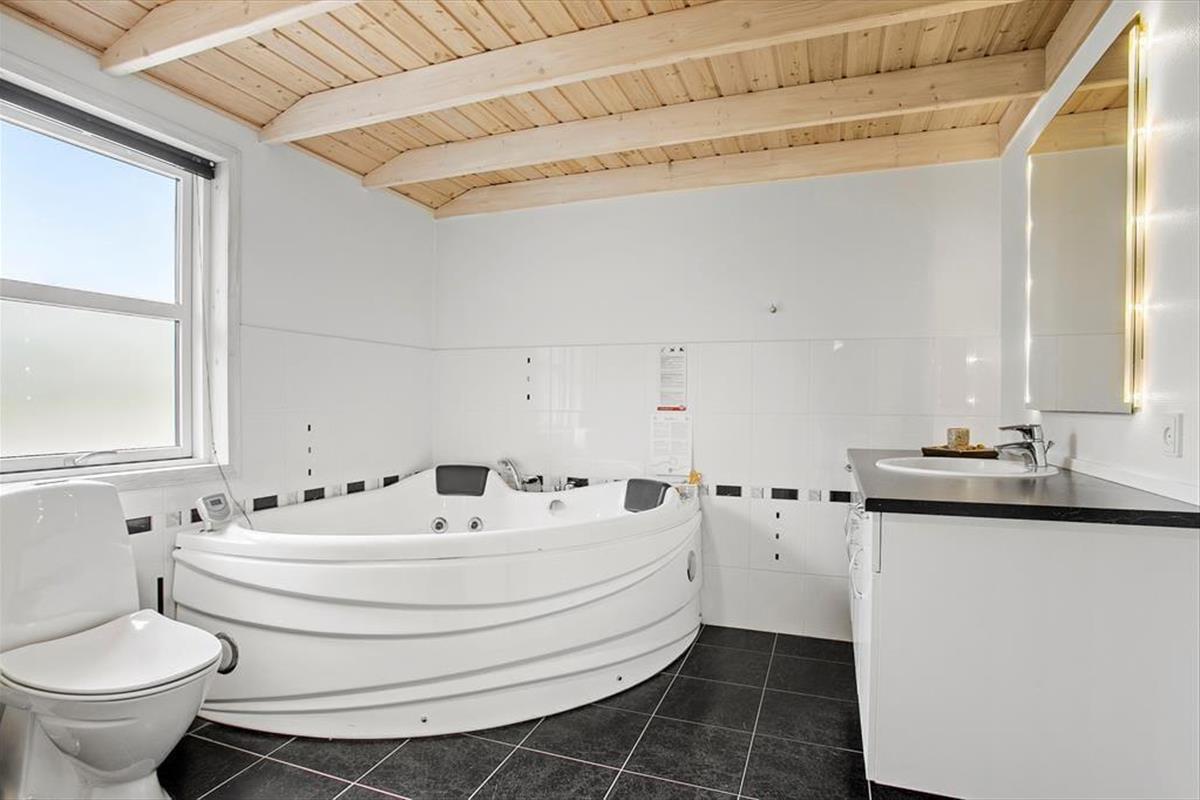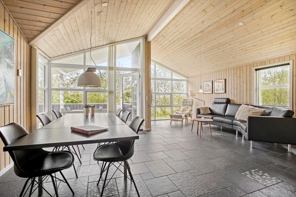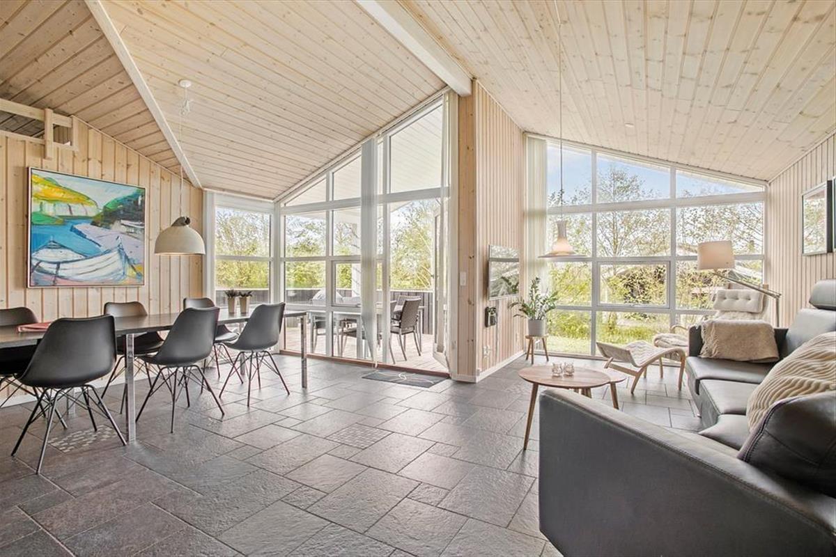 Dieses Ferienhaus ist modern und gediegen mit solidem Boden und großen Fenstern ausgestattet, die viel Licht in die Räume lassen. Die gesamte Einrichtung und die Möbel sind hochwertig und SAT-TV, kostenloses WLAN, Kamin und Whirlpool verleihen diesem Objekt Gemütlichkeit und Luxus. Gleichzeitig sorgt Erdwärme und Solarenergie für umweltfreundliche, kostensparende Verbrauchsskalen. Die offene Küche mit wunderbarer Arbeitsfläche bietet Ihnen einen guten Blick über den Rest des großen Wohnraums mit Esstisch und Sofagruppe vor dem TV, damit Sie immer die Möglichkeit haben, zusammen zu sein, auch wenn jeder etwas anderes macht. Desweiteren gibt es drei Schlafräume mit zwei Doppelbetten und zwei Einzelbetten und ein großes Badezimmer mit Glasduschkabine und einem Zwei-Personen-Whirlpool. Ein wirklich tolles Ferienaus mit gemütlichen wie auch funktionalen Bedingungen für den Urlaub in Familie oder zu zweit.
