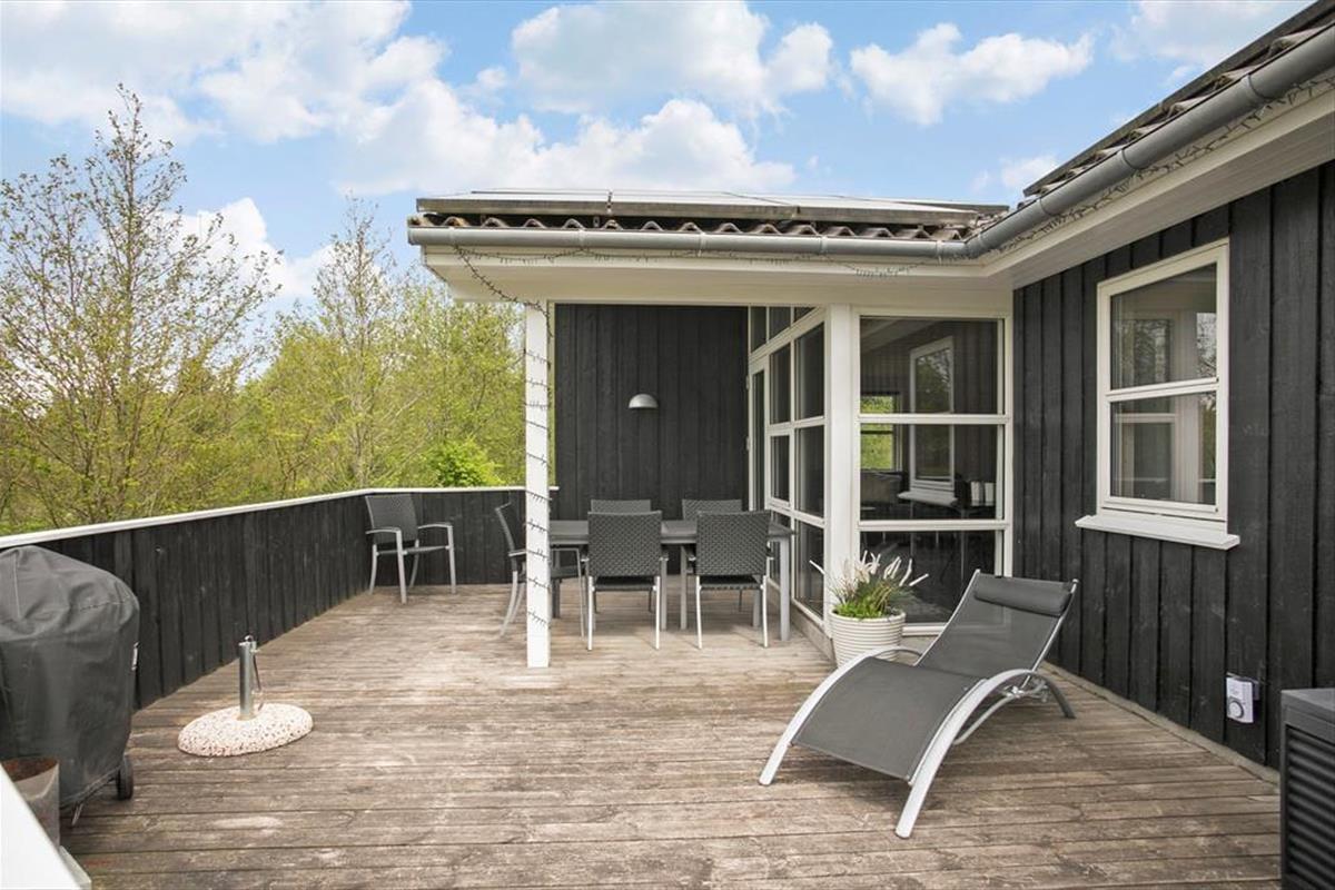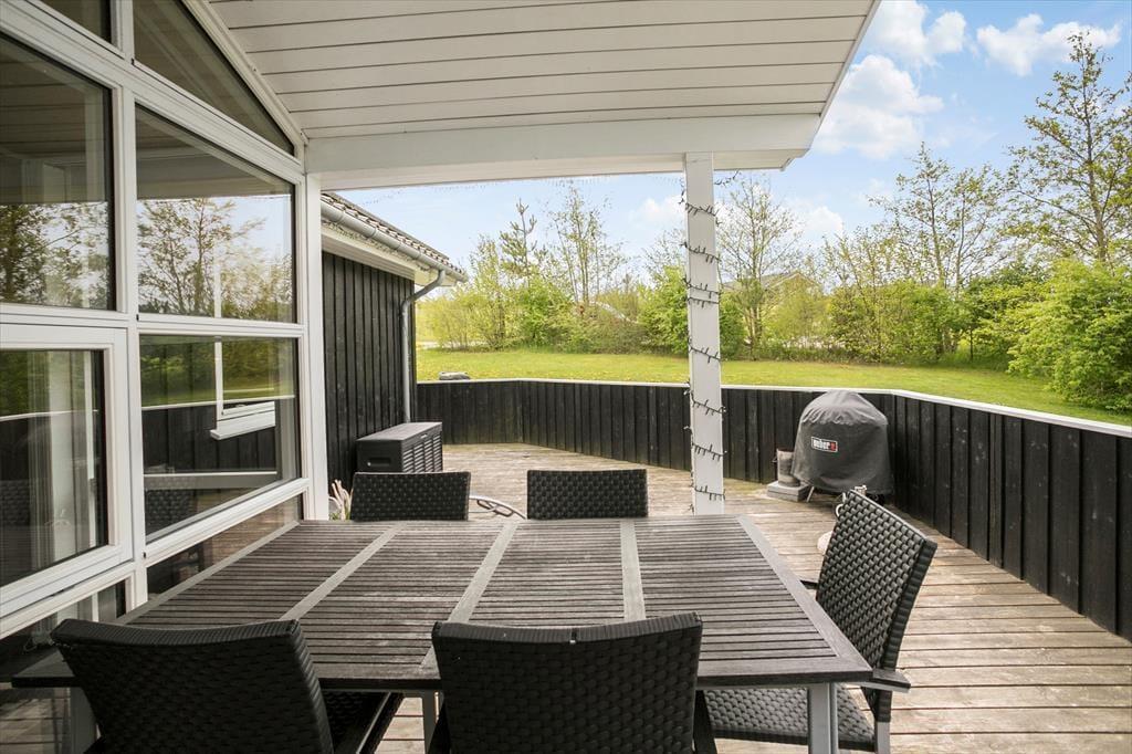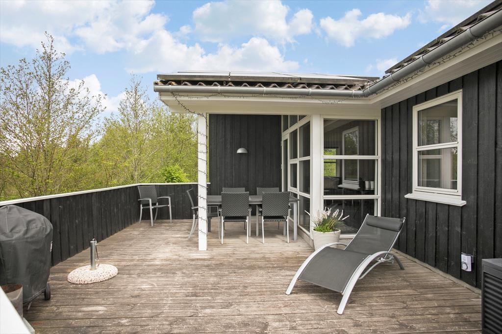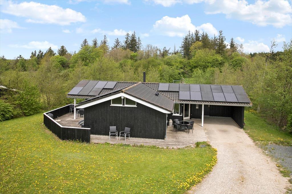Das Ferienhaus befindet sich auf einem großen Naturgrundstück an einem schmalen Waldrand, wodurch ein guter Ausblick gesichert ist. Auf der Wiese haben Sie Platz zum Spielen und Toben und für die Kinder gibt es einen Spielturm mit Schaukel und Rutsche. Auf der Südseite des Hauses befindet sich eine große Terrasse mit kleineren, überdachten Teilen, damit Sie unabhängig von Sonne und Wind das Leben im Freien genießen können.