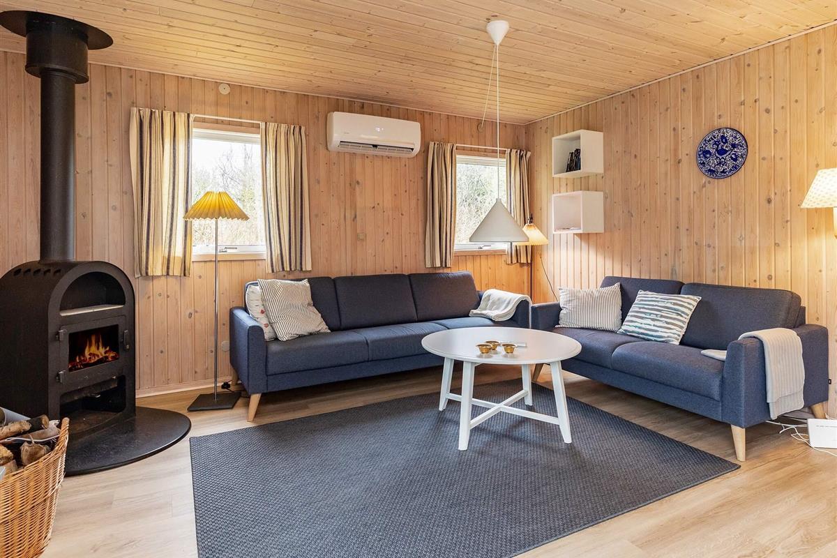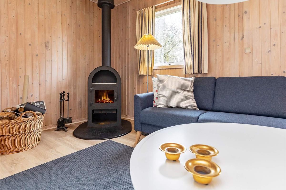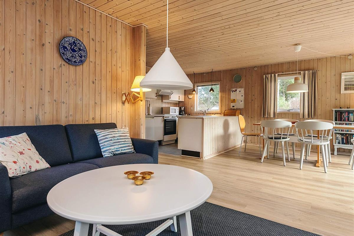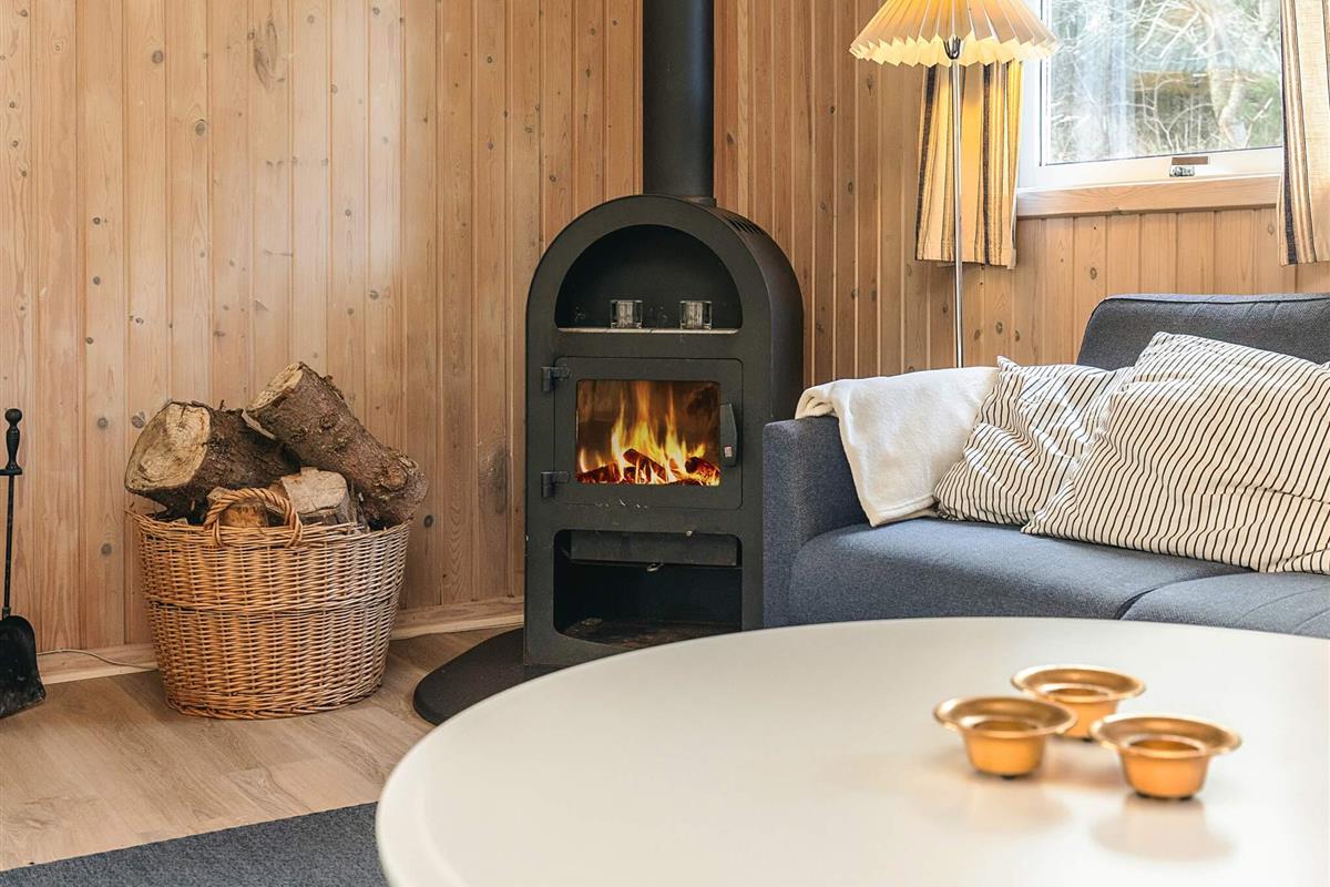 Das mit persönlicher Note eingerichtete Ferienhaus bietet einen familienfreundlichen Rahmen für einen erholsamen Familienurlaub. Für gemütliche Abendstunden steht im Wohnbereich ein Holzofen bereit, zudem TV mit einigen deutschen Sendern zur Auswahl. Die Küche ist offen in den Wohn-/Essbereich integriert.
