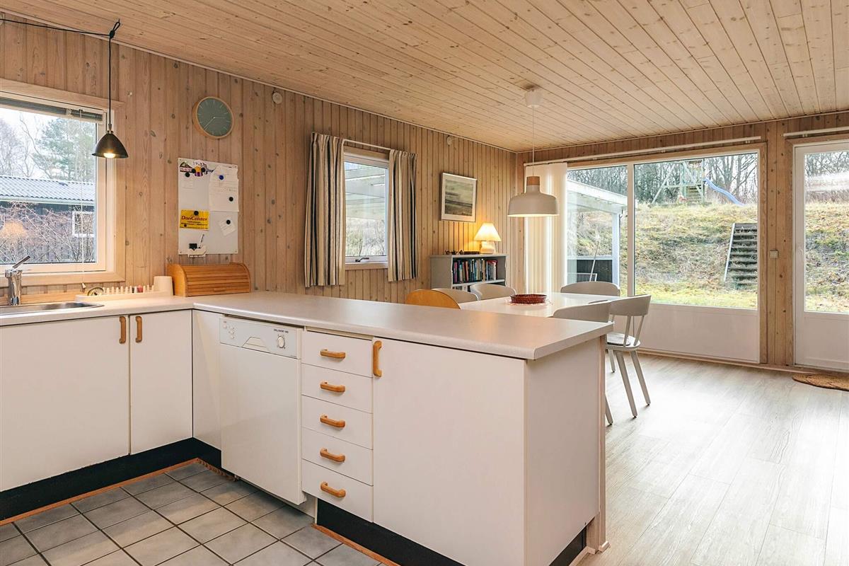Traditionelles Ferienhaus mit attraktiver, schön geschützter Lage auf einem 1.000 m2 großen Naturgrundstück nahe Kollerup Strand.