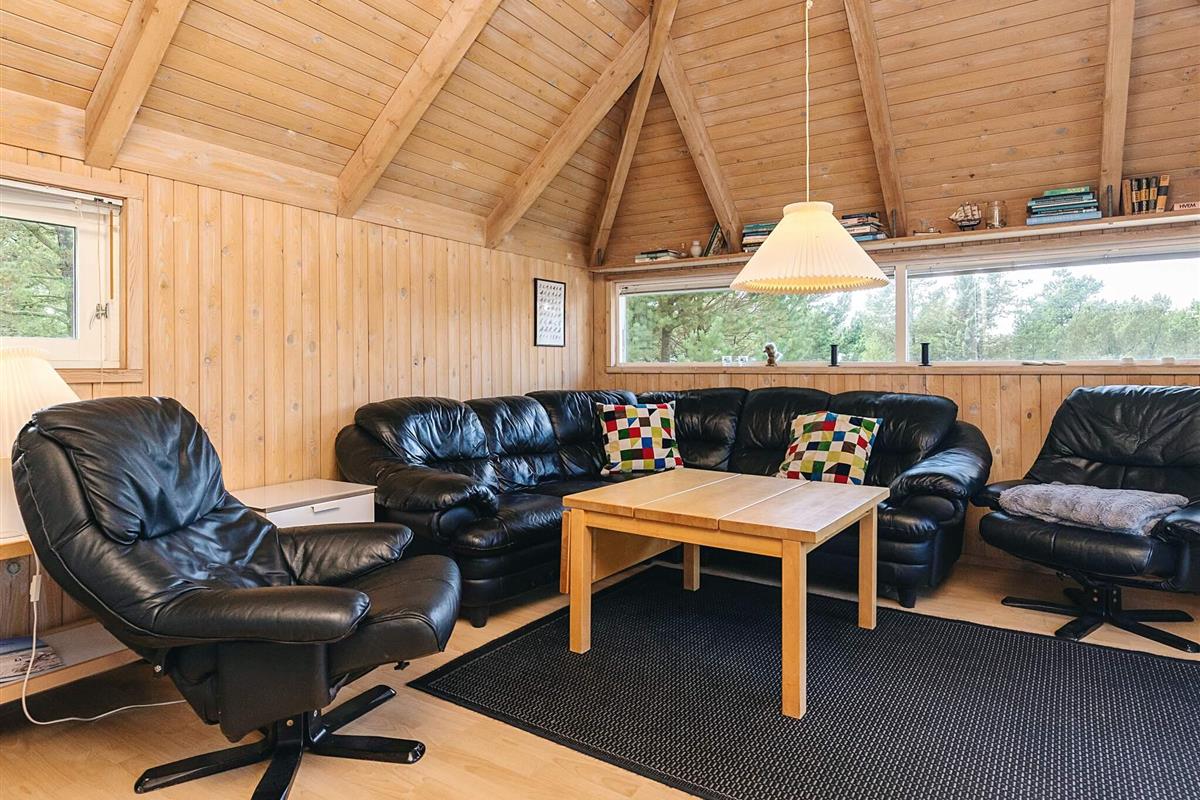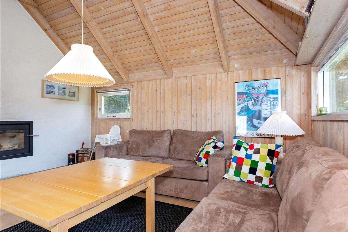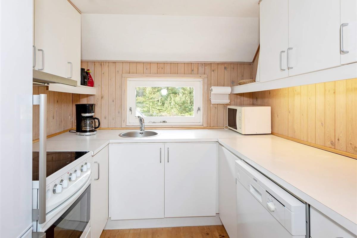 Das gut ausgestattete Ferienhaus liegt ungestört am Ende einer gesperrten Straße. Große Fenster laden zum Eintauchen in die malerische Umgebung ein, sodass Sie sowohl vom Sofabereich als auch vom Essbereich aus den Blick ins Grüne genießen können. Die offene Küche bietet gute Arbeitsbedingungen beim Kochen – inklusive Geschirrspüler.
