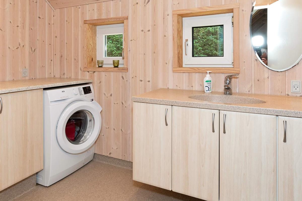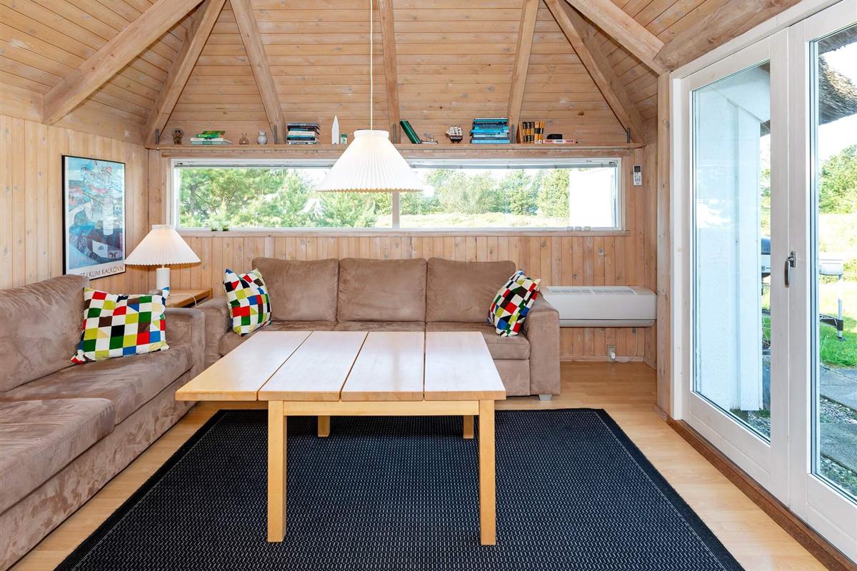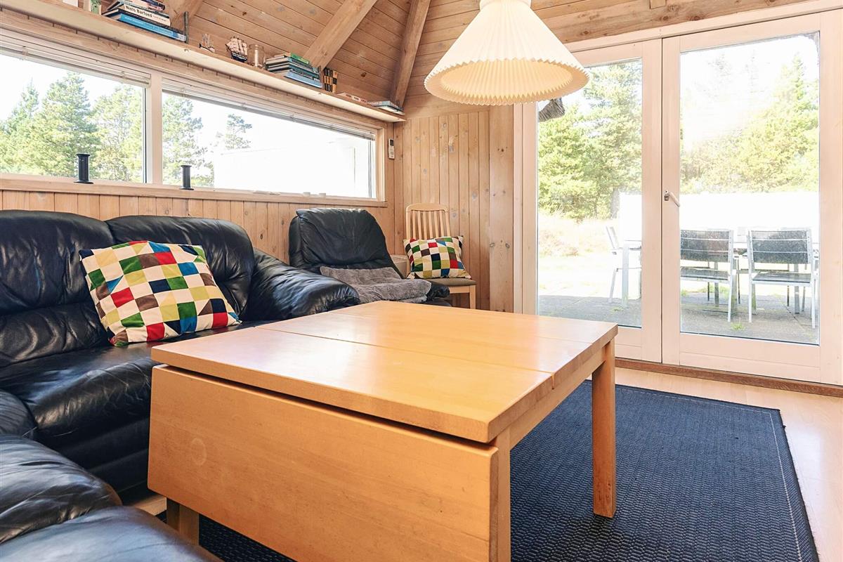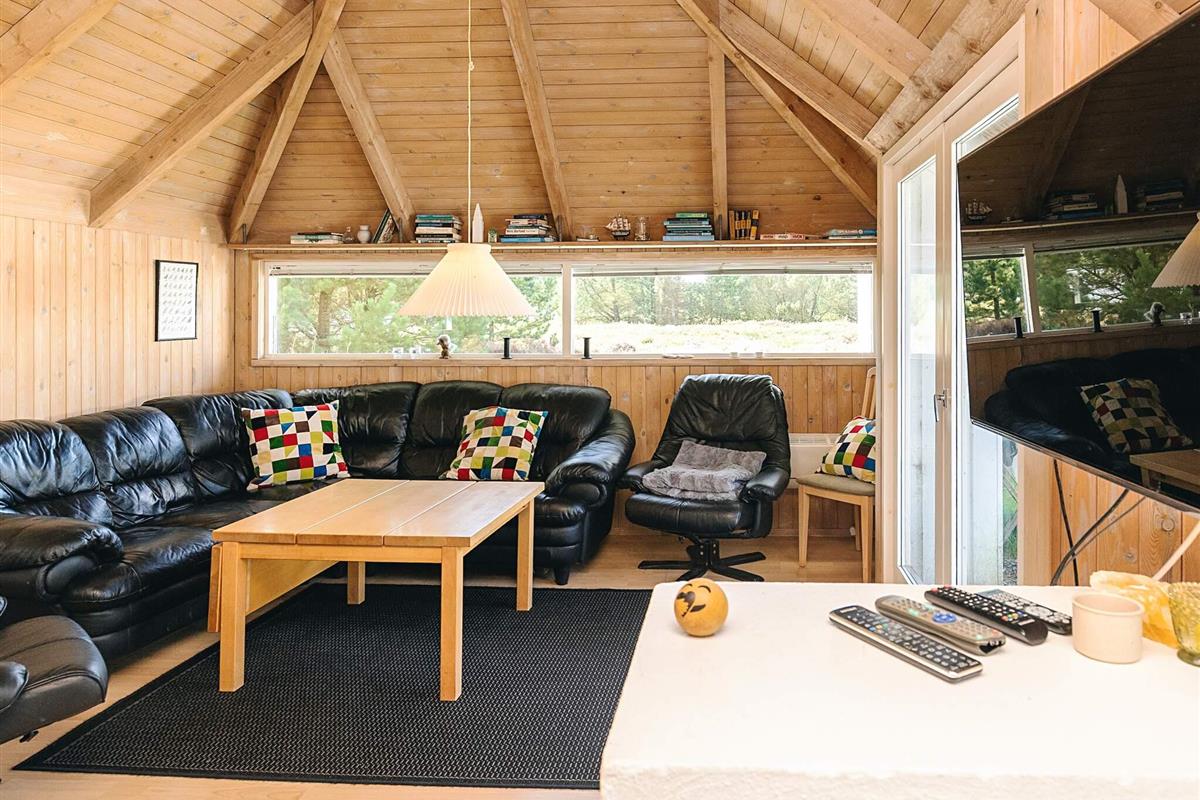 Das gut ausgestattete Ferienhaus liegt ungestört am Ende einer gesperrten Straße. Große Fenster laden zum Eintauchen in die malerische Umgebung ein, sodass Sie sowohl vom Sofabereich als auch vom Essbereich aus den Blick ins Grüne genießen können. Die offene Küche bietet gute Arbeitsbedingungen beim Kochen – inklusive Geschirrspüler.