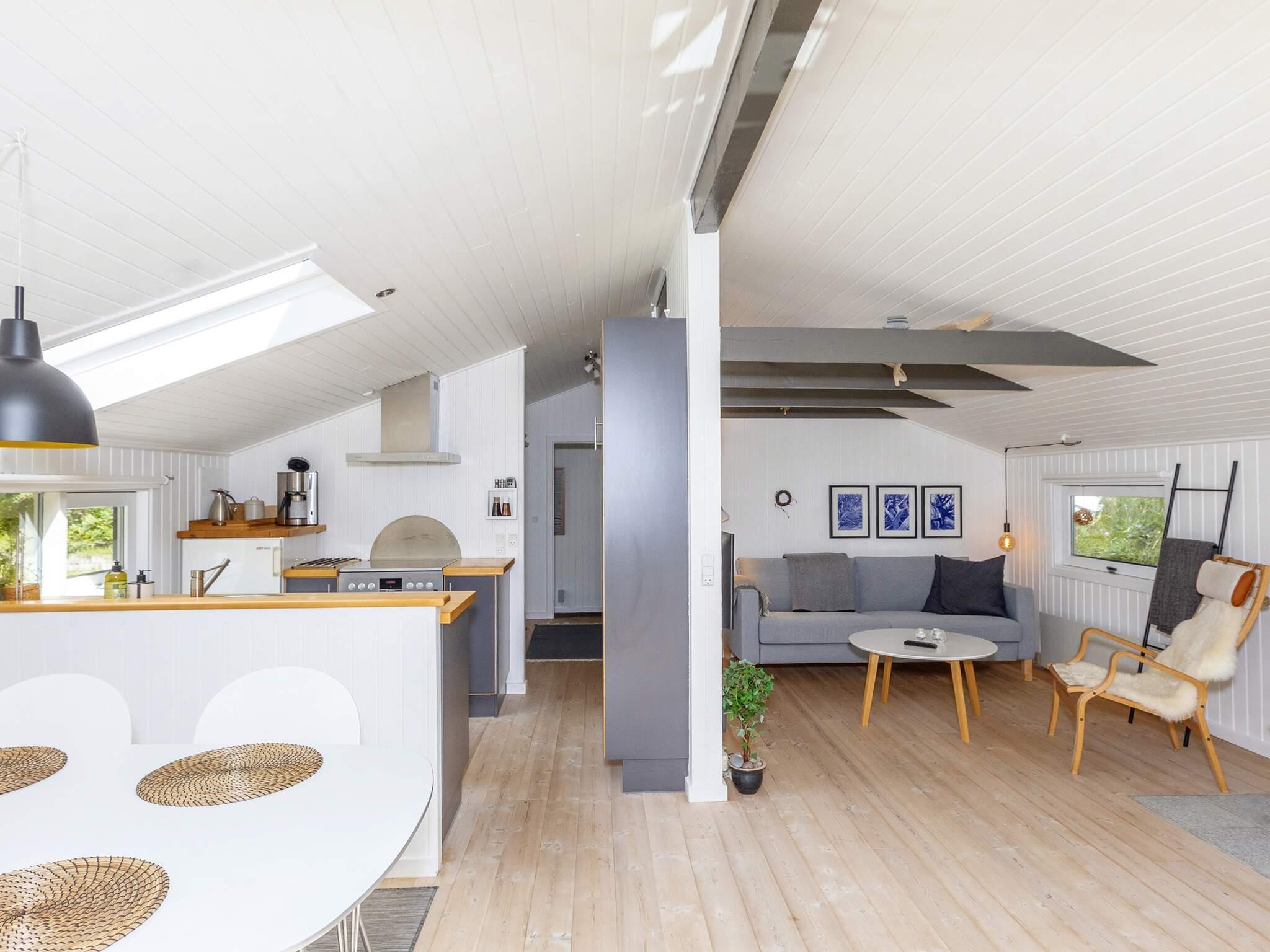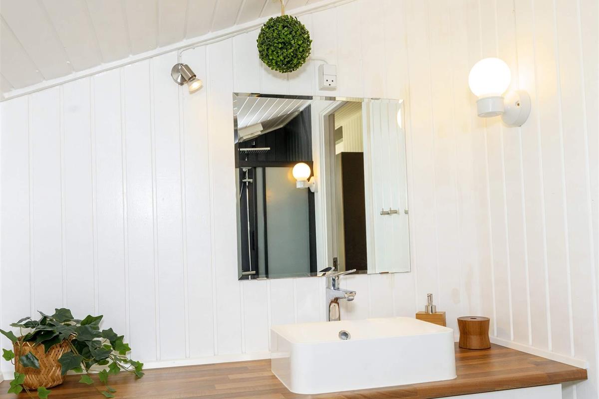 Dieses charmante Ferienhaus mit Sauna liegt versteckt am Ende einer ruhigen Sackgasse in der Nähe von Kollerup Strand und bietet absolute Privatsphäre und einen ruhigen Rückzugsort. Ein praktischer Hauswirtschaftsraum im Eingangsbereich verfügt über eine Waschmaschine und einen Trockner und bietet Zugang zu zwei Doppelzimmern mit Dachschrägen und direktem Zugang zur Sauna. Zusätzlich gibt es ein Schlafzimmer mit einem Einzelbett und ein helles Badezimmer mit Dusche – Komfort und Bequemlichkeit für die ganze Familie.
