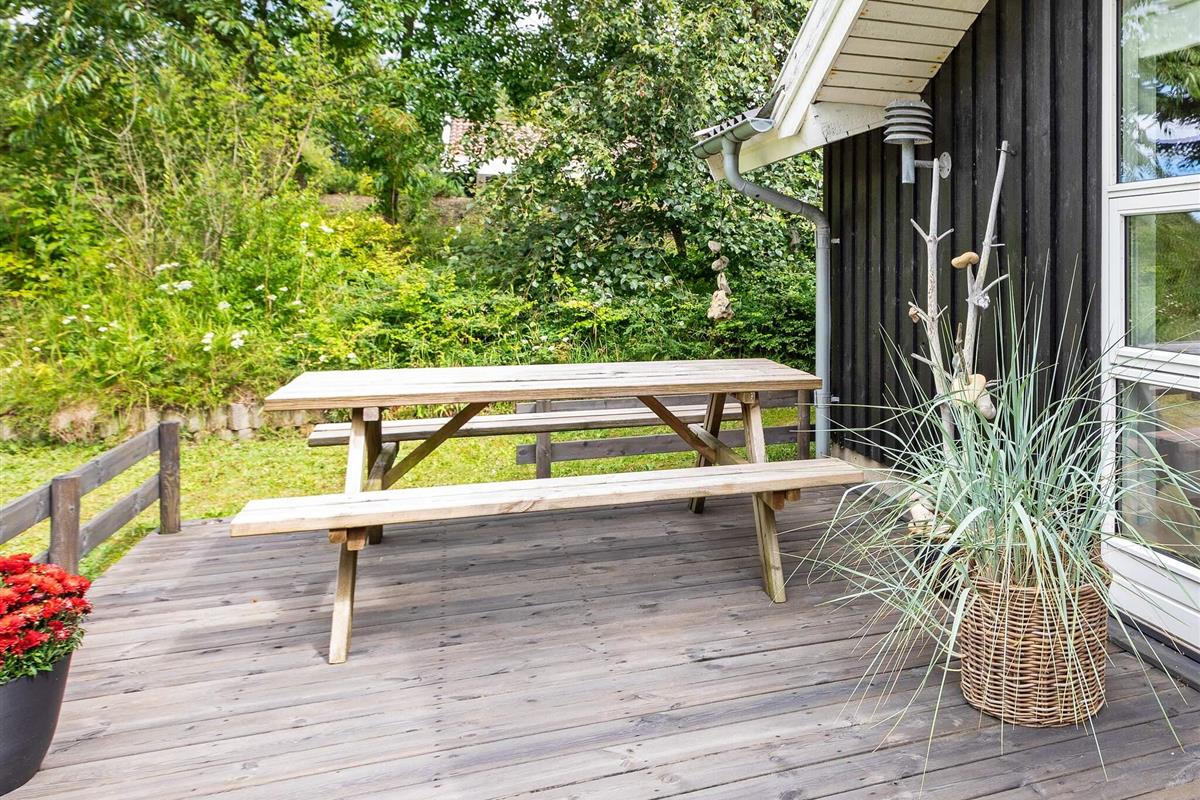 Im Außenbereich lädt die nach Süden und Westen ausgerichtete Holzterrasse zum Genießen sonniger Tage und Entspannen an der frischen Luft ein. Das große Naturgrundstück ist von altem Baumbestand umgeben und grenzt an ein kleines Wäldchen. Es bietet eine ruhige Umgebung für Outdoor-Aktivitäten, Spiel und erholsame Momente inmitten der Natur. Dieses Ferienhaus verbindet modernen Komfort mit einer ruhigen Lage und ist ideal für Familien, die einen erholsamen Urlaub an der Küste verbringen möchten.