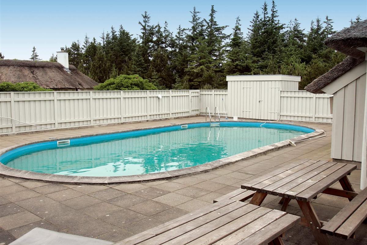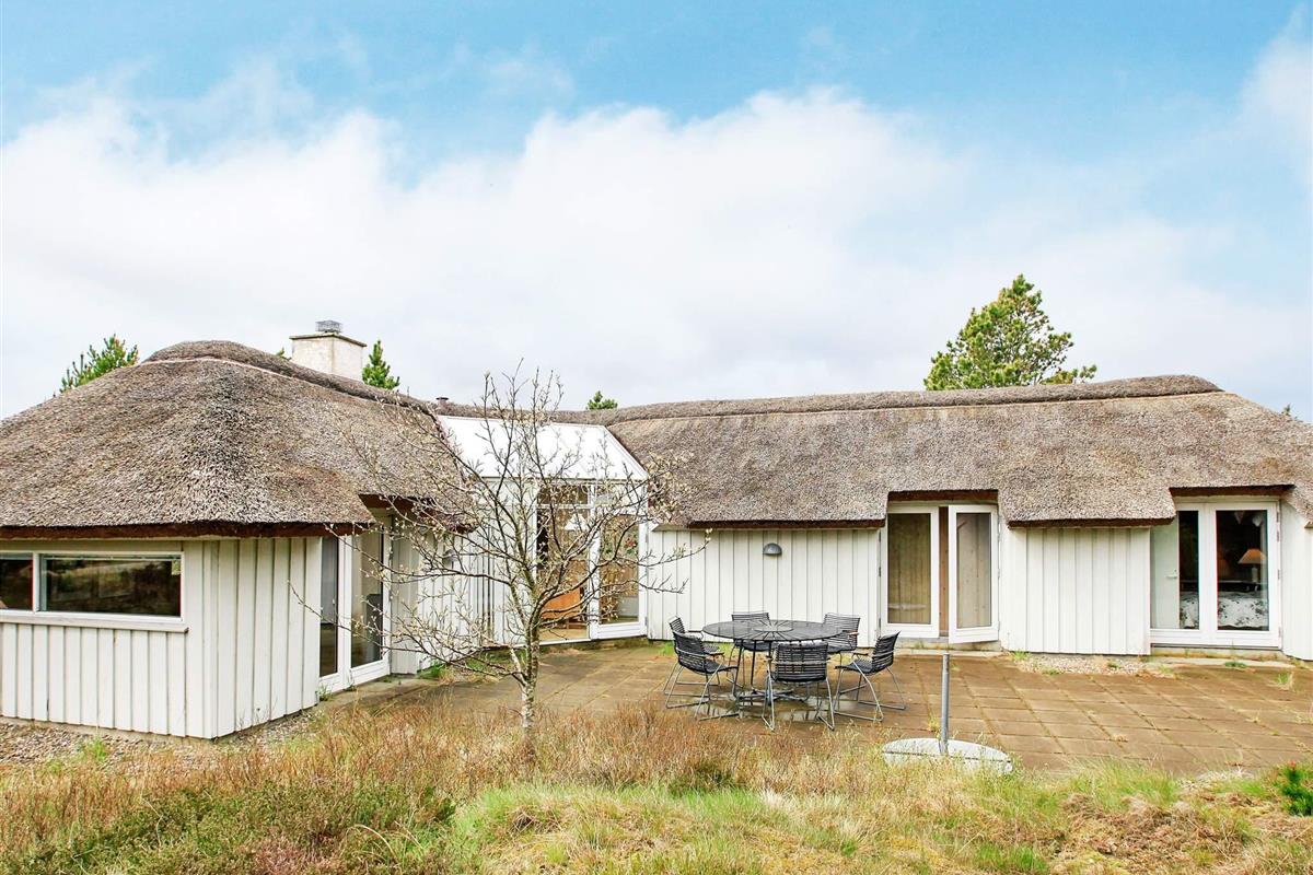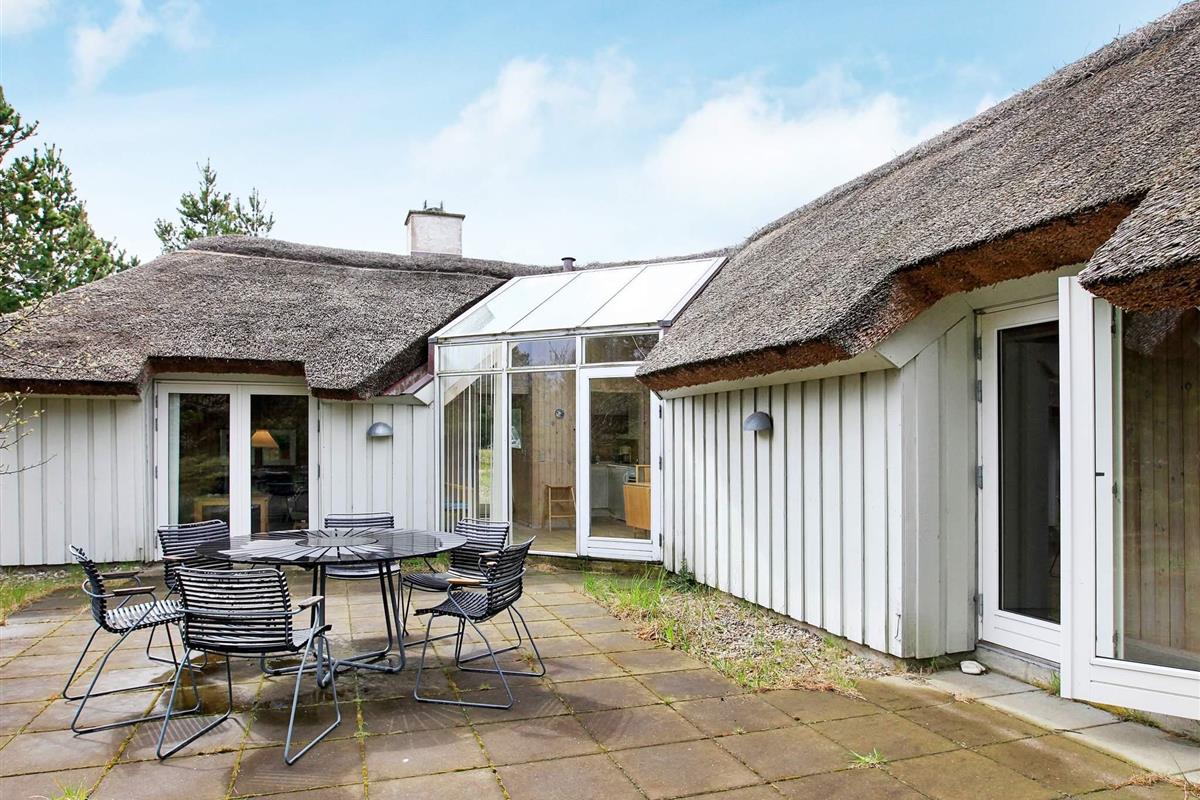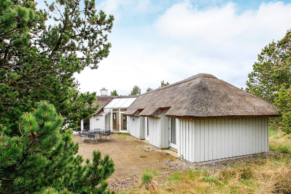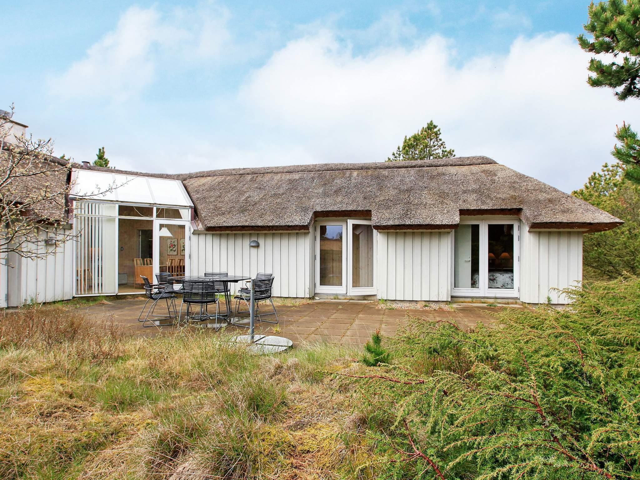 Reetgedecktes Ferienhaus mit hauseigener Sauna,welches laufend instand gehalten wurde und sich daher ansprechend und gepflegt präsentiert. Steht auf einem geschützten Naturgrundstück mit Bäumen. Im Haus komfortabler Küchen-/Wohnbereich mit gemauertem Kamin. Von hier hat man Zugang zur großen, gut abgeschirmten Terrassenfläche, auf der man windgeschützt die Sonnentage verbringen kann. Im Anschluss an das Haus liegt ein außen Schwimmbecken für gemeinschaftlich Verfügung. Zur freien Nutzung steht ein gemeinschaftlicher Außenpool zur Verfügung, der erst nach den Herbstferien zusammen mit den Tennisplätzen geschlossen wird. Ab Frühjahr 2022 steht auch das Hallenbad zur freien Nutzung zur Verfügung. Die Tür zum Poolgebäude können Sie mit Ihrem Hausschlüssel öffnen. Zudem gibt es einen gemeinschaftlichen Spiel-, Tennis- und Bolzplatz sowie eine Boulebahn.