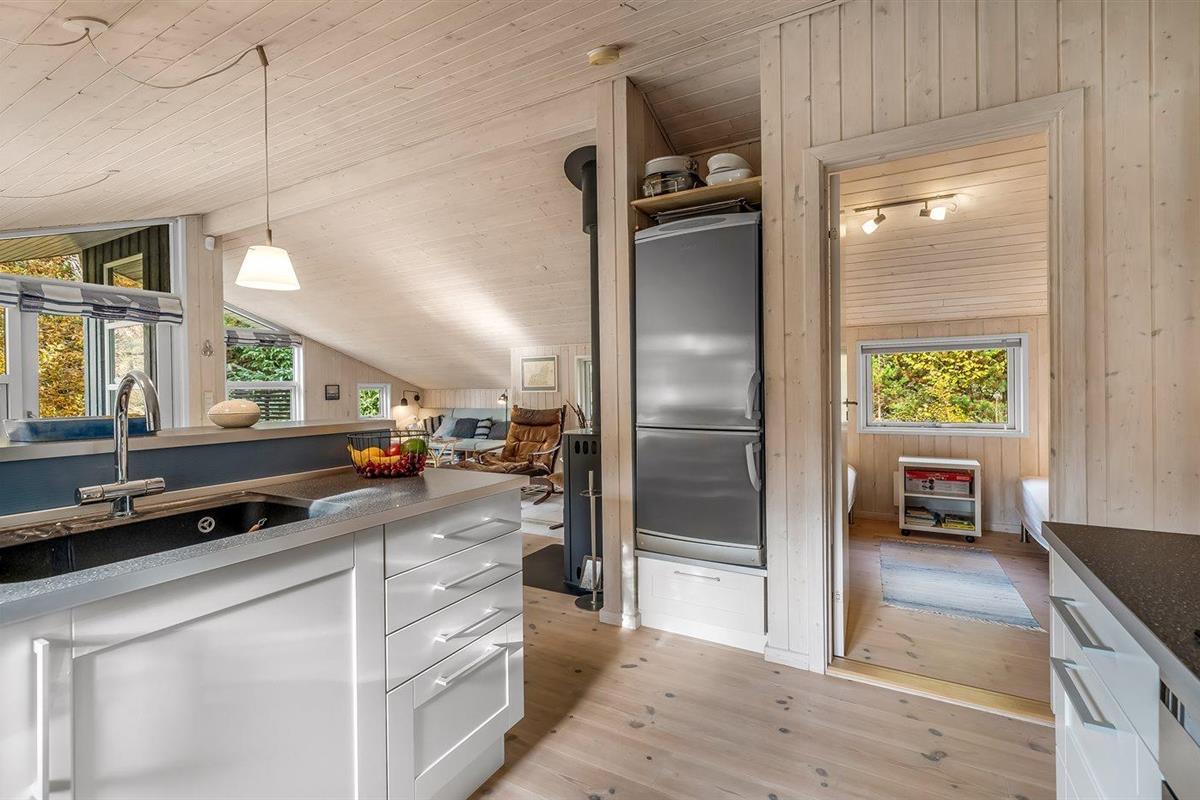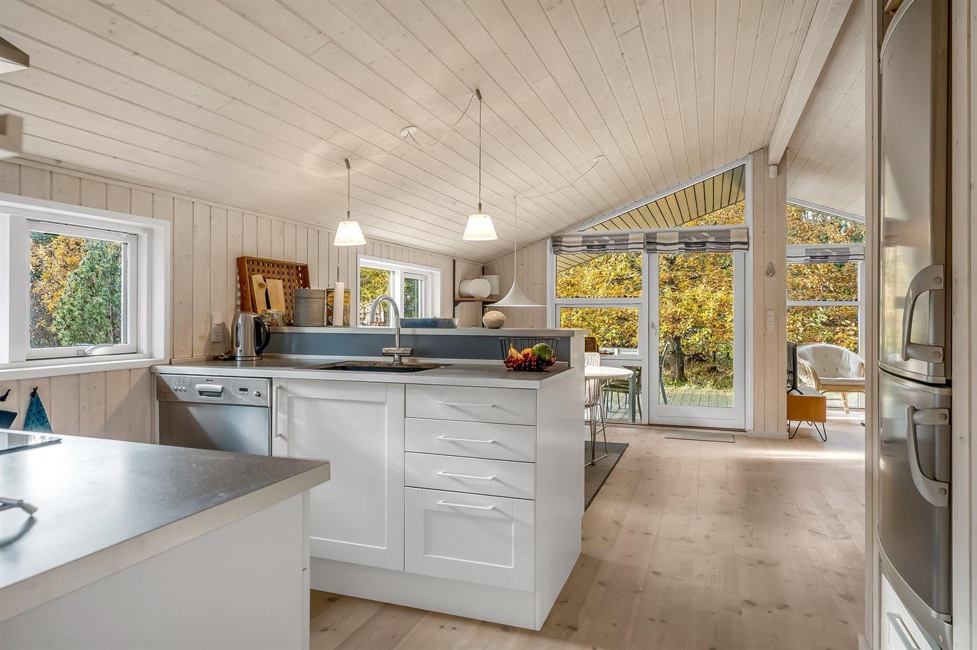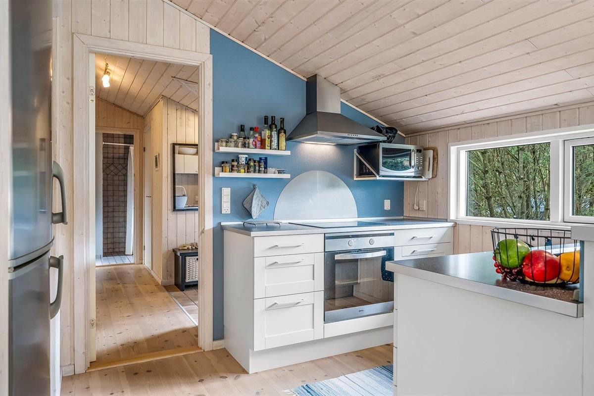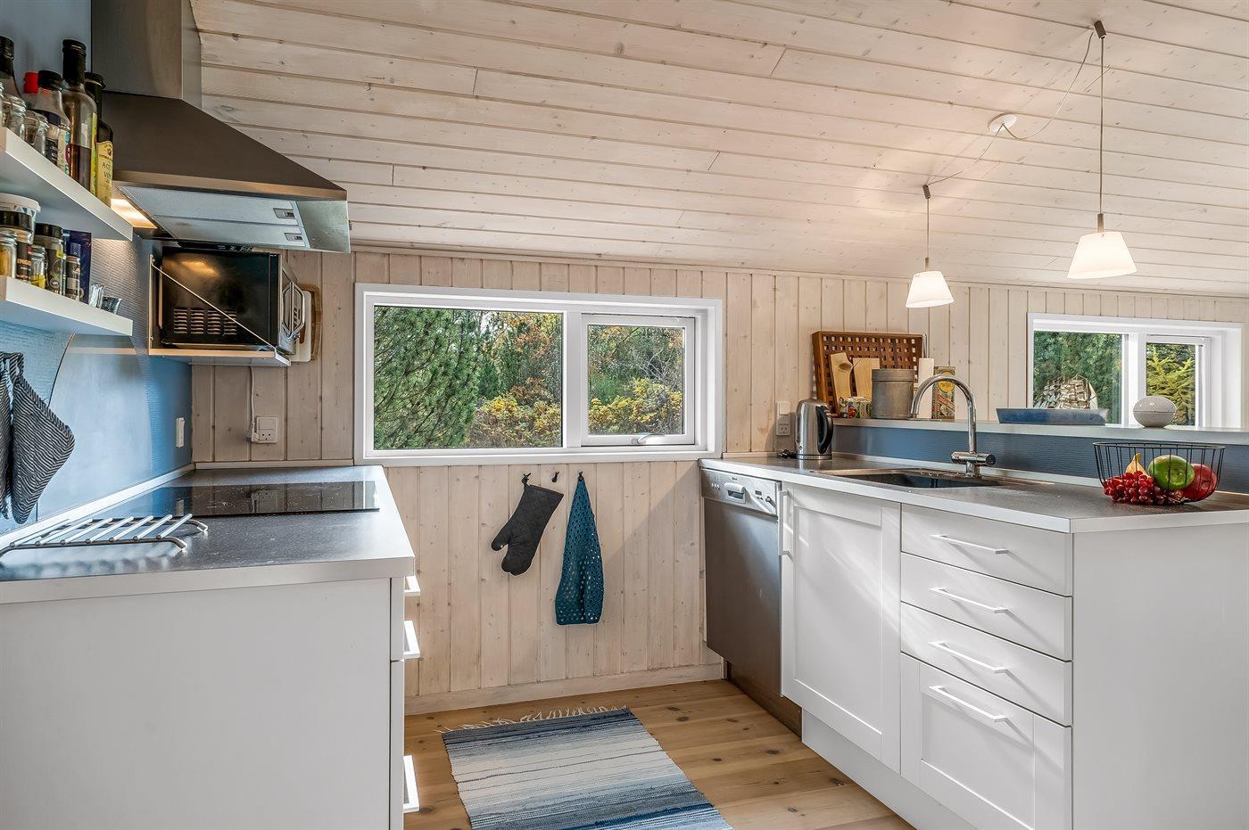 De keuken is uitgerust met koelkast Er is 4 inductiekookplaten, heteluchtoven, magnetron en vaatwasser.
