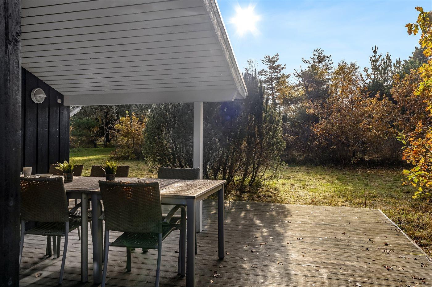 De vakantiewoning is gelegen op een 1092 m² groot grond in bos/park. Afstand tot de zee 4000 m. Dichtstbijzijnde winkel 2500 m. Bij de vakantiewoning hoort terras. Daarnaast is er een overdekt terras. Afstand tot speelplaats 300 m. Parkeerplaats bij het huis.