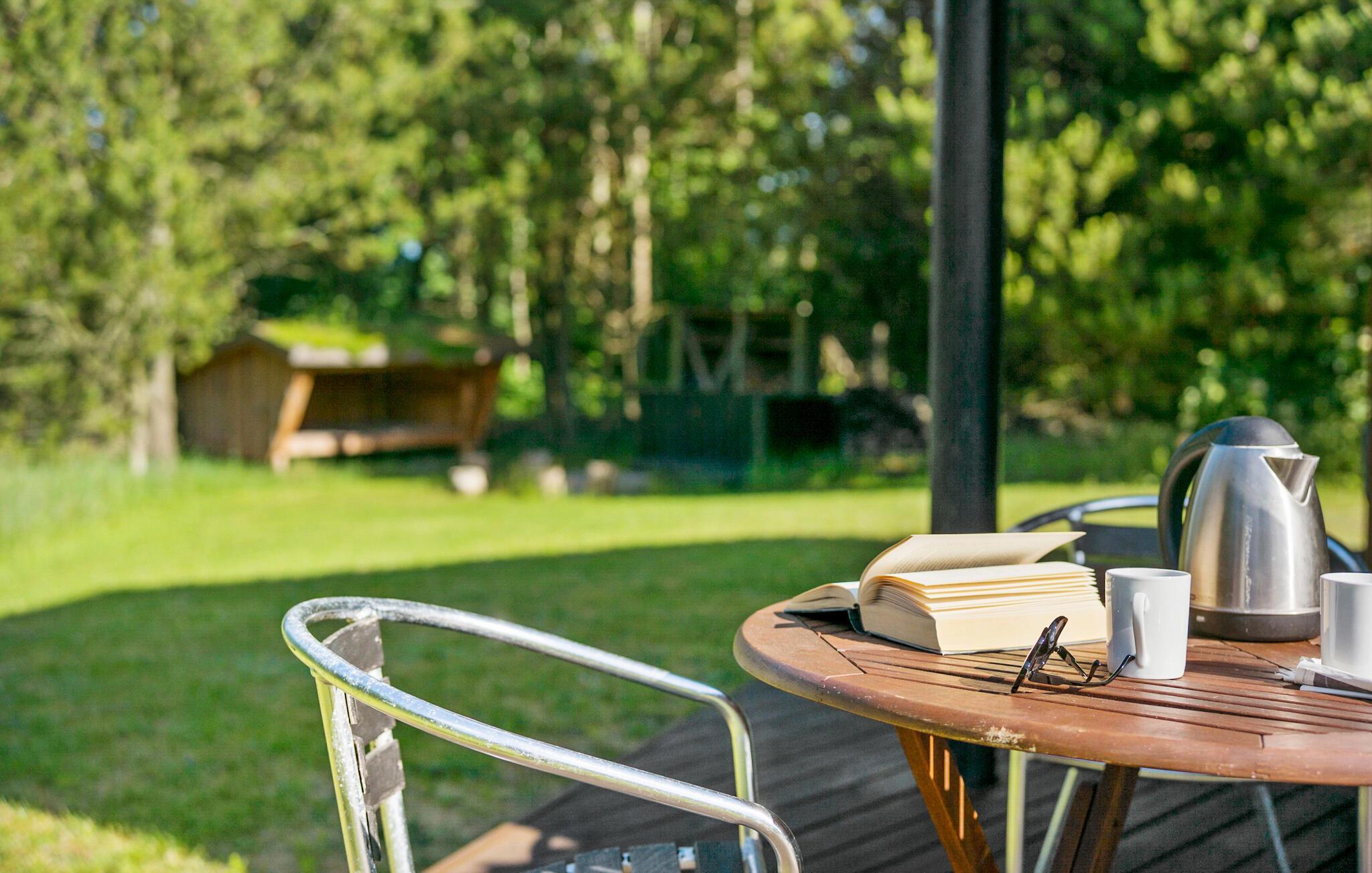 De grote tuin met prachtige terrassen rondom het huis nodigt je uit om te zonnebaden, spelen en plezier te maken in de buitenlucht. Kom samen rond het kampvuur en rooster marshmallows en stokbrood. Als je je slaapzakken meeneemt, kun je ook nachten doorbrengen in de schuilplaats en onder de sterren in slaap vallen.