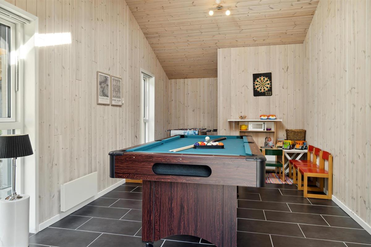 Kom met je gezin naar Kollerup Klit en breng een onvergetelijke vakantie door in dit geweldige vakantiehuis. Naast de grote en comfortabele woonkamer, die koken, spelen en ontspannen combineert, vind je hier ook andere uitnodigende kamers en ruimtes. Speel biljart in de activiteitenruimte en kijk hoe je kleintjes koken in de speelkeuken.