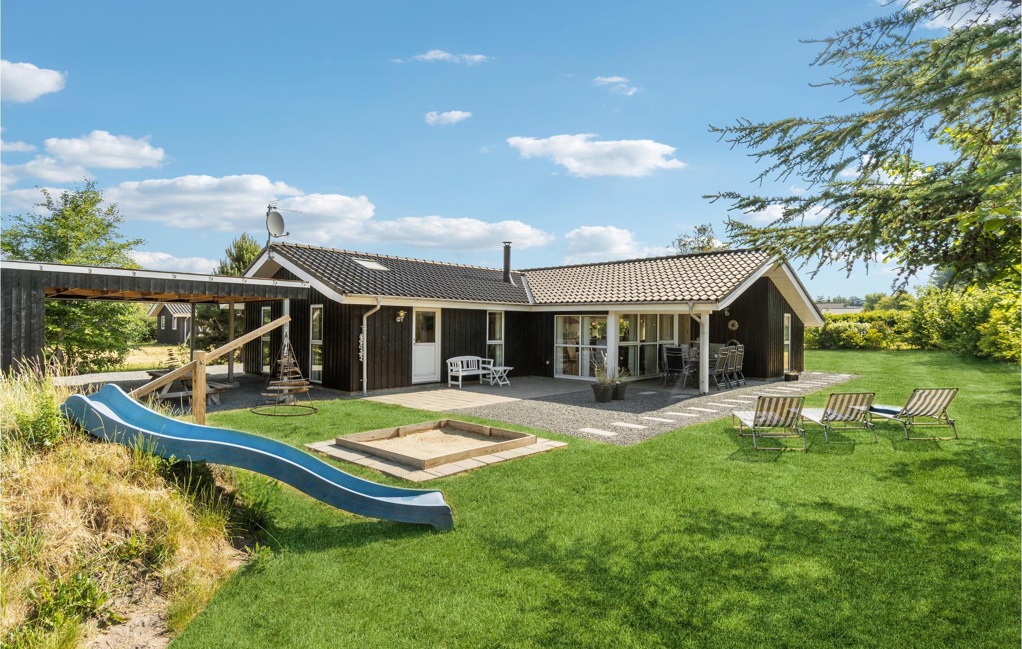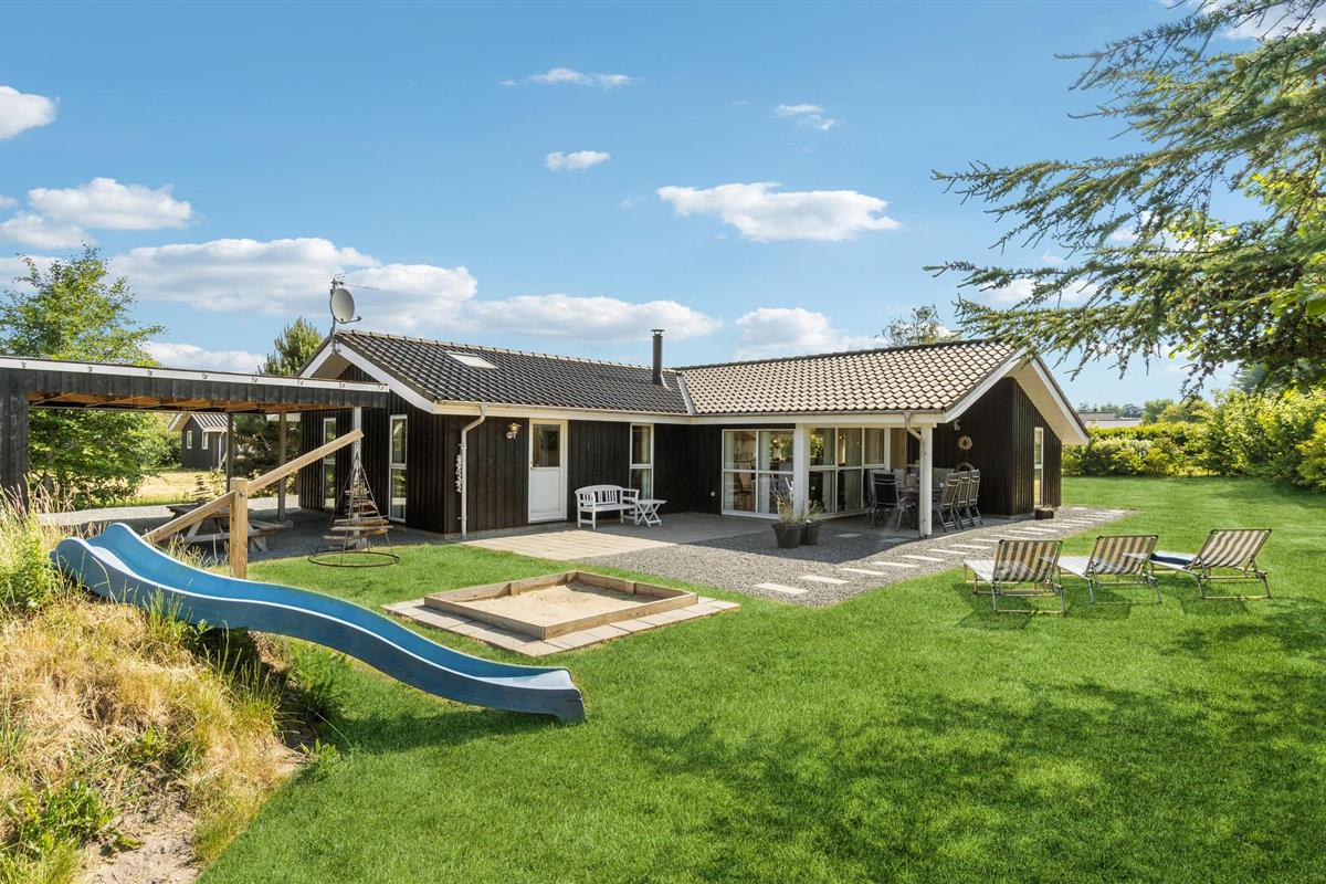 Prachtig vakantiehuis in Kollerup Klit met tuin, speeltoestellen en sauna, ideaal voor een ontspannen gezinsvakantie in Denemarken.