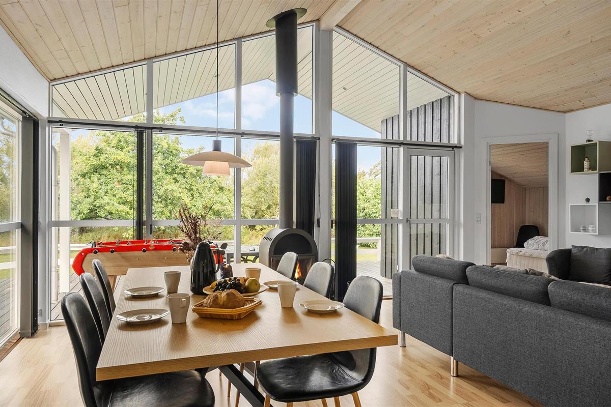 Welkom in dit stijlvolle en comfortabel ingerichte vakantiehuis, waar je er even helemaal tussenuit kunt met je geliefden. Grote ramen openen het uitzicht op het groen en voorzien de open woonruimte van veel natuurlijk daglicht. Geniet samen van maaltijden aan de uitnodigende eettafel en trakteer jezelf na een lange dag in de frisse lucht op gezellige momenten in de sauna of whirlpool, terwijl anderen biljart of tafeltennis spelen of een gezellige spelletjesavond voorbereiden in de woonkamer.
