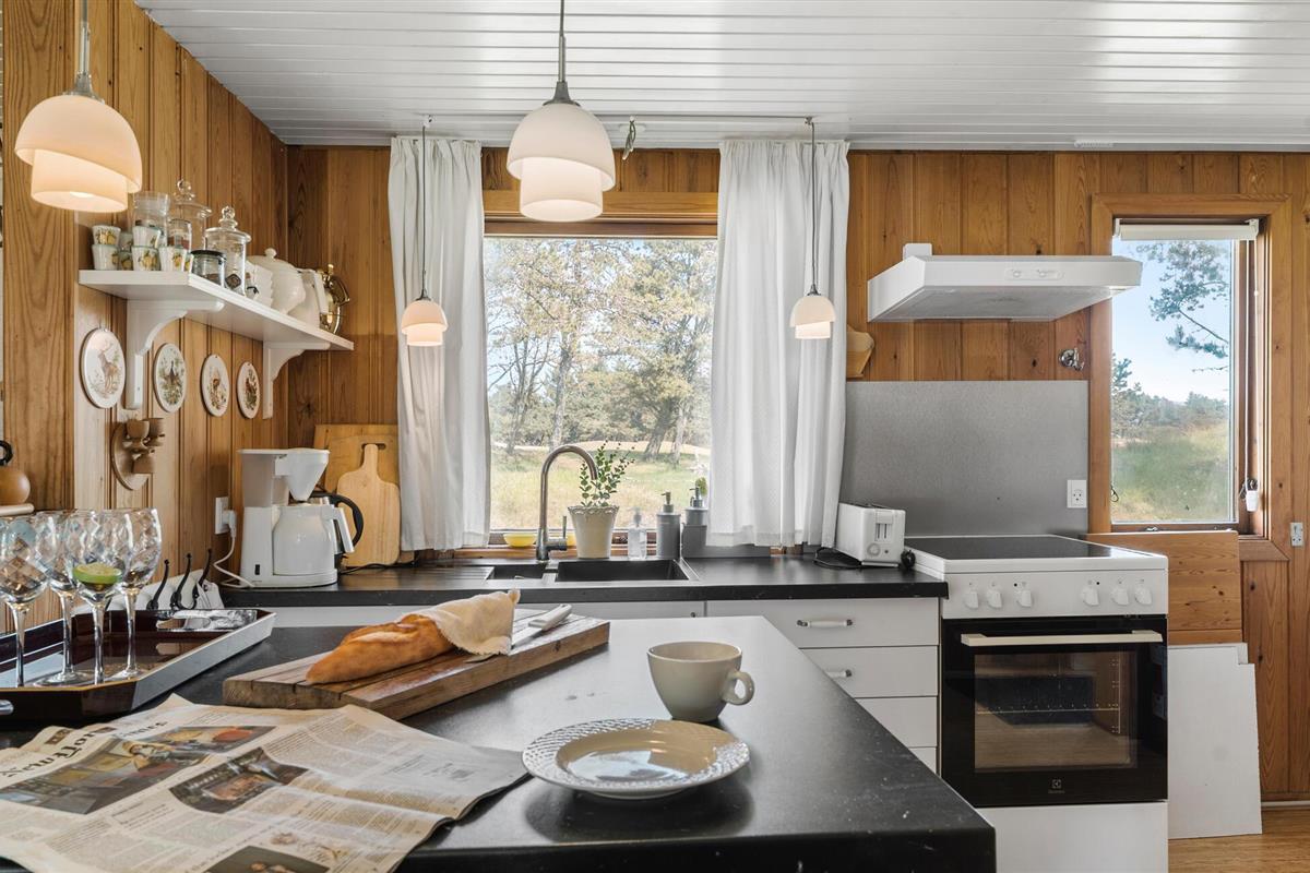 De prachtige zandstranden van het idyllische Jammer Bay in het noorden van Jutland liggen vlakbij dit gezellig ingerichte vakantiehuis. De rustieke sfeer en de vele liefdevol ontworpen details maken het ideaal voor een ontspannen vakantie met het hele gezin. Verheug je op een comfortabele vakantie. Dompel jezelf onder in de warme en uitnodigende sfeer van de woonkamer, die een gezellige uitstraling heeft. Maak het jezelf gemakkelijk op de gezellige banken en geniet samen van je maaltijden aan de mooie eettafel naast de open keuken.