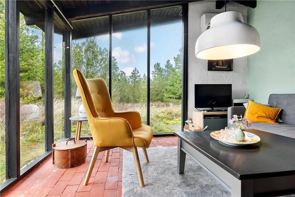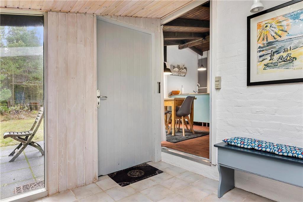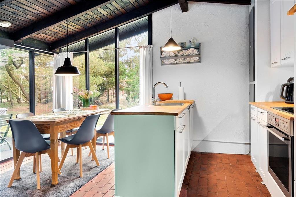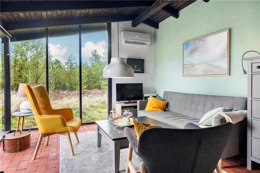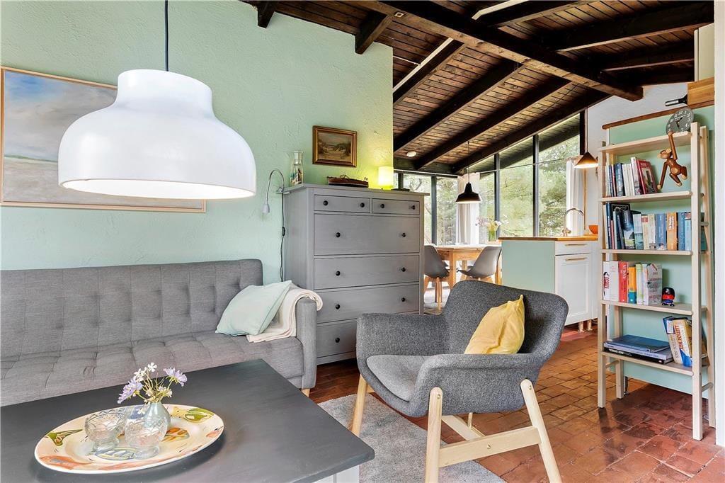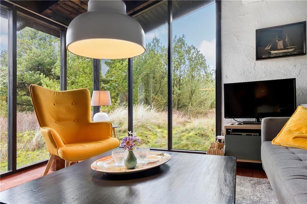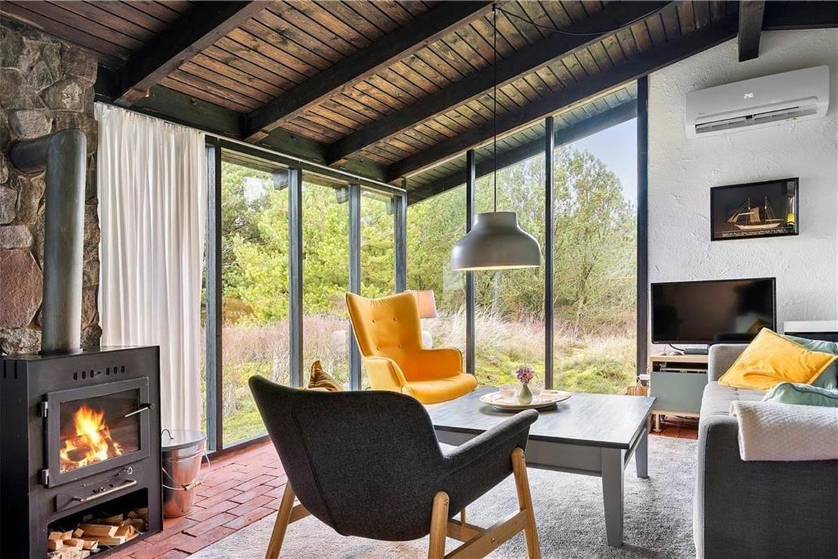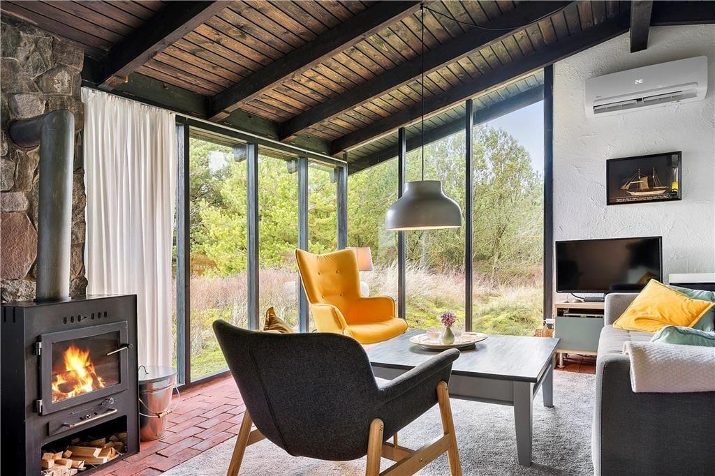 Die letzte Renovierung fand im Jahr 2019 statt, so dass sich alle Räume gepflegt und einladend präsentieren – auch das Badezimmer und die beiden Schlafzimmer, von denen ein Schlafzimmer über ein Doppelbett und das andere über ein Einzelbett verfügt, welches zu einem Doppelbett ausgezogen werden kann. Ein großer Teil der Quadratmeter ist dem schönen Wohnbereich des Ferienhauses gewidmet, der aus einer offenen Küche und einem Wohnzimmer besteht. An beiden Enden des Raumes sorgen die großen Fensterabschnitte für guten Lichteinfall und Blick auf den Garten, während der Holzofen und die Wärmepumpe dafür sorgen, dass du es auch an kühlen Abenden warm hast.
