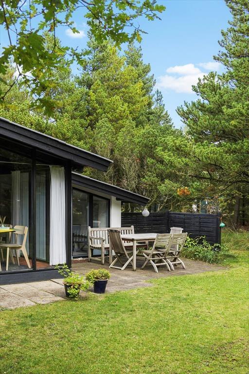 An sonnigen und sommerlichen Tagen ist es wunderbar, die Urlaubstage nach draußen zu verlegen, wo dir mehrere Terrassen zur Auswahl stehen. Im Süden befindet sich ein teilweise überdachter Terrassenbereich, und wenn du lieber sonnenbaden, plaudern und grillen möchtest, gibt es auch eine nach Westen ausgerichtete Terrasse. Auf dem 2646 m² großen Naturgrundstück gibt es außerdem viel Platz zum Spielen, während die Bepflanzung für Schutz und Privatsphäre sorgt.