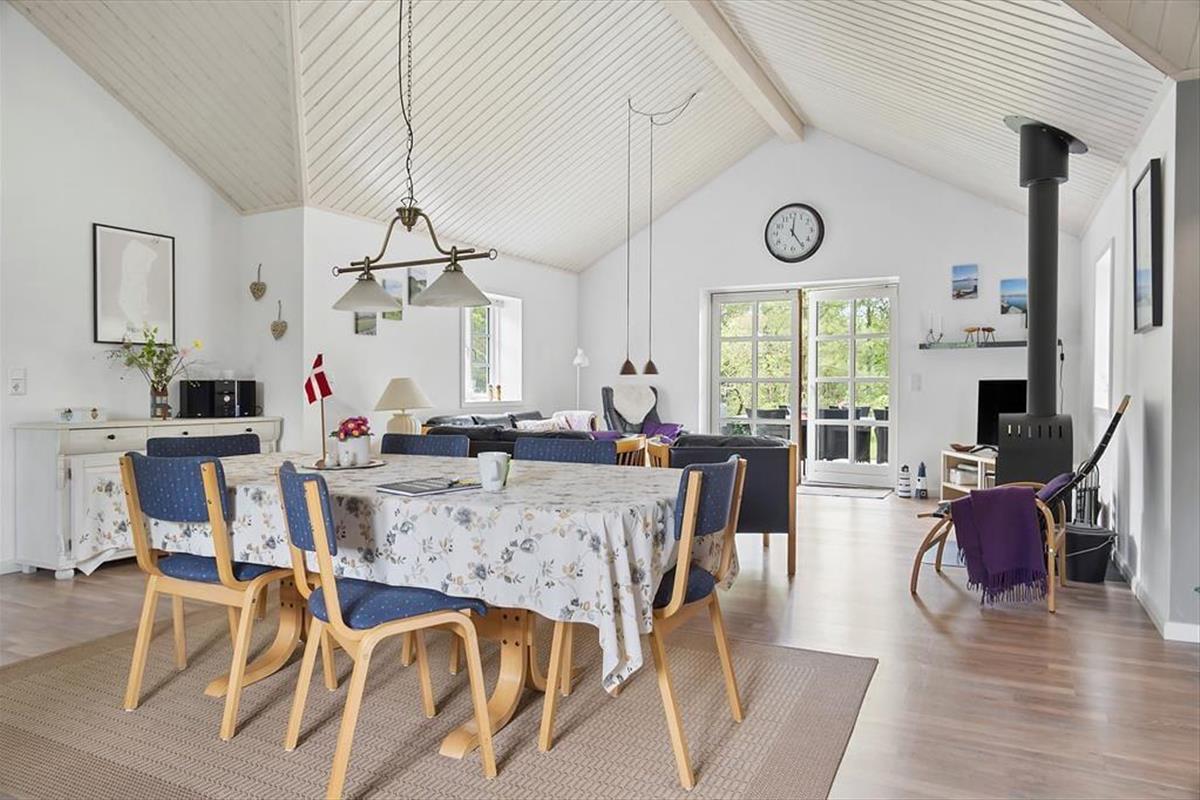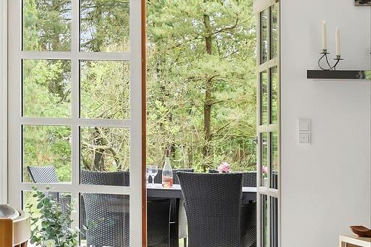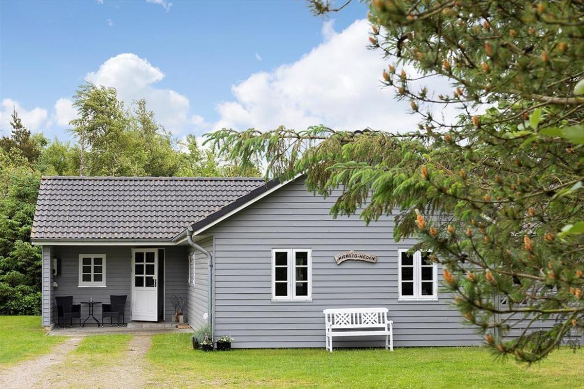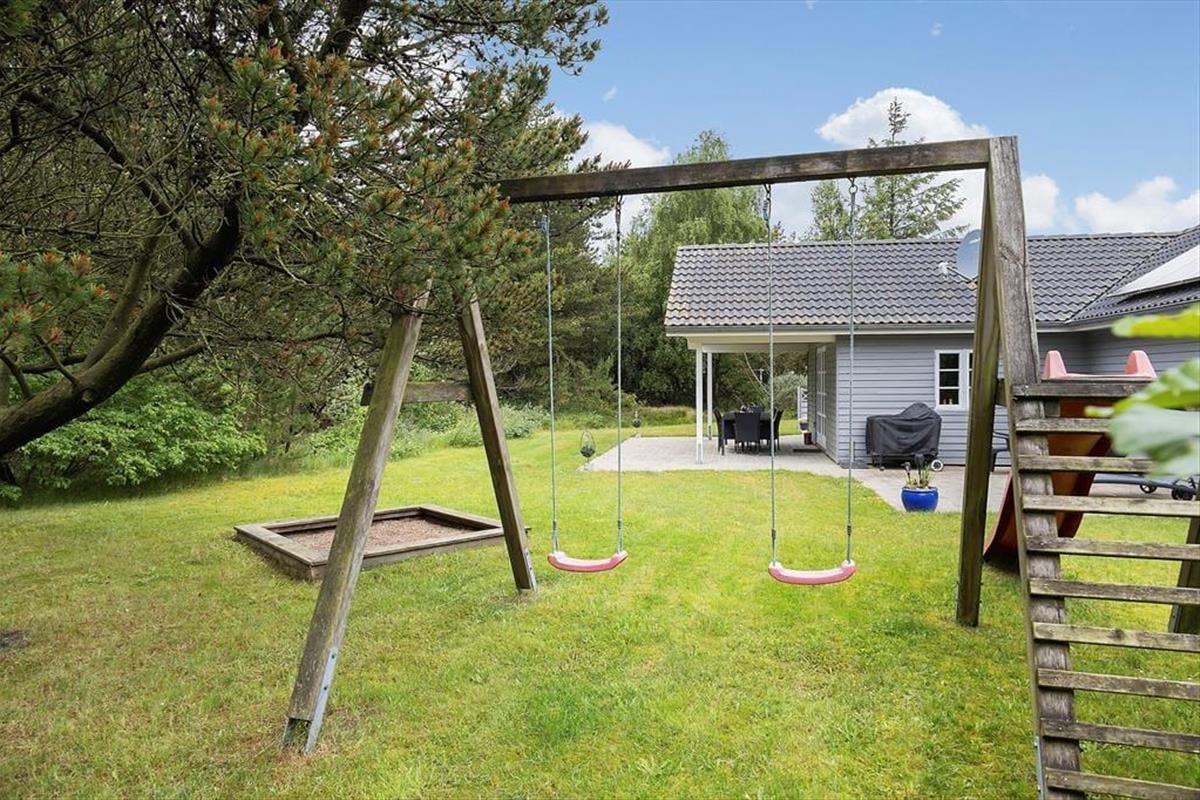 Afslapningsstunderne kan oplagt foregå ude i det fri, når sommersolen skinner højt på den blå himmel. Fra stuen kan I træde direkte ud på en delvist overdækket terrasse, og der er også flere åbne terrasseområder, så I får nemt ved at finde en passende opholdsplads. På grunden er der sandkasse og legestativ til børnene, og en carport giver plads til bilen foran huset.