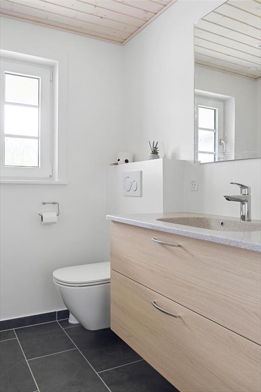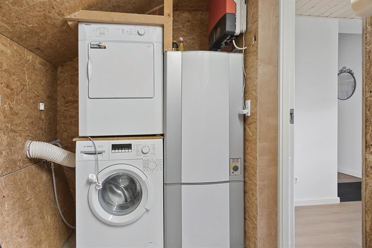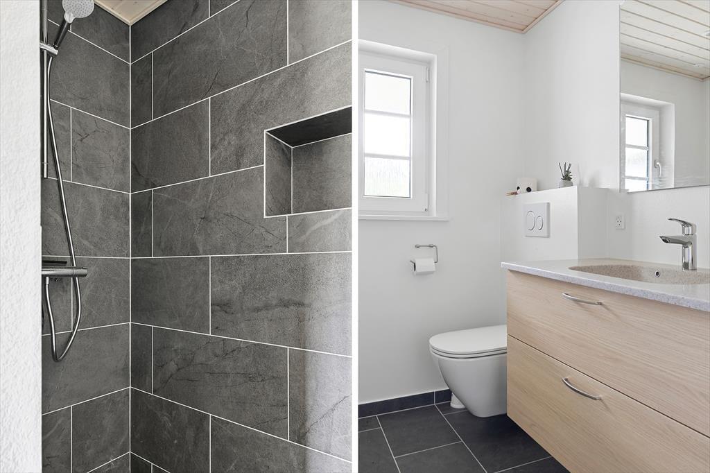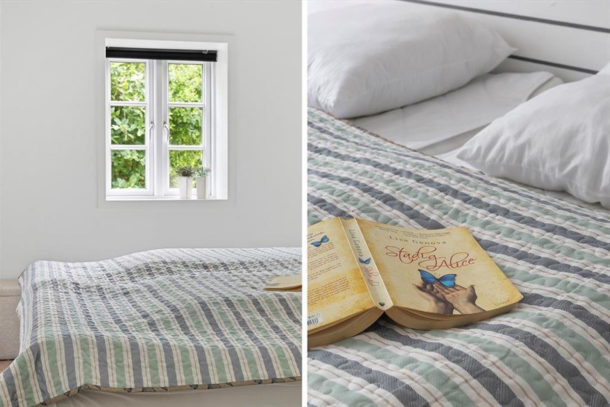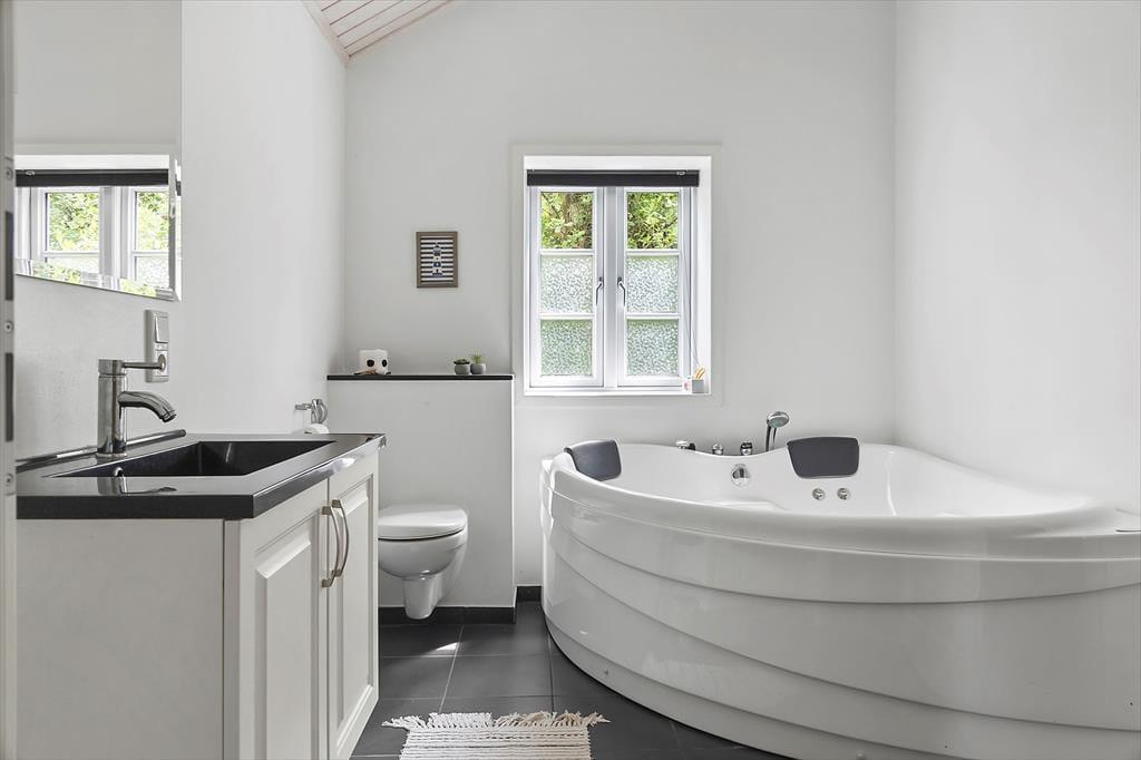 Afslapningsstunderne kan oplagt foregå ude i det fri, når sommersolen skinner højt på den blå himmel. Fra stuen kan I træde direkte ud på en delvist overdækket terrasse, og der er også flere åbne terrasseområder, så I får nemt ved at finde en passende opholdsplads. På grunden er der sandkasse og legestativ til børnene, og en carport giver plads til bilen foran huset.
