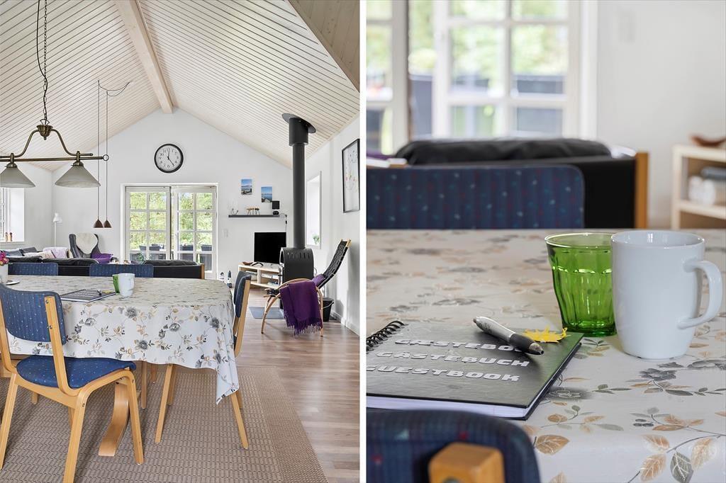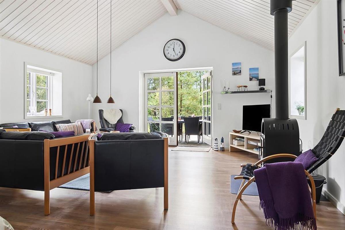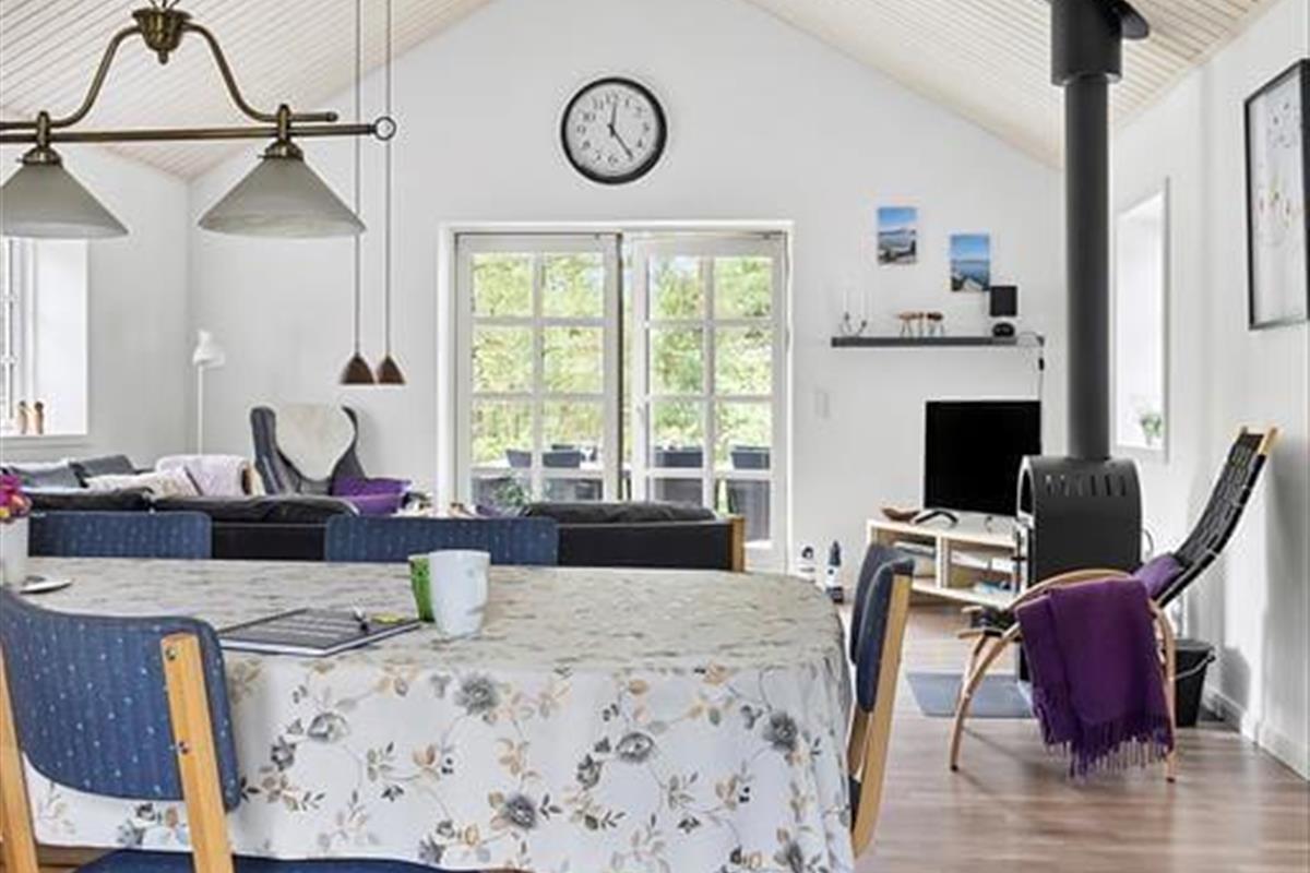 Inden døre i det velrenoverede sommerhus kan I brede jer på hele 119 m². Alle rum er lyse og store, inklusiv de tre gode soveværelser, der i alt kan huse otte personer. Badeværelset er lækkert indrettet med både bruseniche og spabad, mens køkkenet på praktisk vis er integreret med husets flotte og højloftede stue. Her er der brændeovn til de kølige hyggeaftener, og de komfortable siddemøbler lægger op til afslapning dagen lang – er det ikke det, man fortjener, når det endelig er ferietid? Har I brug for underholdning, kan I tænde for TV’et, der har parabol tilsluttet, så I kan vælge mellem danske, engelske og tyske kanaler.