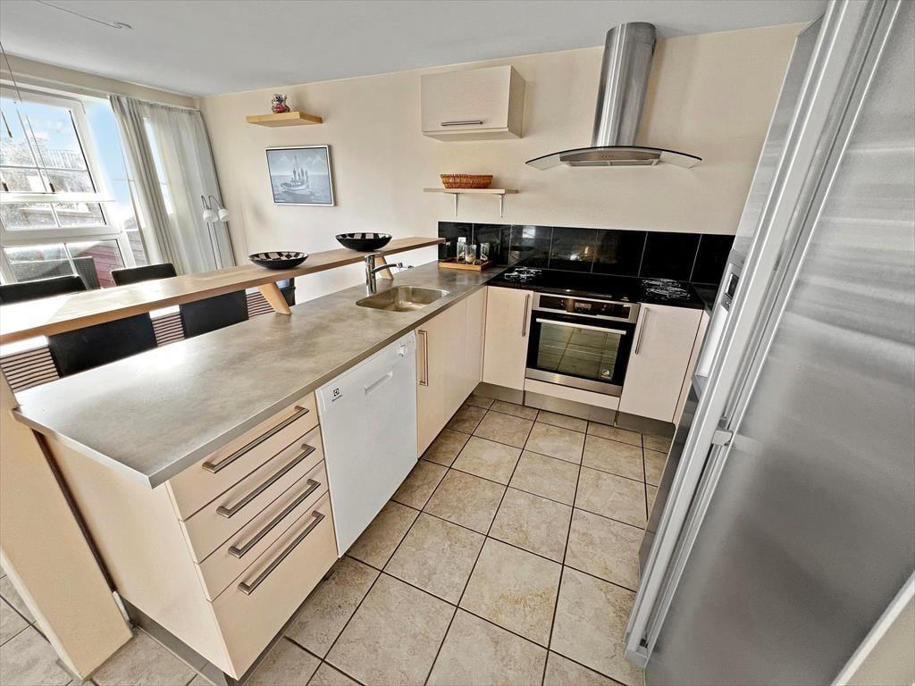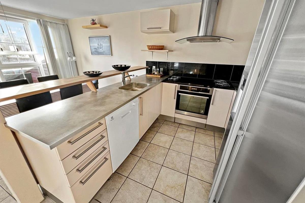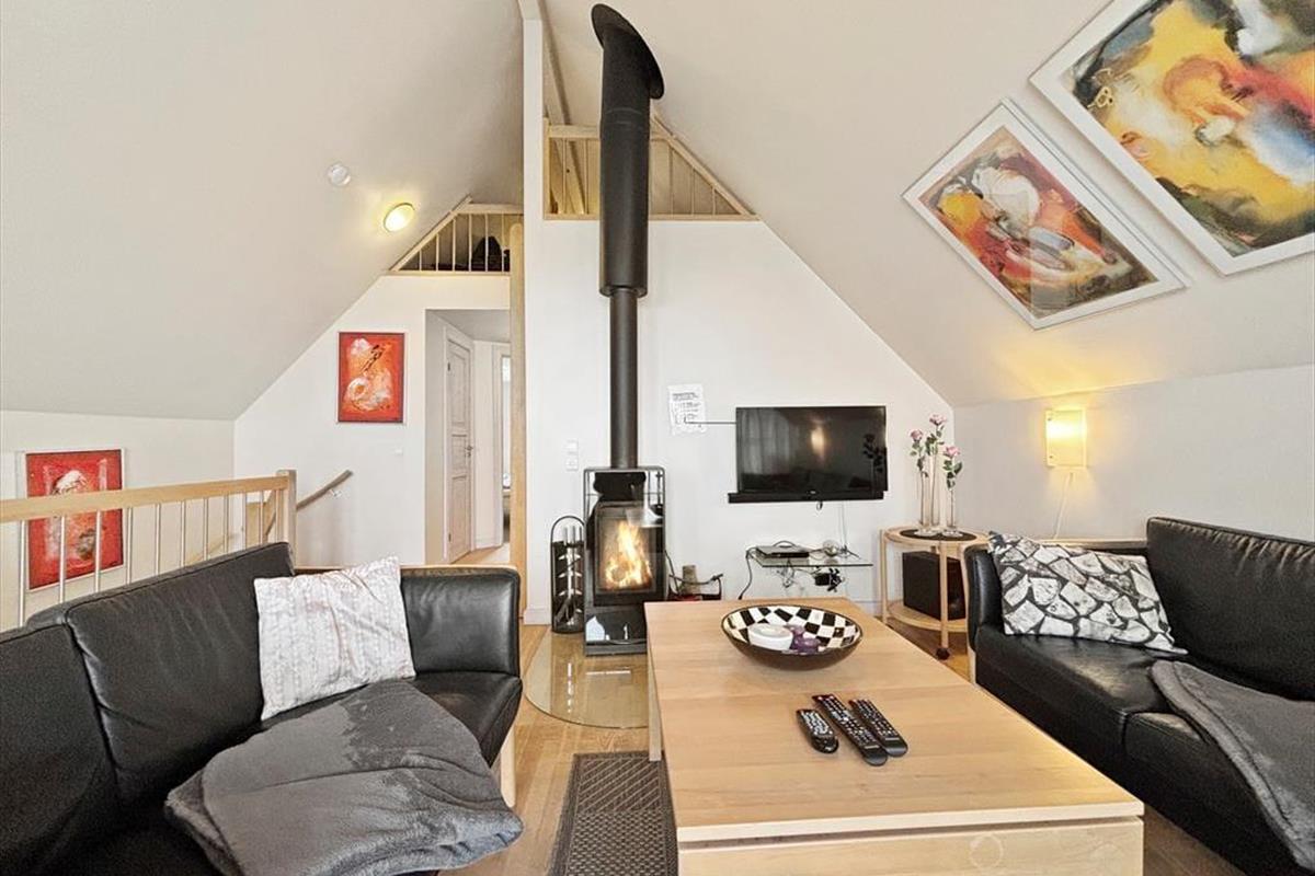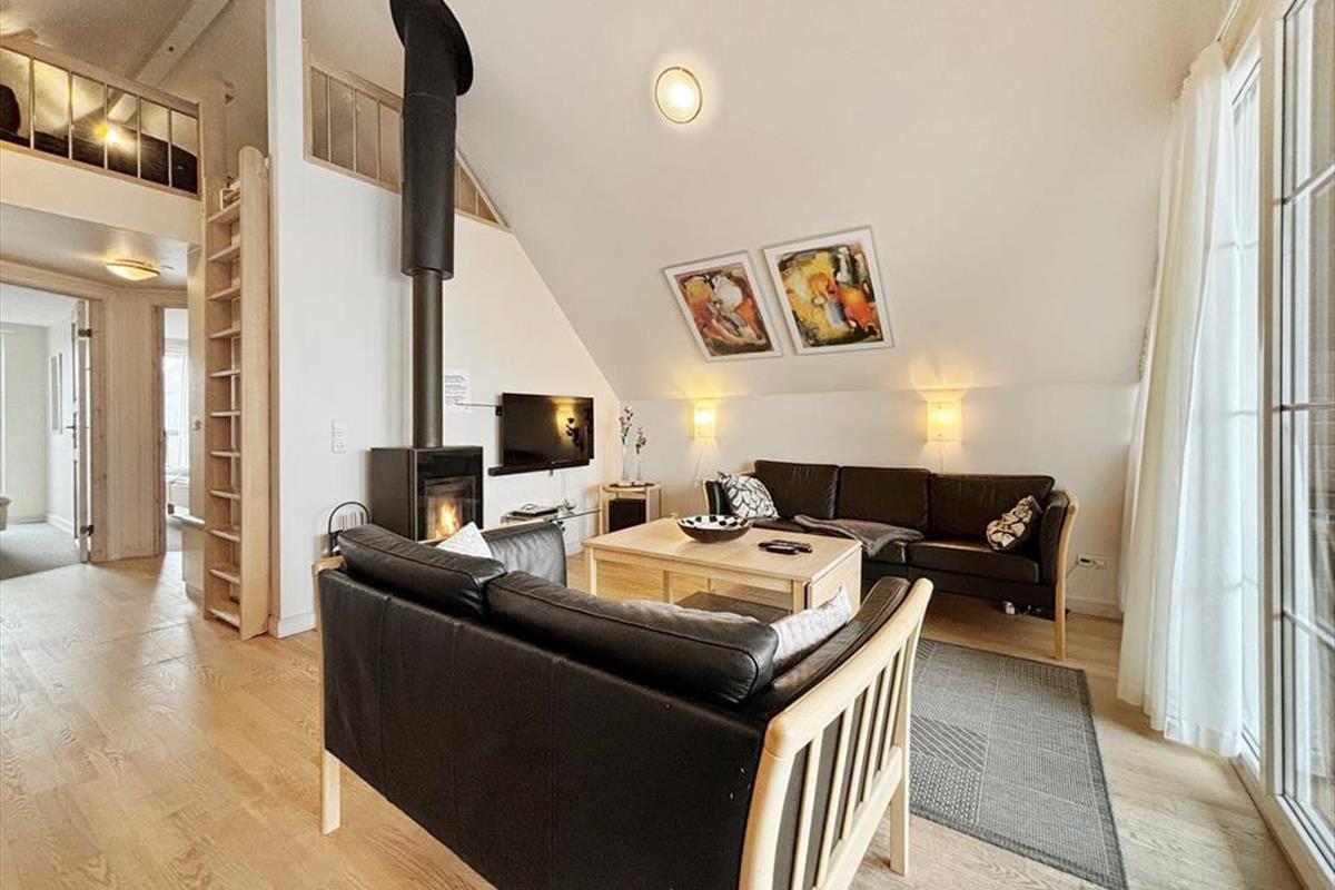 Das 2005 erbaute Reihenhausgebäude präsentiert sich elegant mit Reetdach und roter Backsteinfassade. Im Innenbereich hast du 116 m² Wohnfläche auf zwei Etagen zur Verfügung, und außerdem gibt es eine Dachnische, die eine gute Ergänzung zu den drei Schlafzimmern des Reihenhauses ist. Ebenso wie die Schlafräume verteilen sich auch die zwei Aufenthaltsräume des Hauses auf Ober- und Erdgeschoss. Unten in der Wohnküche kann sich die ganze Urlaubsgesellschaft gemütlich versammeln, um eventuell gemeinsam zu kochen und die Mahlzeit anschließend am Esstisch zusammen zu genießen. Nach dem Essen kannst du dich in das Wohnzimmer oben begeben, das geschmackvoll mit weichen Sofas, einem Brennofen und einem Flachbildfernseher ausgestattet ist. Mit anderen Worten: ein wunderbarer Ort zum Entspannen – und wenn du dich noch mehr verwöhnen lassen möchtest, kannst du dich in einem der beiden Badezimmer des Reihenhauses auf ein wohltuendes Bad im Whirlpool freuen.