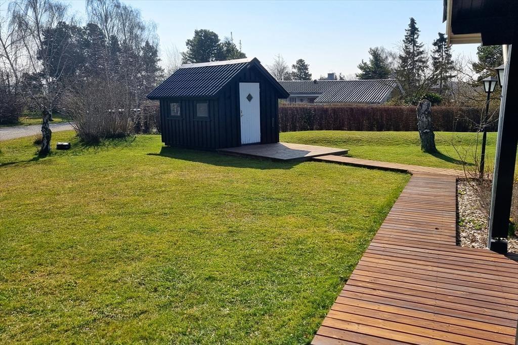 Genieße das Leben im Freien: Tritt hinaus in den schönen Garten oder auf die Terrasse, wo du die Natur, ein gutes Buch und die Ruhe in vollen Zügen genießen kannst. Auf der Terrasse gibt es einen kleinen praktischen Küchenbereich für die Sommerabende im Freien. Das Haus liegt in einer schönen Ferienhaussiedlung in ruhiger, grüner Umgebung mit herrlicher Natur. Der gepflegte Garten ist mit Apfelbäumen und Holzwegen versehen, die das Haus mit dem Nebengebäude verbinden.