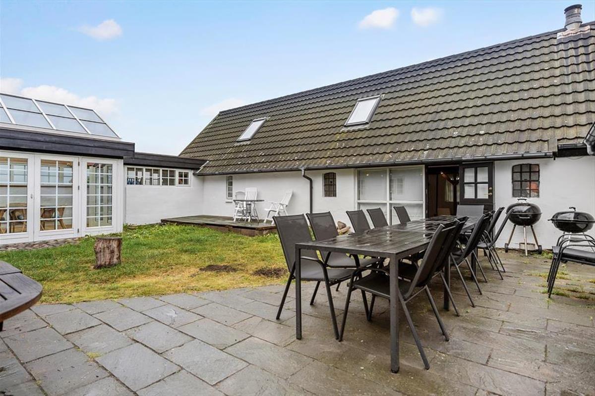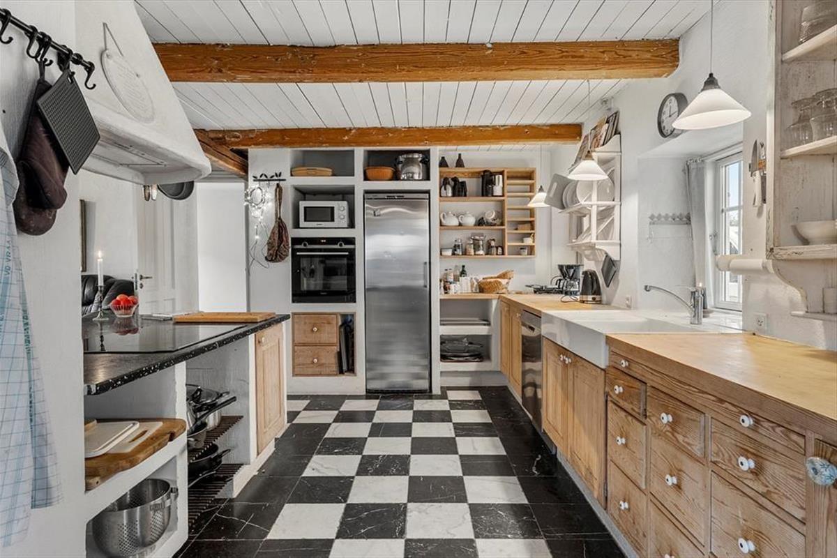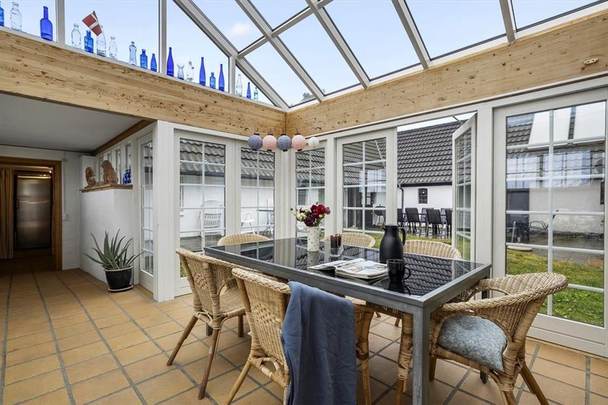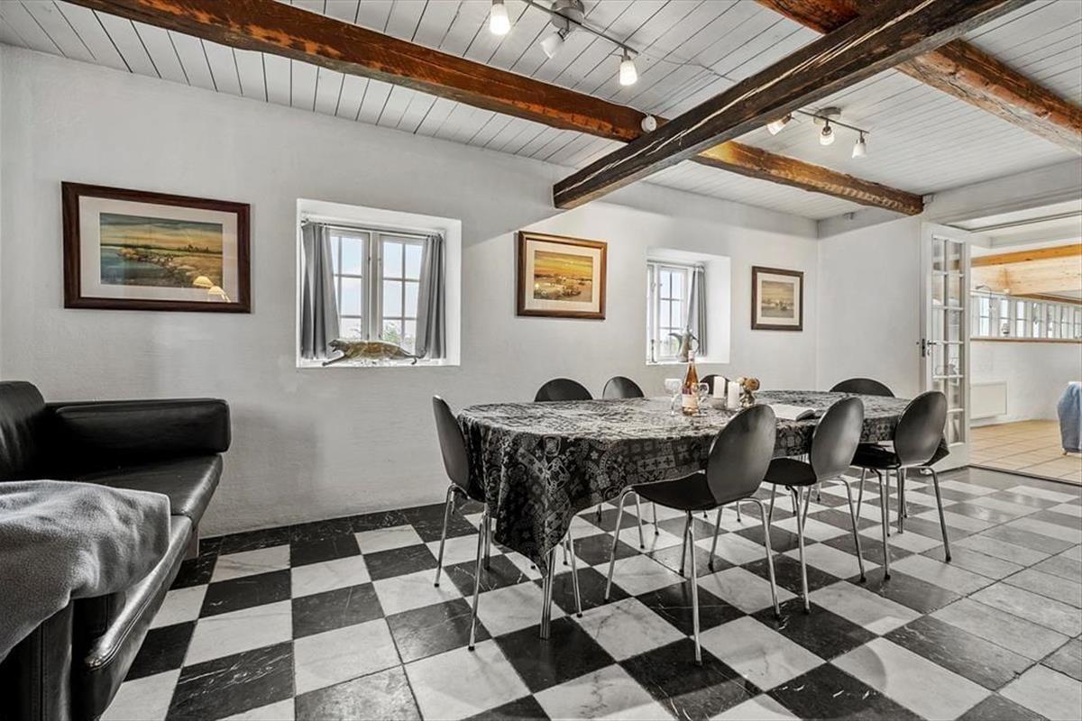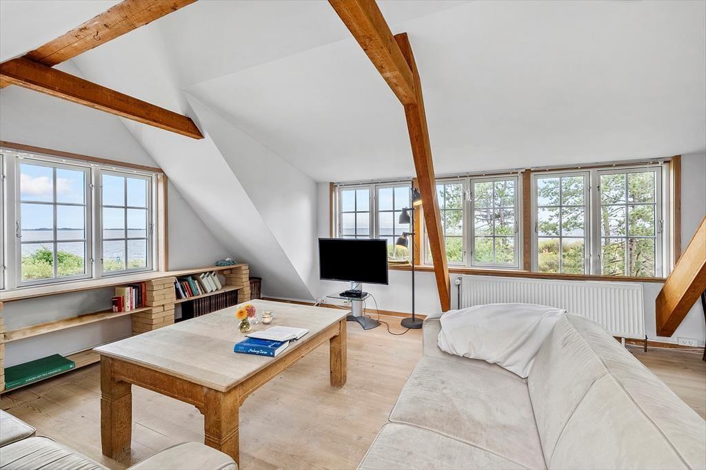 Willkommen in deinem Ferienhaus: Das Haus verfügt über eine großzügige, im französischen Landhausstil gestaltete Wohnküche mit Kamin, in der die ganze Familie gemütlich am Esstisch zusammenkommen kann. Die beiden Flügel sind durch ein wunderschönes Wintergarten/Glashaus verbunden, das viel Licht hereinlässt und direkten Zugang zum Innenhof bietet, der das Zentrum aller Gebäude bildet. Im Erdgeschoss befinden sich zudem zwei Bäder, gestaltet mit rustikalen Materialien, passend zum Stil des Hauses, sowie ein Schlafzimmer. Im ersten Stock gibt es ein Wohnzimmer mit atemberaubendem Blick auf den Großen Belt sowie vier weitere Schlafzimmer, einige davon ebenfalls mit Meerblick.