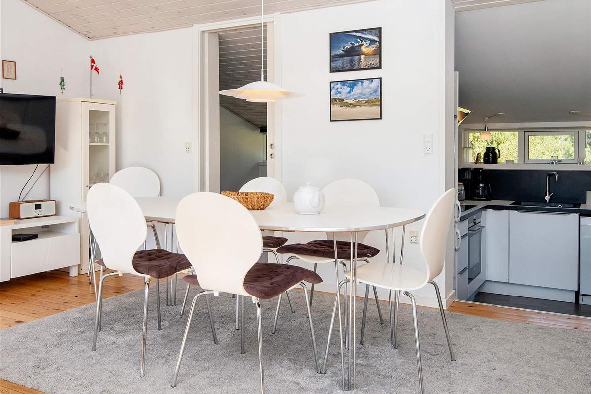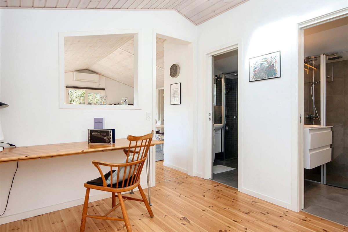 Das renovierte Ferienhäuschen ist mit viel Liebe zum Detail eingerichtet und bietet eine landschaftlich reizvolle Umgebung sowie ein modernes Interieur. Seit der umfassenden Renovierung 2021 bietet es einen offenen Küchen-/Wohnbereich für das Familienleben, ausgestattet mit Cerankochfeld, Geschirrspüler und einem gemütlichen Kaminofen – ideal für entspannte Abende. Ein Fernseher mit dänischen und deutschen Sendern sowie Internetzugang sorgen für zusätzlichen Komfort.