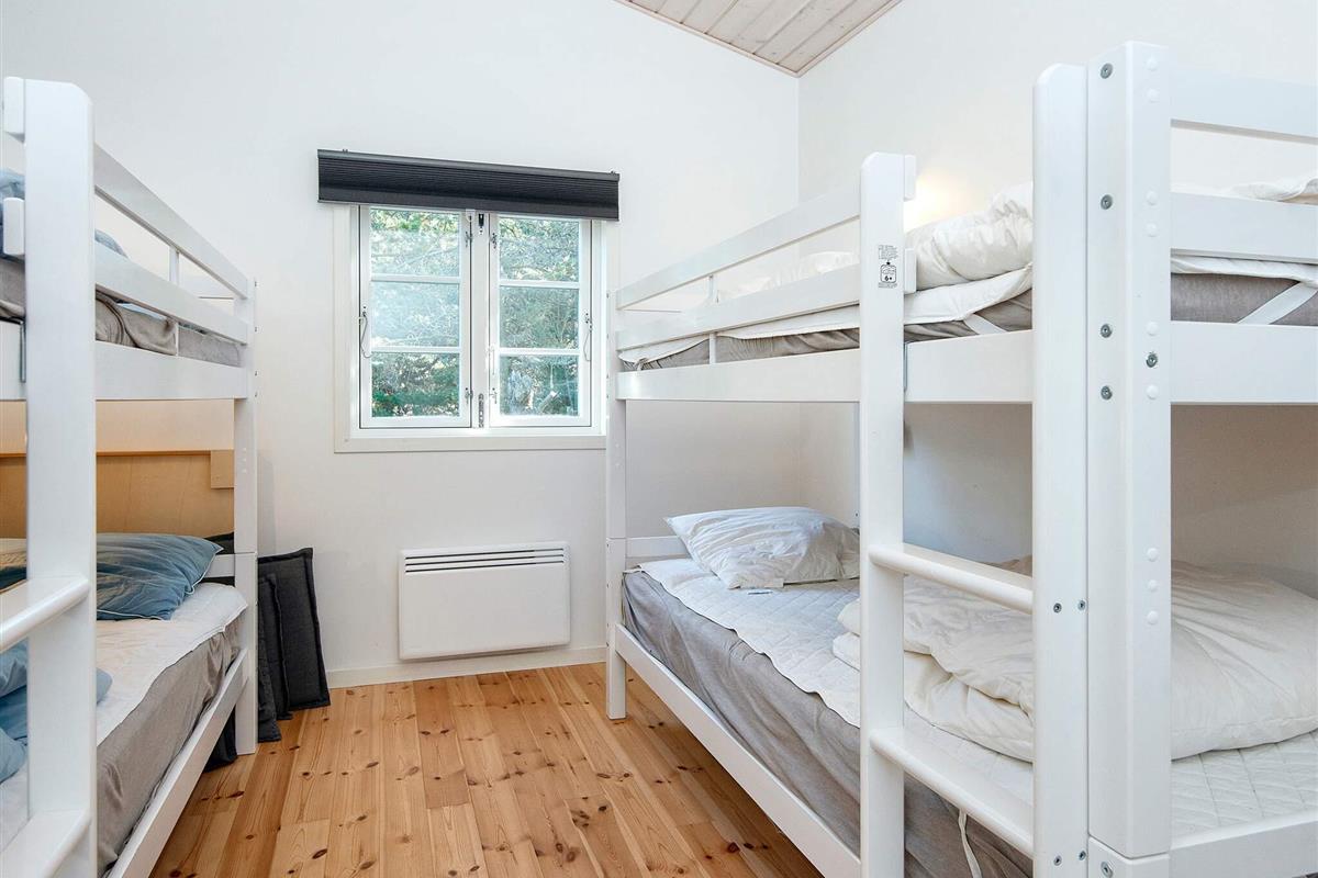 Das Ferienhaus verfügt über drei Schlafzimmer; zwei mit Doppelbett und das 3. mit vier Kojen in zwei Etagenbetten. Außerdem gibt es zwei gut ausgestattete Badezimmer, eines davon mit Waschmaschine und Trockner. Eine moderne Luft-Luft-Wärmepumpe sorgt für allergikerfreundliche Luft und energieeffizienten Komfort. Von der Küche oder dem Wohnzimmer aus gelangt man direkt auf eine der drei Terrassenflächen – zwei offene und eine überdachte –, die sich perfekt zum Essen im Freien oder zum Entspannen in der Natur eignen.