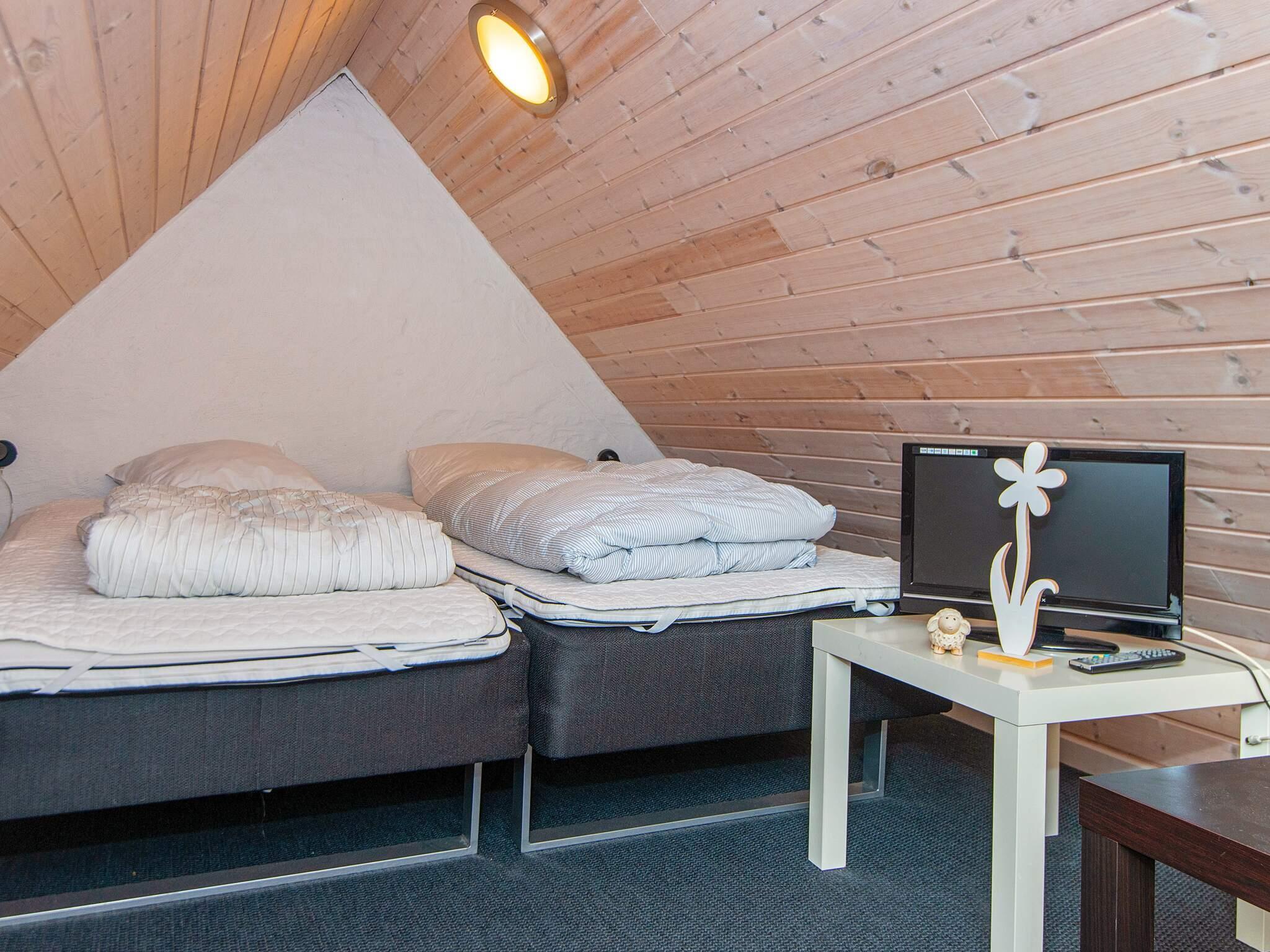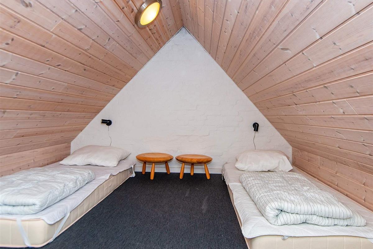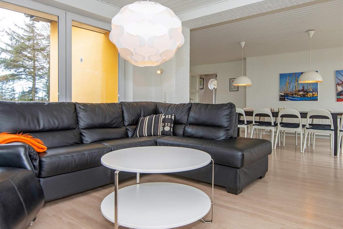 Das Haus hat im Erdgeschoss eine Eingangsdiele, einen großen, offenen Küchen-/Wohnbereich mit Zugang zur großen Terrasse davor sowie ein Bad mit einem Whirlpool für zwei Personen. Oben im Dachgeschoss befinden sich drei Schlafzimmer und ein zweites Bad mit Badewanne und Dusche. Von dem einen Schlafzimmer gelangt man hinaus auf eine große Dachterrasse. Ganz oben unter dem Dach liegt ein geräumiger Hems mit vier Schlafplätzen und Zugang über eine steile Leitertreppe.