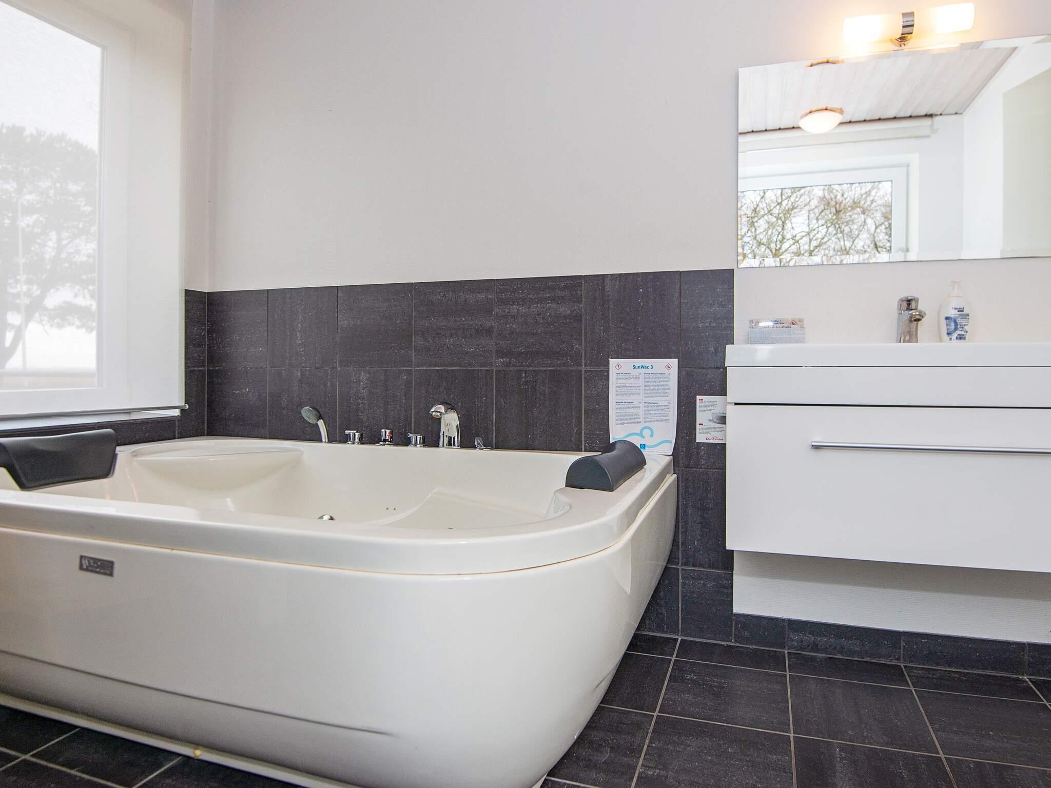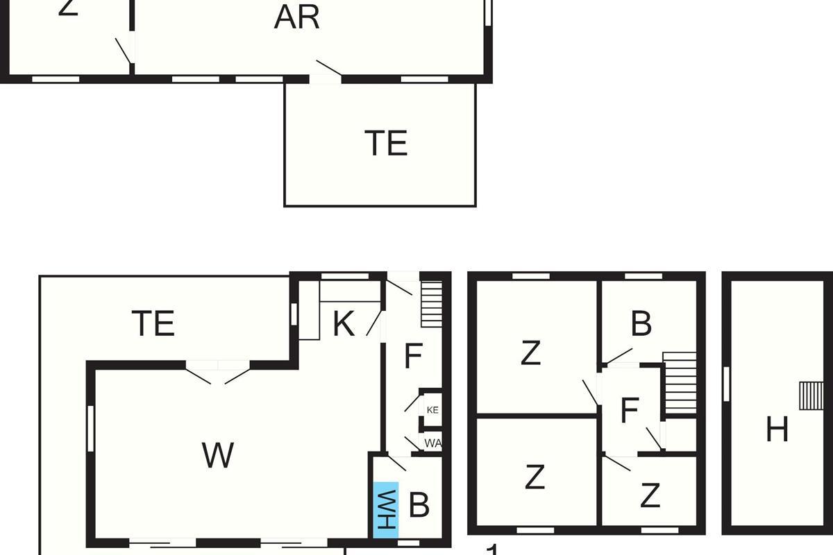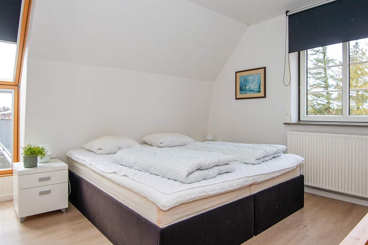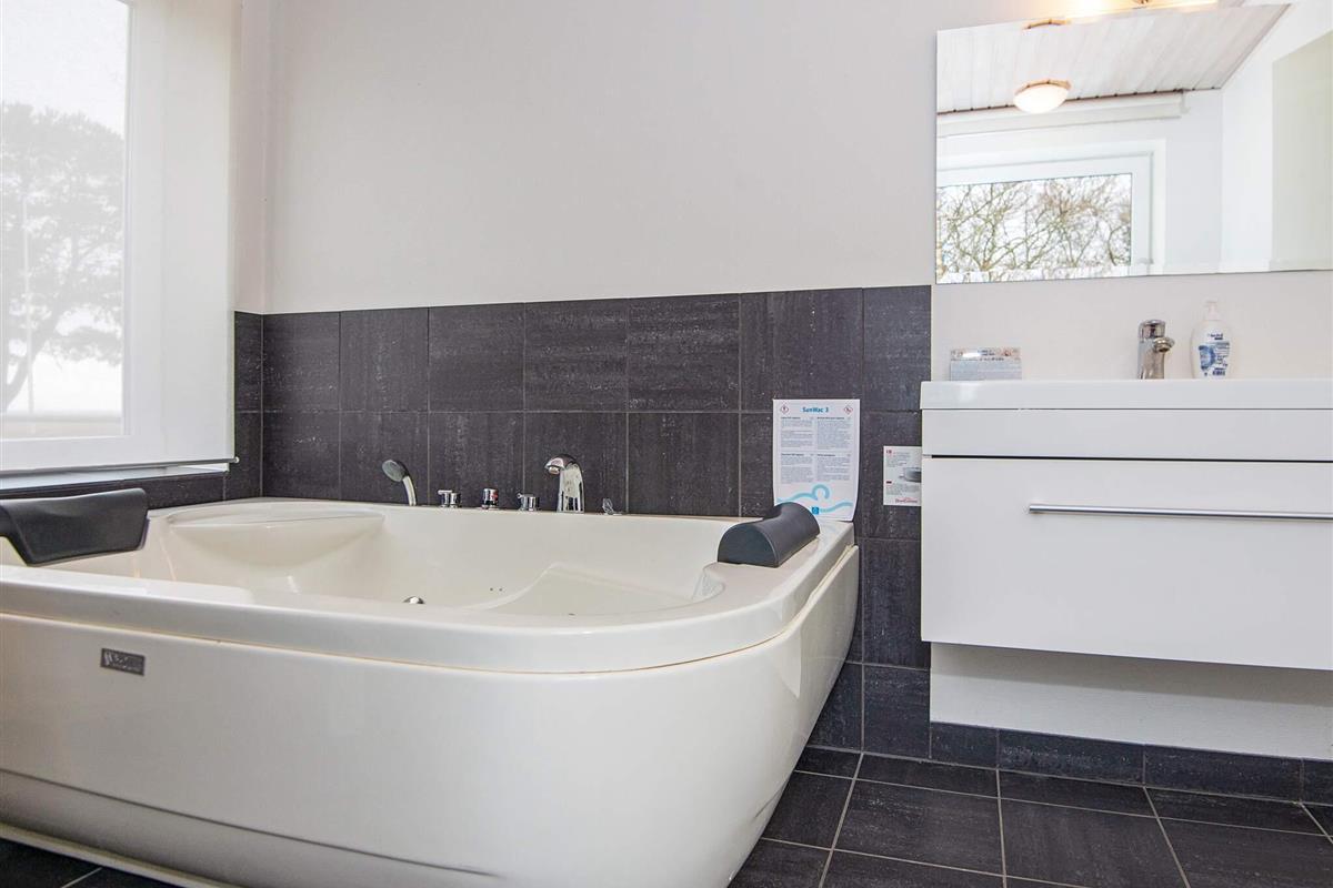 Das Haus hat im Erdgeschoss eine Eingangsdiele, einen großen, offenen Küchen-/Wohnbereich mit Zugang zur großen Terrasse davor sowie ein Bad mit einem Whirlpool für zwei Personen. Oben im Dachgeschoss befinden sich drei Schlafzimmer und ein zweites Bad mit Badewanne und Dusche. Von dem einen Schlafzimmer gelangt man hinaus auf eine große Dachterrasse. Ganz oben unter dem Dach liegt ein geräumiger Hems mit vier Schlafplätzen und Zugang über eine steile Leitertreppe.