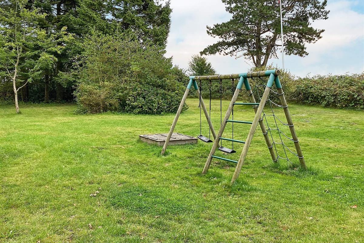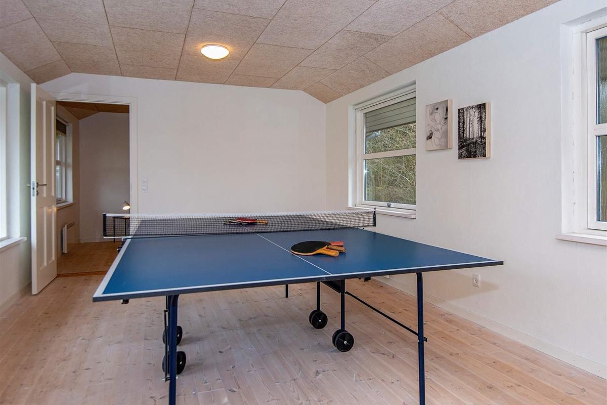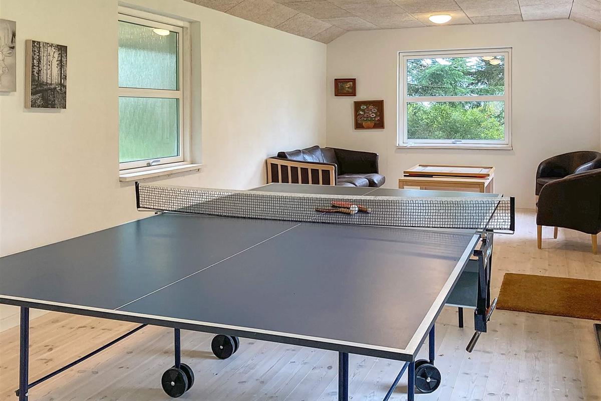 Das geräumige Ferienhaus wird mittels einer energieeffizienten Luft-Wasser-Wärmepumpe und eines Holzofens erwärmt. Es liegt auf einem weitläufigen Naturgrundstück mit Rasenfläche und Bäumen, darunter Obstbäume, ringsum. Am Ende des Grundstücks steht zudem ein größerer Annex, der als Aktivitätsraum mit Tischtennis- und Tischbillard genutzt wird. Hier befindet sich zudem ein weiteres Schlafzimmer für zwei Personen.