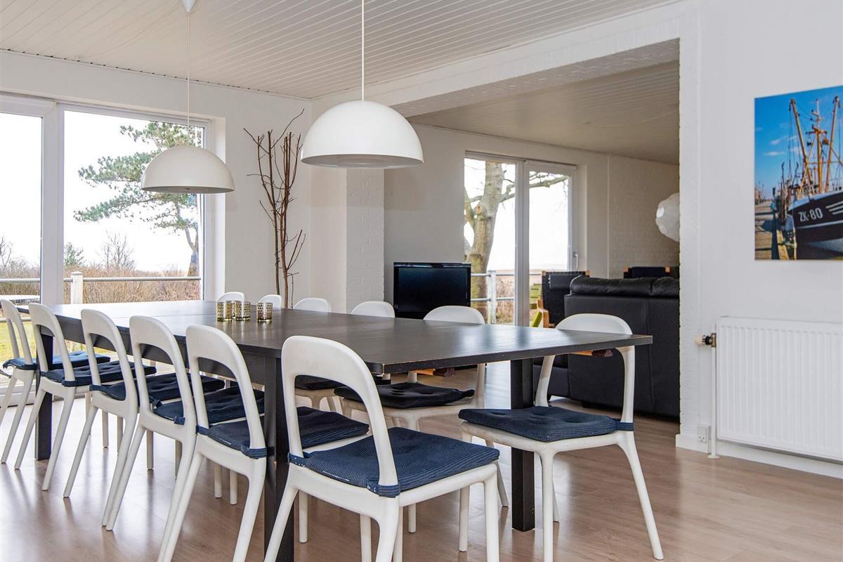 Geräumiges Ferienhaus auf der Urlaubsinsel Rømø, ganz dicht am Wattenmeer und mit schöner Aussicht bis zur Küste von mehreren Zimmern aus.