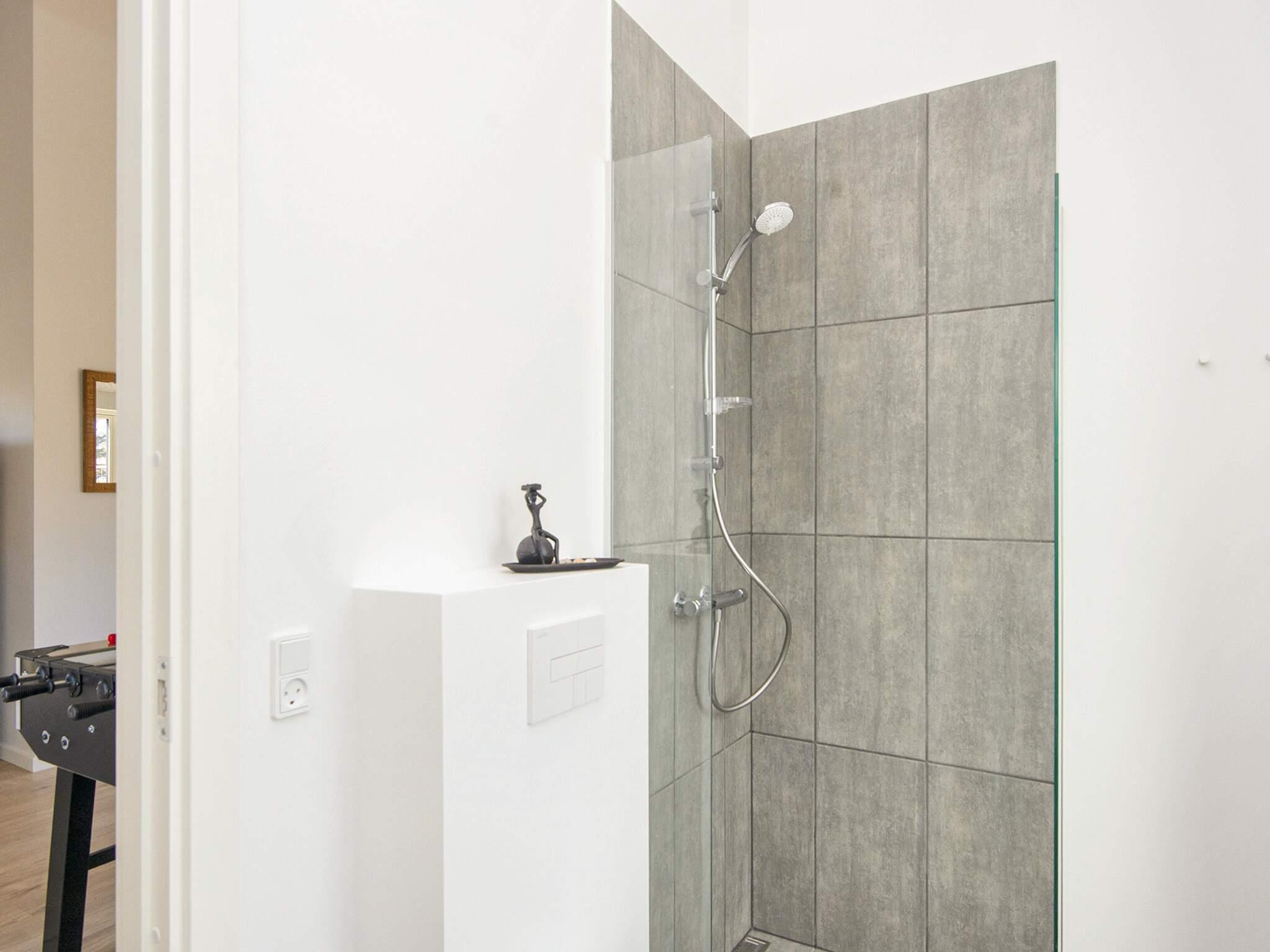 Bad: WC, Waschb., Dusche, Fußbodenheiz.