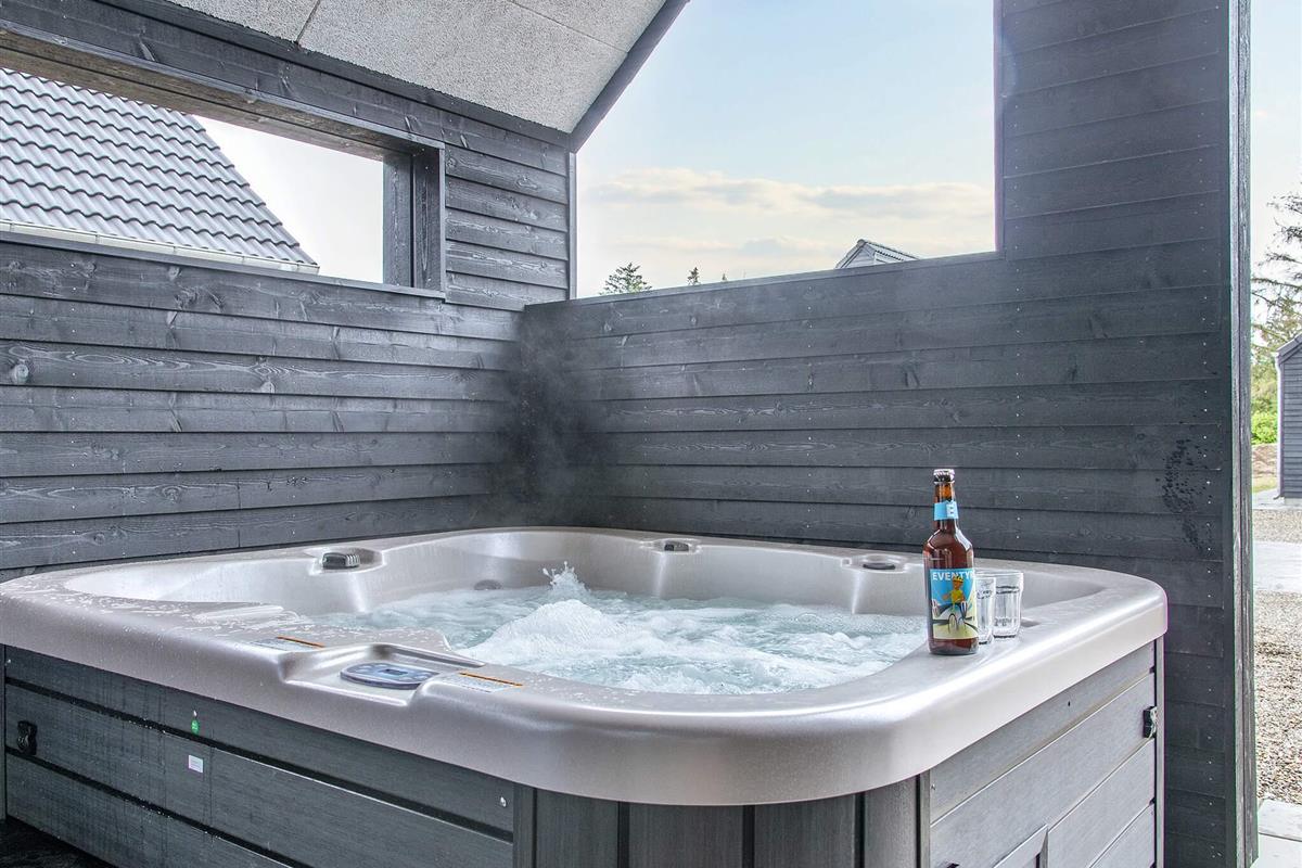 Dieses luxuriöse Ferienhaus mit Außenwhirlpool liegt am Wattenmeer, nur wenige Minuten vom kilometerlangen Sandstrand von Lakolk entfernt.
