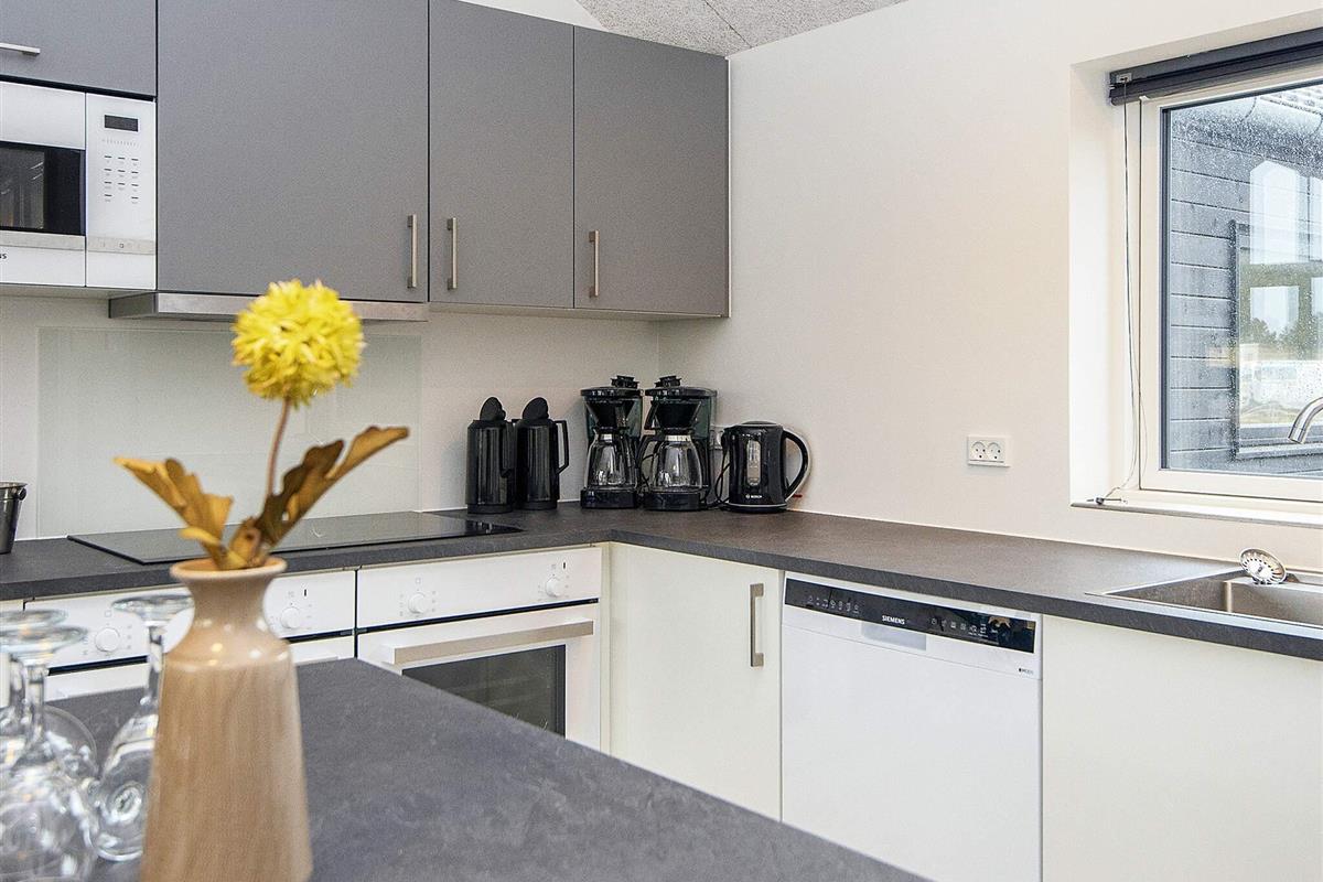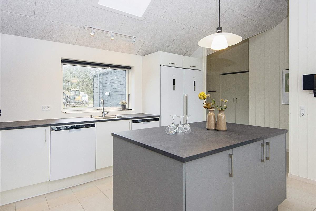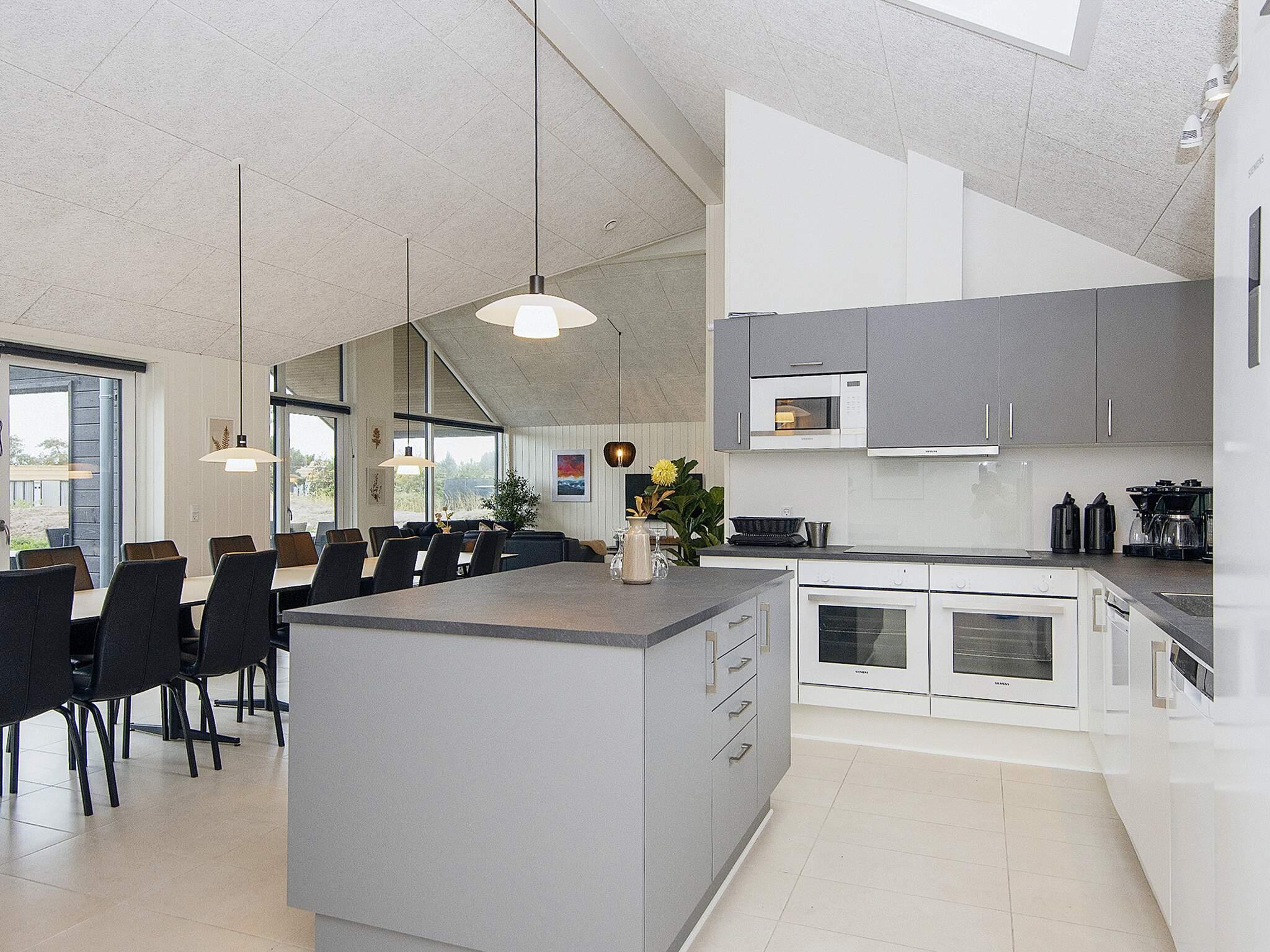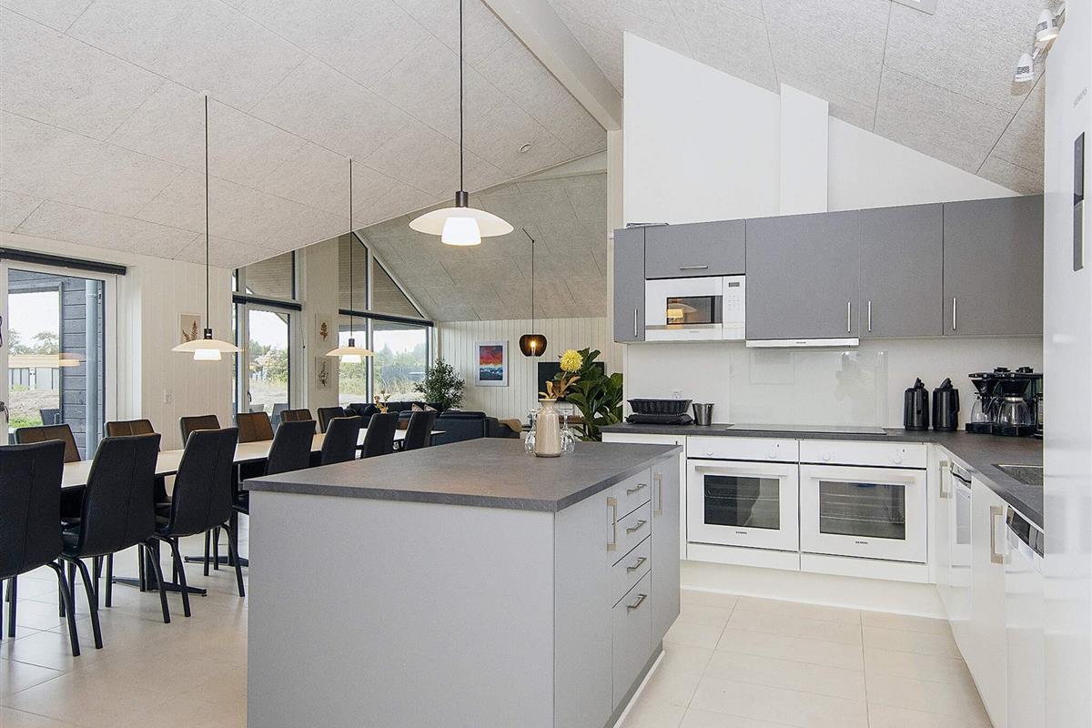 In der Mitte des Ferienhauses befindet sich die gut ausgestattete Küche, in der sich problemlos große Familienessen zubereiten lassen. Zum Abendessen kann die ganze Familie am Küchentisch Platz nehmen – Platz ist natürlich auch für die ganze Truppe. An kühlen Tagen können Sie den Holzofen im Wohnzimmer anheizen und dabei auf dem Sofa einen guten Film genießen.