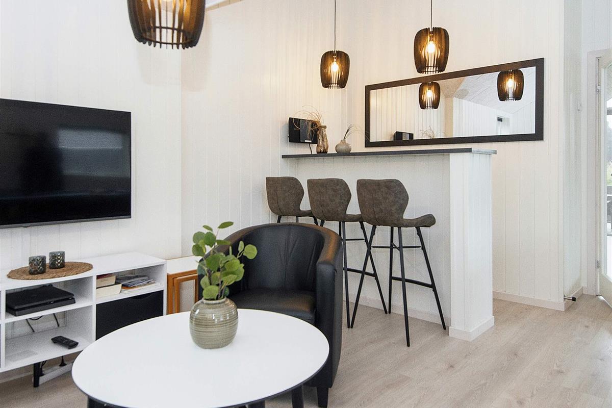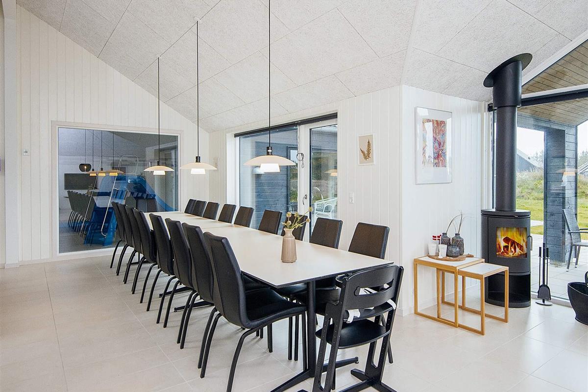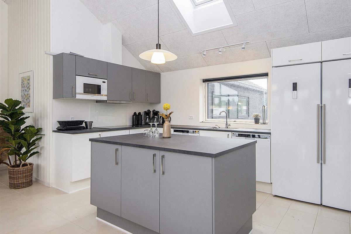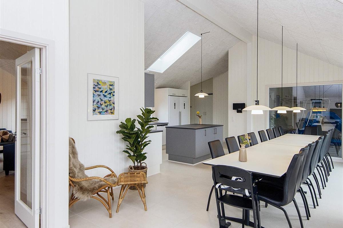 In der Mitte des Ferienhauses befindet sich die gut ausgestattete Küche, in der sich problemlos große Familienessen zubereiten lassen. Zum Abendessen kann die ganze Familie am Küchentisch Platz nehmen – Platz ist natürlich auch für die ganze Truppe. An kühlen Tagen können Sie den Holzofen im Wohnzimmer anheizen und dabei auf dem Sofa einen guten Film genießen.