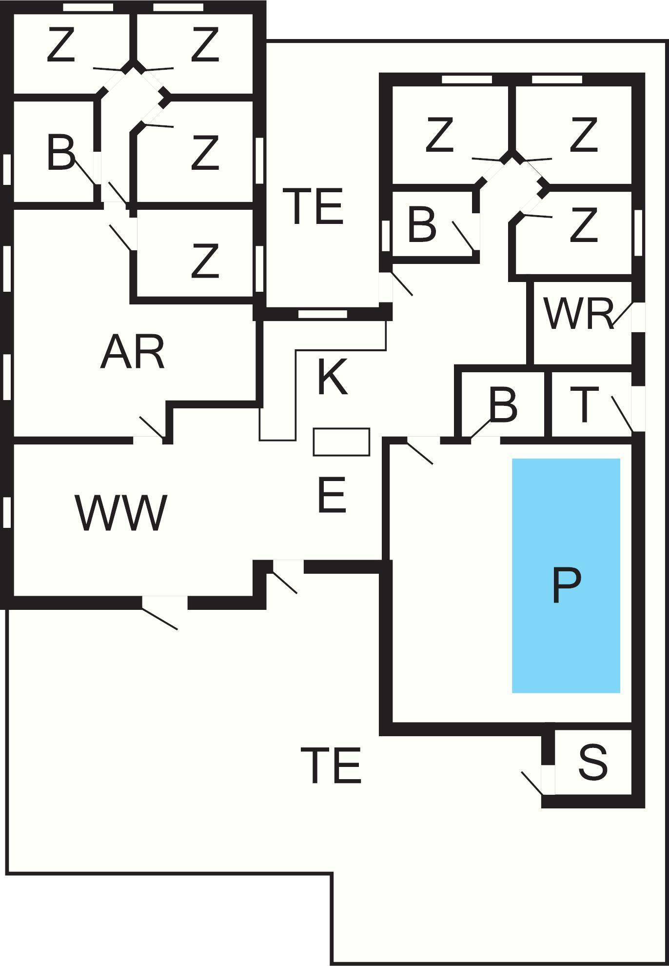 7 Schlafz.: (2B)+(2B)+(2B)+(2B)+(2B)+(2B)+(2B), Kinderbett