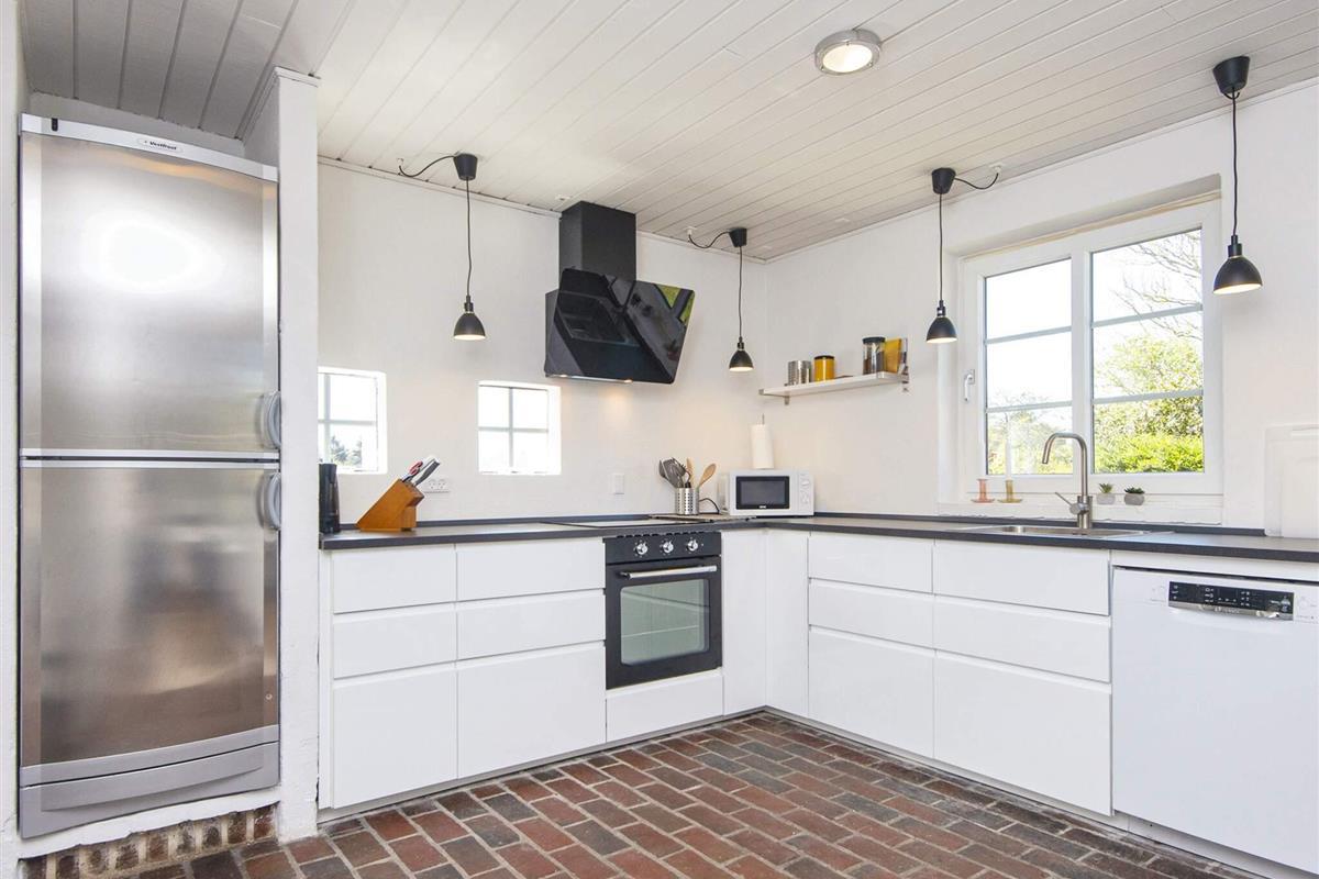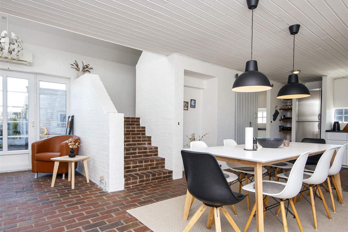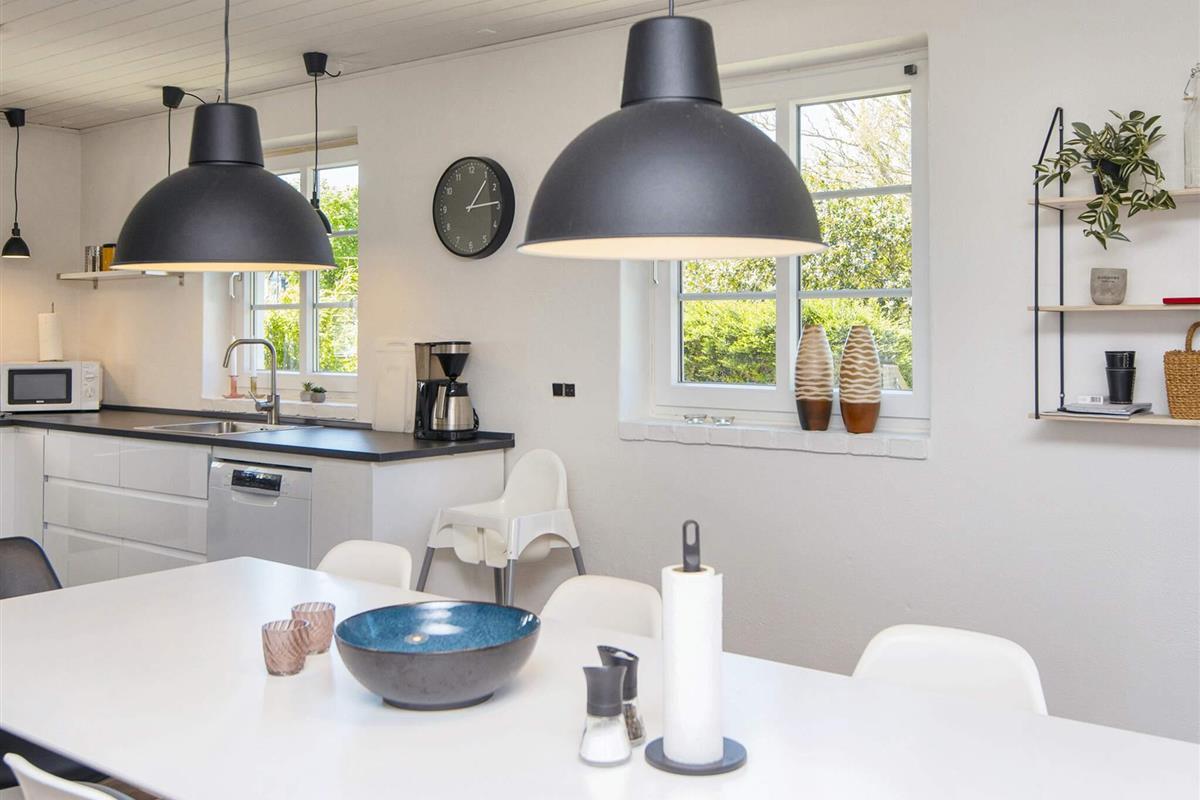 Dieses helle und einladende Ferienhaus in Kongsmark ist ideal für Familien oder Freunde, die Komfort und Entspannung in Meeresnähe suchen. Betreten Sie die moderne Küche, die sich zu einem geräumigen Essbereich mit einem großen Tisch öffnet, ideal für gemeinsame Mahlzeiten und lange Gespräche nach einem Tag am Strand. Die Innenräume wirken warm und einladend, mit gemütlichen Sofas, gut ausgestatteten Schlafzimmern und durchdachten Details, die das Haus zu einem Zuhause fern von Zuhause machen.