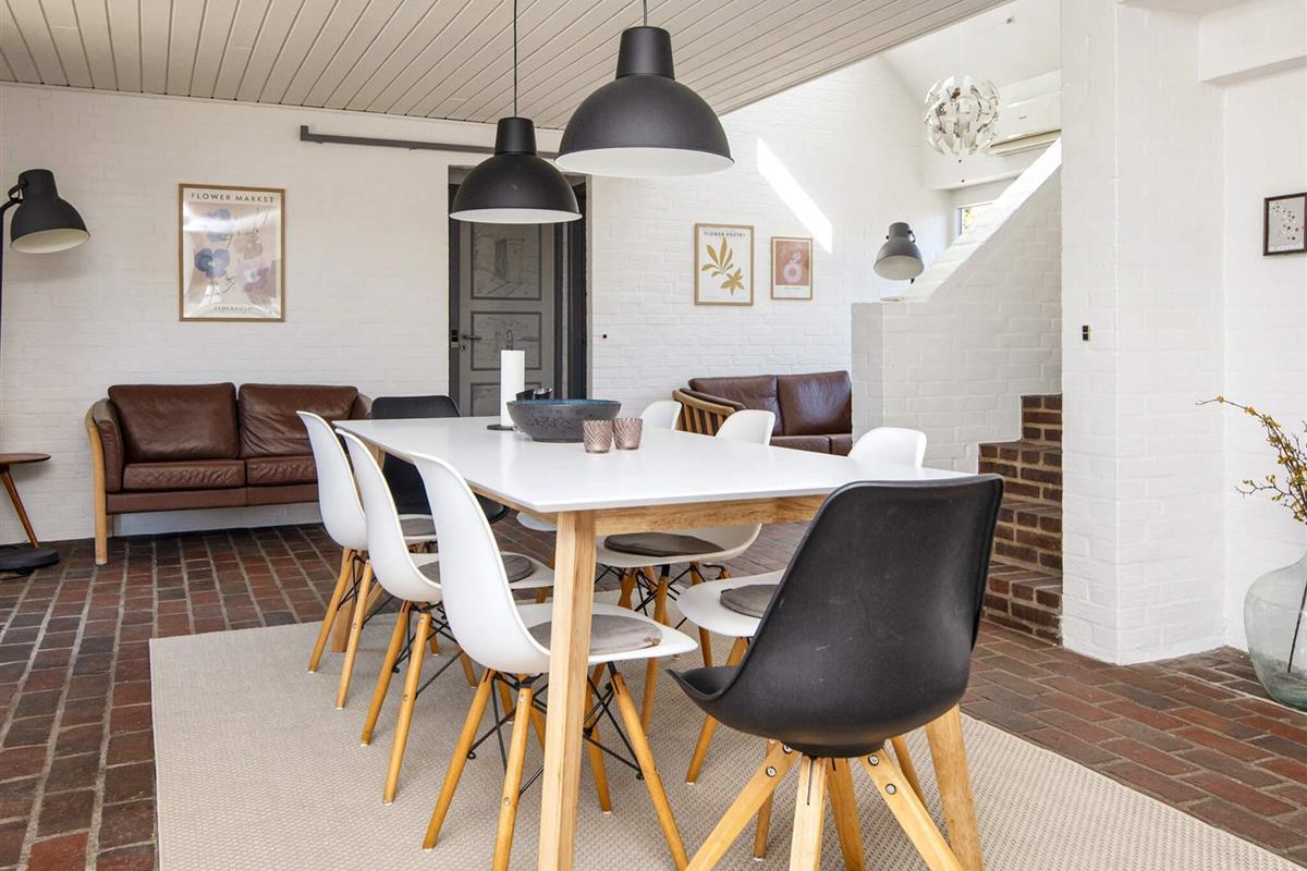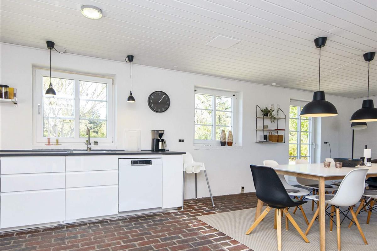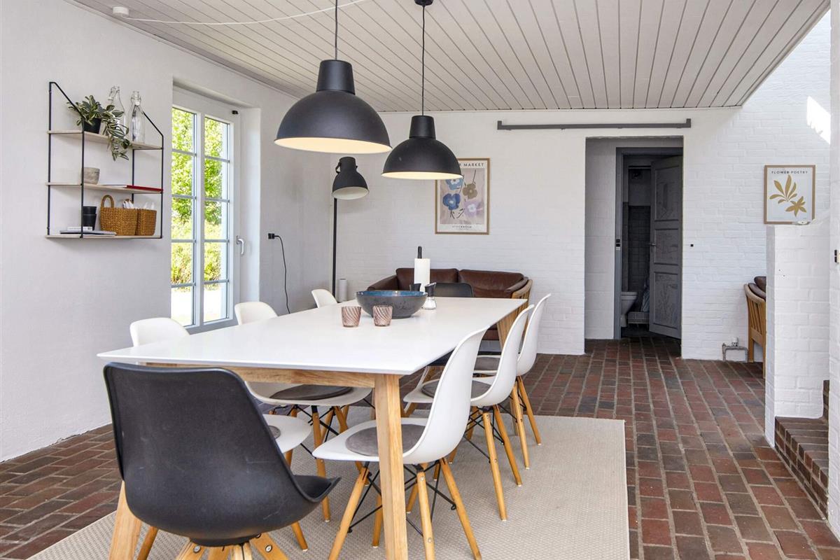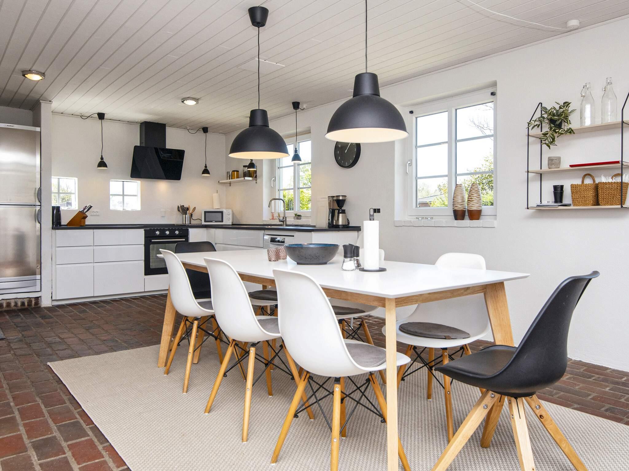 Dieses helle und einladende Ferienhaus in Kongsmark ist ideal für Familien oder Freunde, die Komfort und Entspannung in Meeresnähe suchen. Betreten Sie die moderne Küche, die sich zu einem geräumigen Essbereich mit einem großen Tisch öffnet, ideal für gemeinsame Mahlzeiten und lange Gespräche nach einem Tag am Strand. Die Innenräume wirken warm und einladend, mit gemütlichen Sofas, gut ausgestatteten Schlafzimmern und durchdachten Details, die das Haus zu einem Zuhause fern von Zuhause machen.