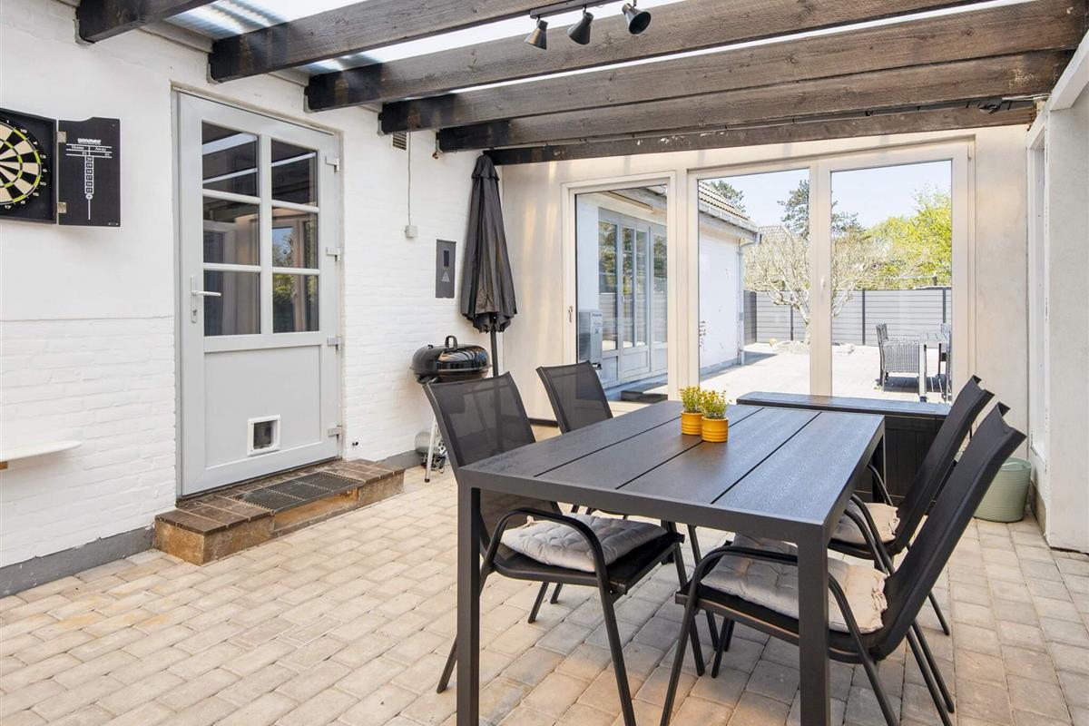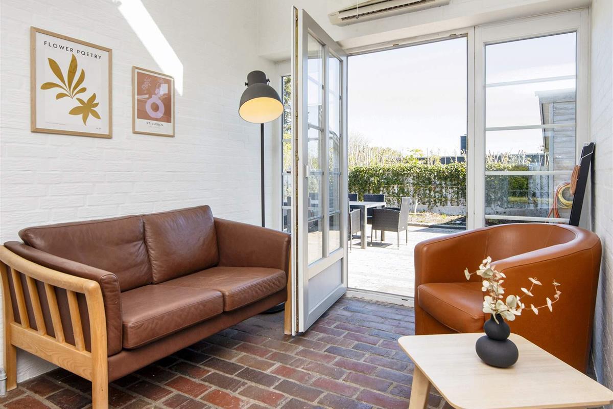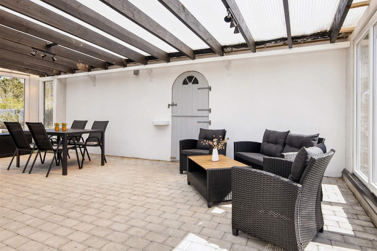 Eines der Highlights ist die große Innenterrasse mit Gartenmöbeln, ein wunderbarer Ort, um Ihren Morgenkaffee zu genießen oder sich mit einem Buch vor dem Wind geschützt zu entspannen. Draußen bietet eine überdachte Terrasse mit Esstisch und Lounge-Sofa den Rahmen für lange Sommerabende am Grillabenden oder beim Sonnenuntergang. Das großzügige Grundstück bietet viel Platz zum Entspannen, während die Umgebung zu malerischen Wanderungen oder einfach zu einem Spaziergang zum nur wenige Gehminuten entfernten Strand einlädt.