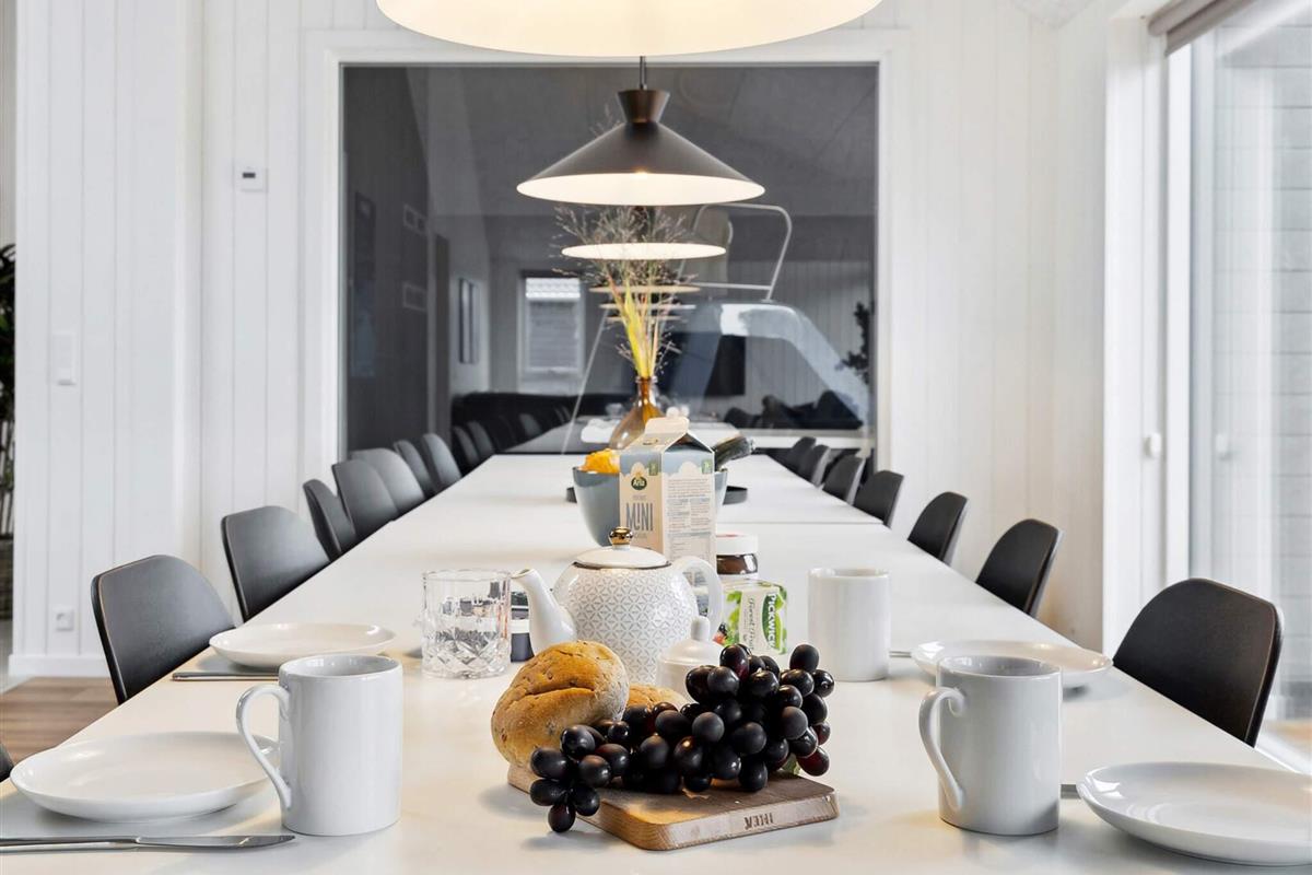 Das Kochteam kann die große Küche im Wohnzimmer nutzen, die mit zahlreichen Kochutensilien ausgestattet ist. Alternativ können Sie auch auf der Terrasse grillen. Ihre Mahlzeiten können Sie am langen Esstisch drinnen oder draußen genießen. Nach dem Essen können Sie auf dem Trampolin springen, Fußball oder Basketball spielen oder draußen auf dem Mehrzweckplatz toben.