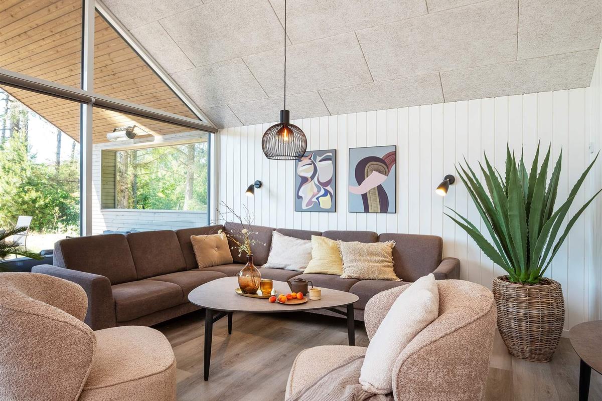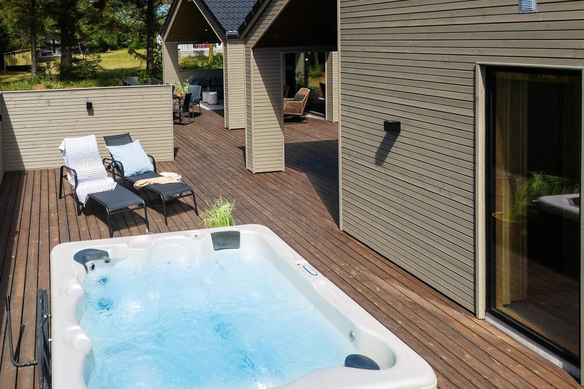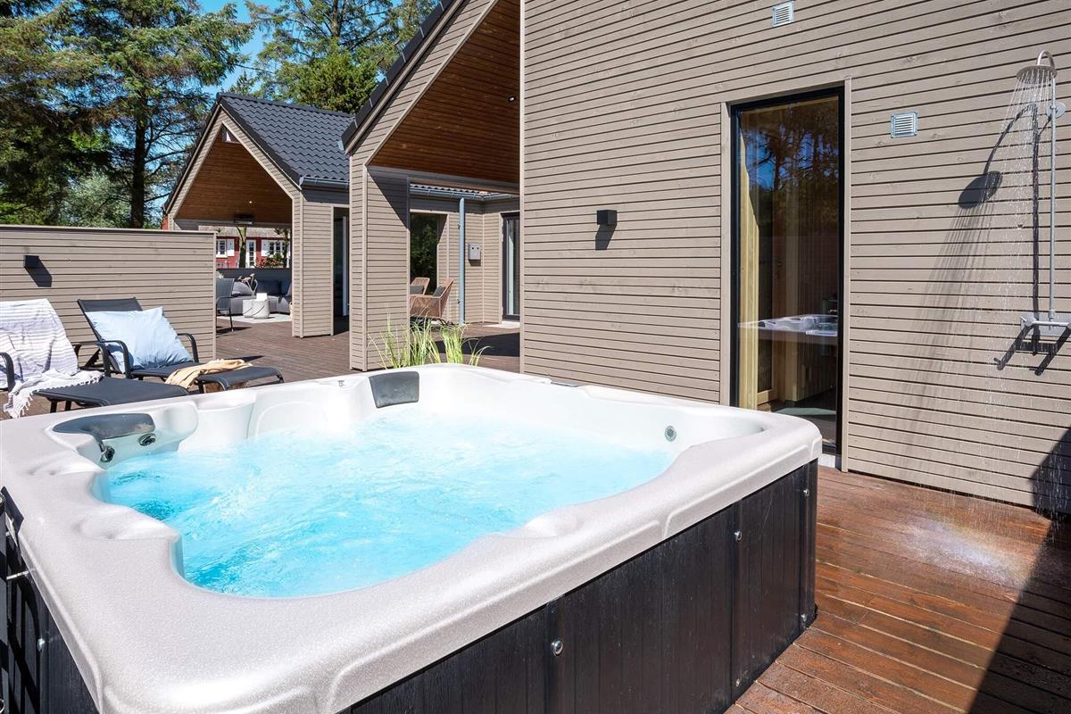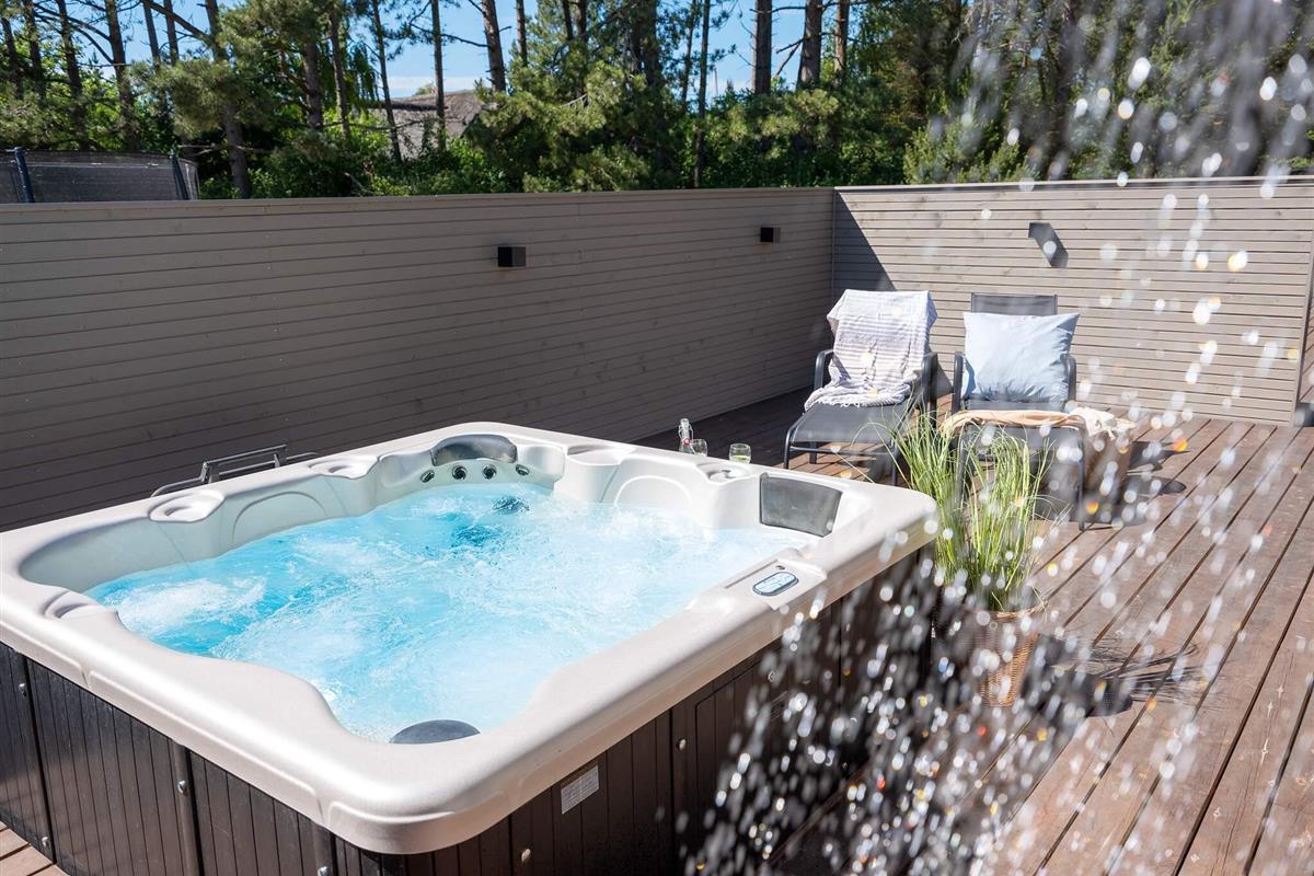 Wenn Sie einen Ort zum Entspannen suchen, ist die Wohnküche mit ihrem schönen, gemütlichen Ecksofa der perfekte Ort, um Filmabende, Spiele oder ein gutes Buch zu genießen. Oder gönnen Sie sich ein Bad im Außenwhirlpool und anschließend einen Saunagang.