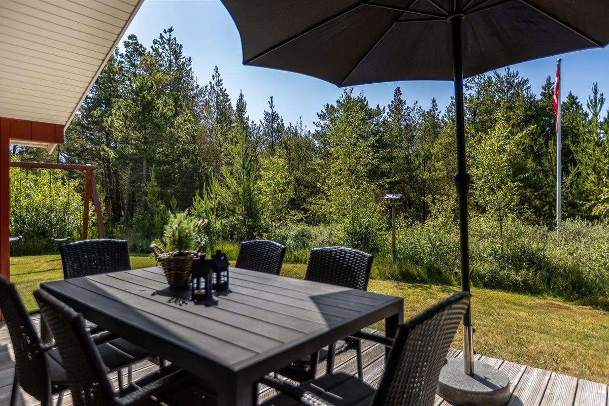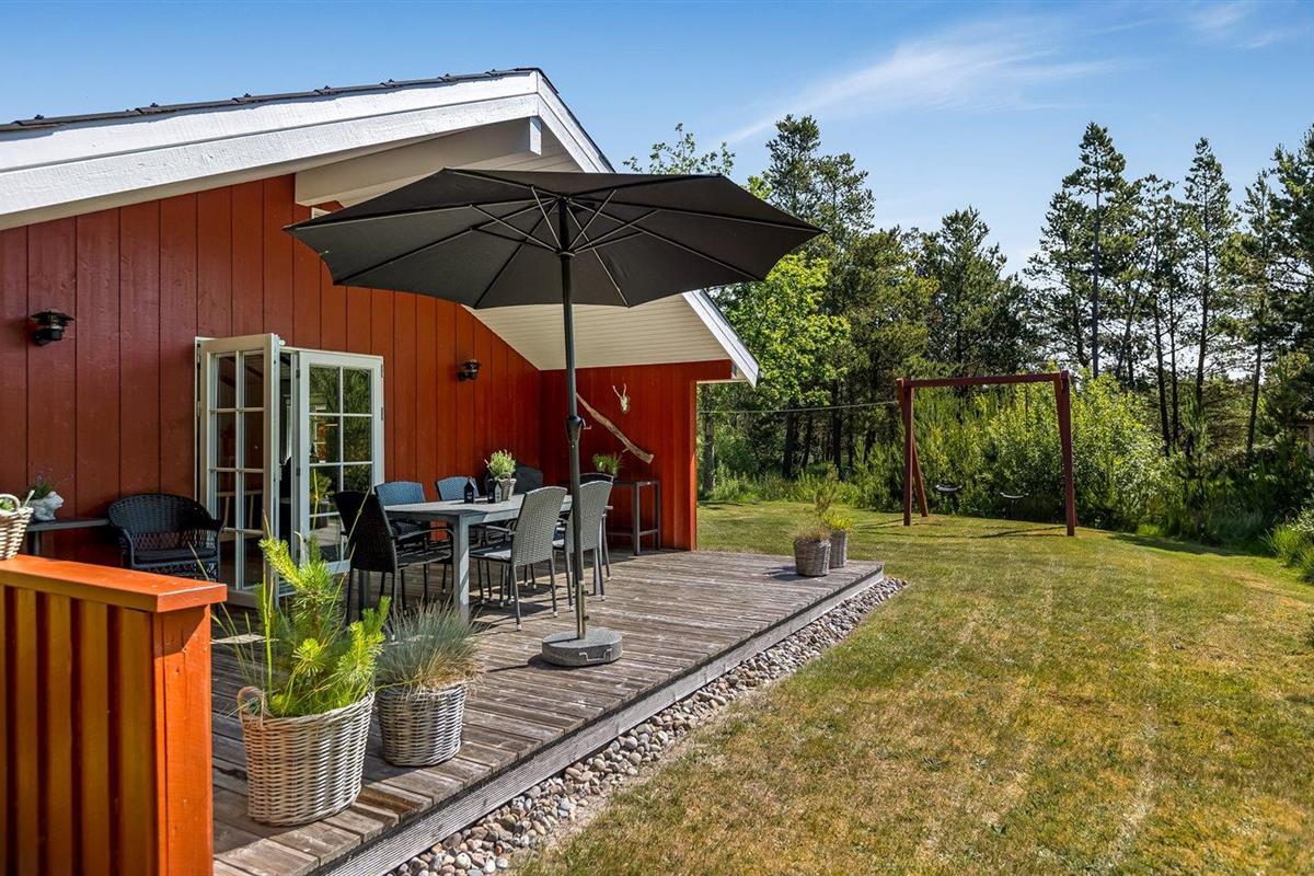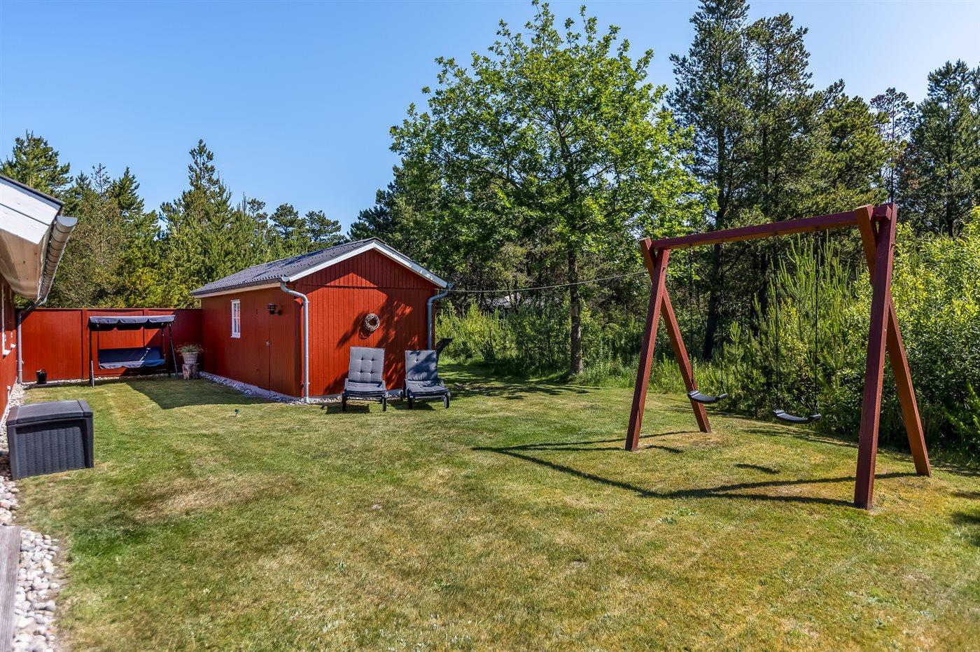 De vakantiewoning is gelegen op een 2595 m² groot natuural grond. Afstand tot de zee 2700 m. Dichtstbijzijnde winkel 2000 m. Bij de vakantiewoning hoort 13 m² terras. Daarnaast is er een 13 m² groot overdekt terras. Gereedschapsruimte. Schommel. Barbecue. Het huis heeft een stopcontact voor het opladen van een elektrische auto. Oplaadstekker type 2. Parkeerplaats bij het huis.